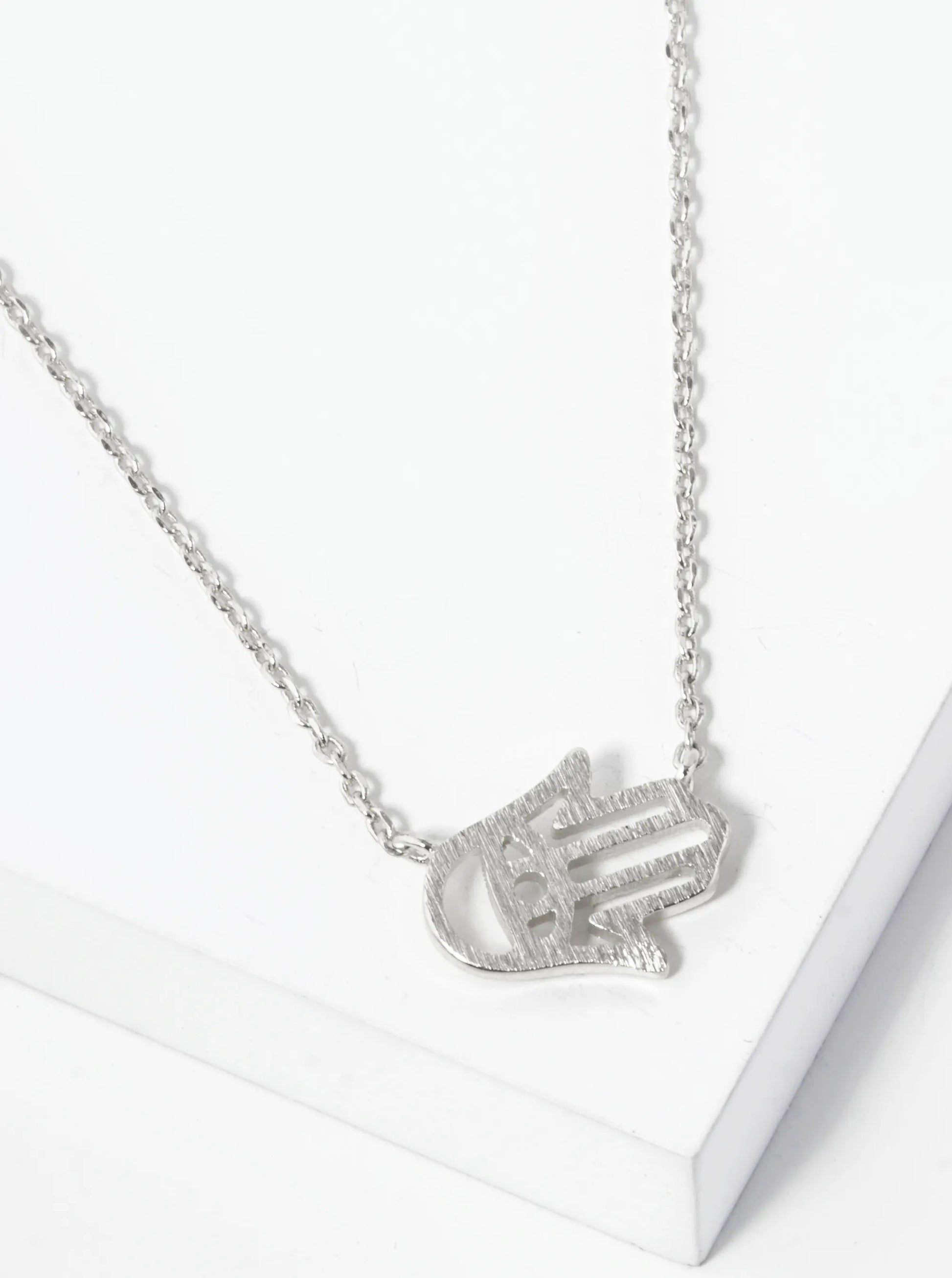 18K Gold Dipped Brushed Brass Hamsa Pendant Necklace