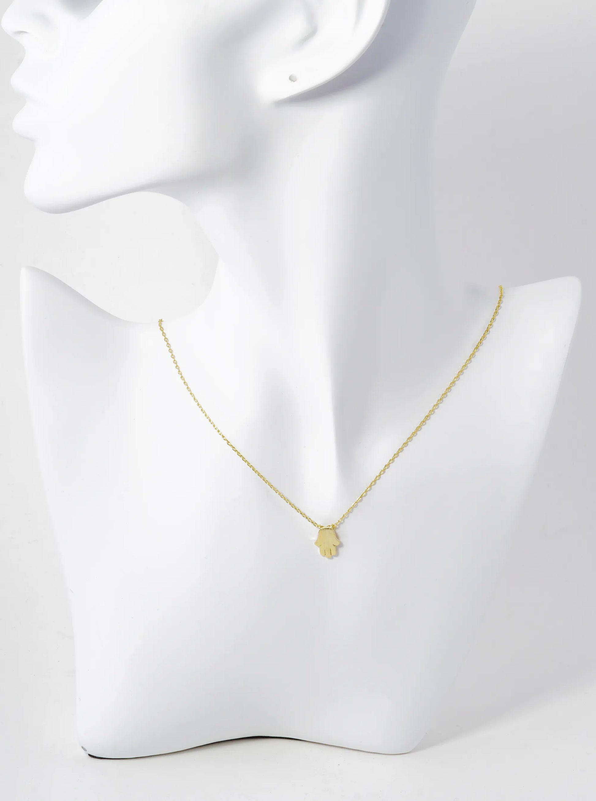 18K Gold Dipped Brushed Brass Hamsa Pendant Necklace