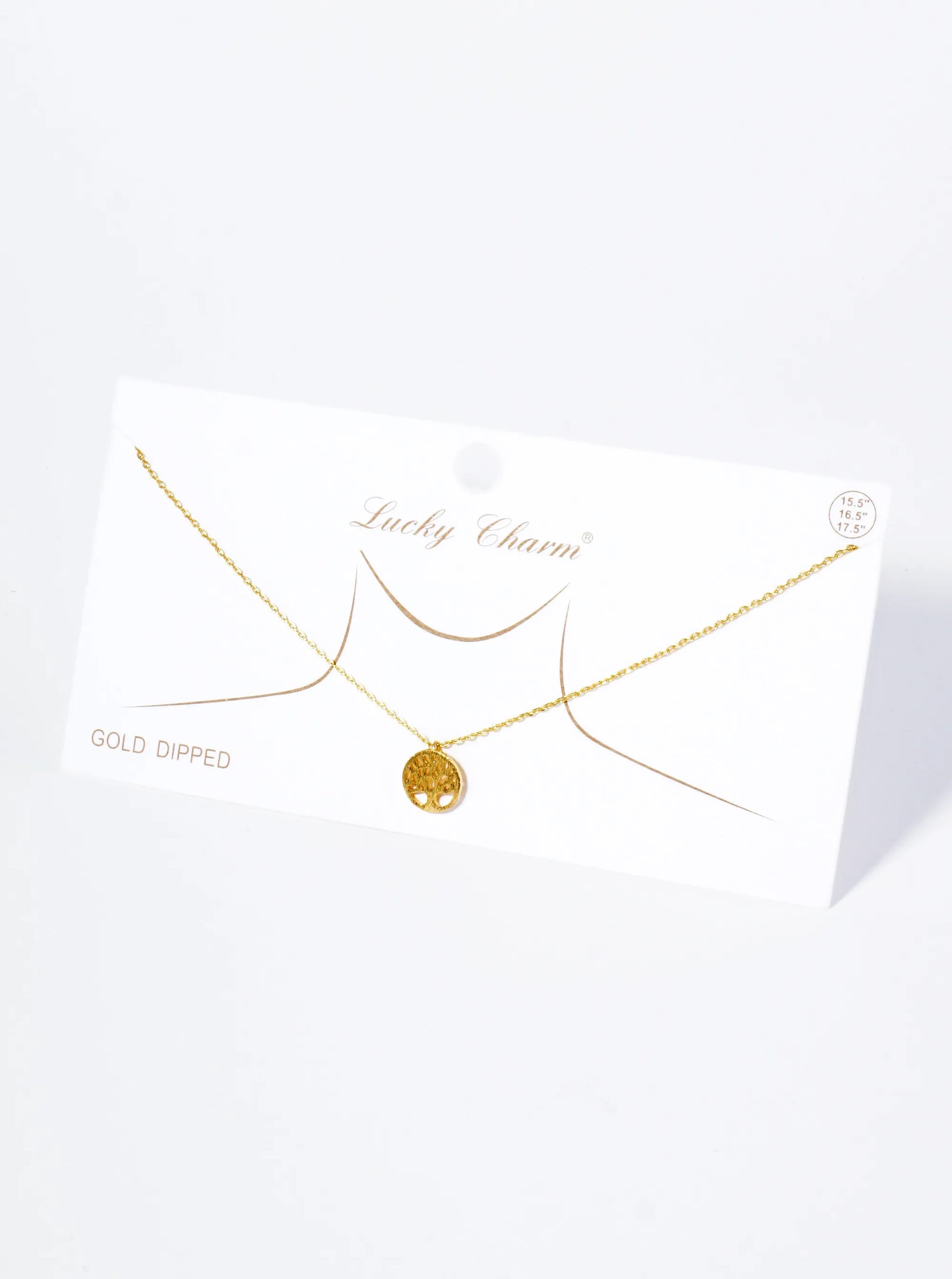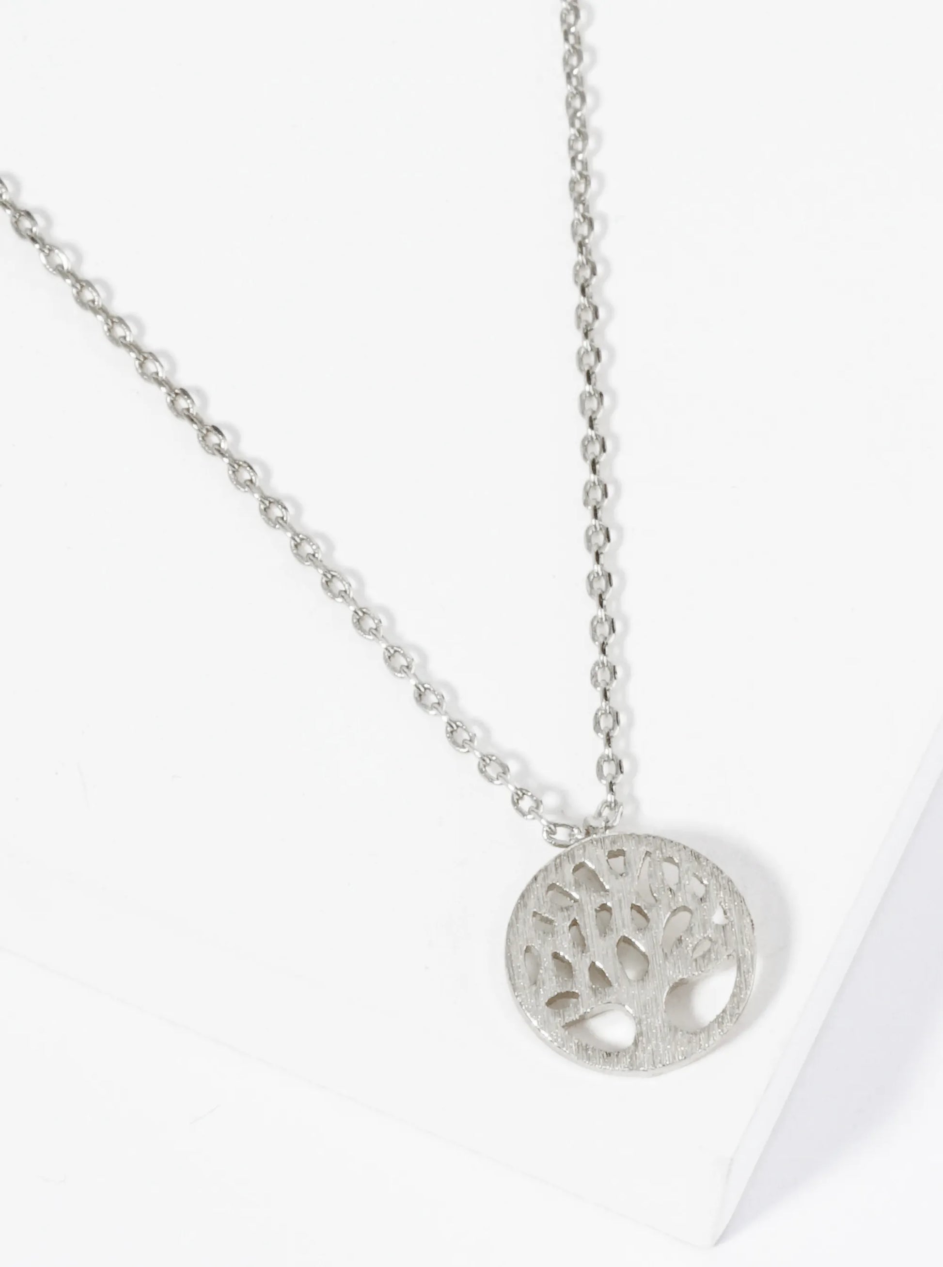 18K Gold Dipped Brushed Brass Tree Of Life Pendant Necklace