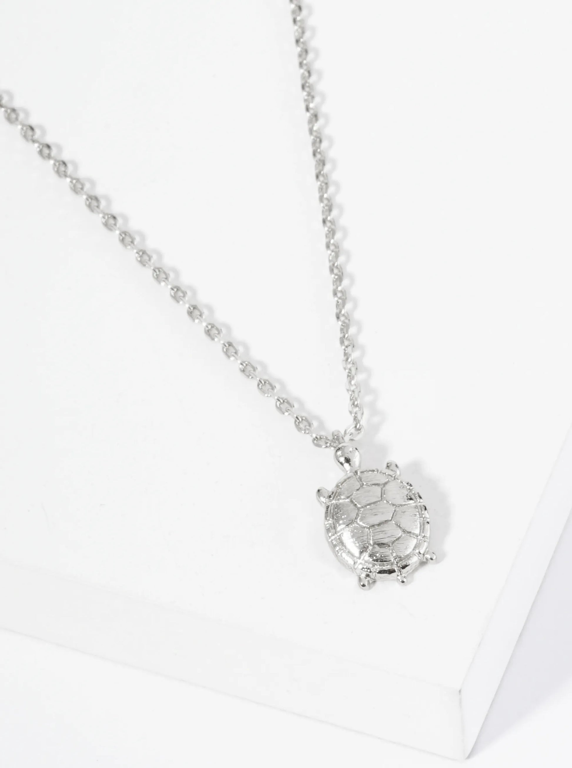 18K Gold Dipped Brushed Brass Turtle Pendant Necklace