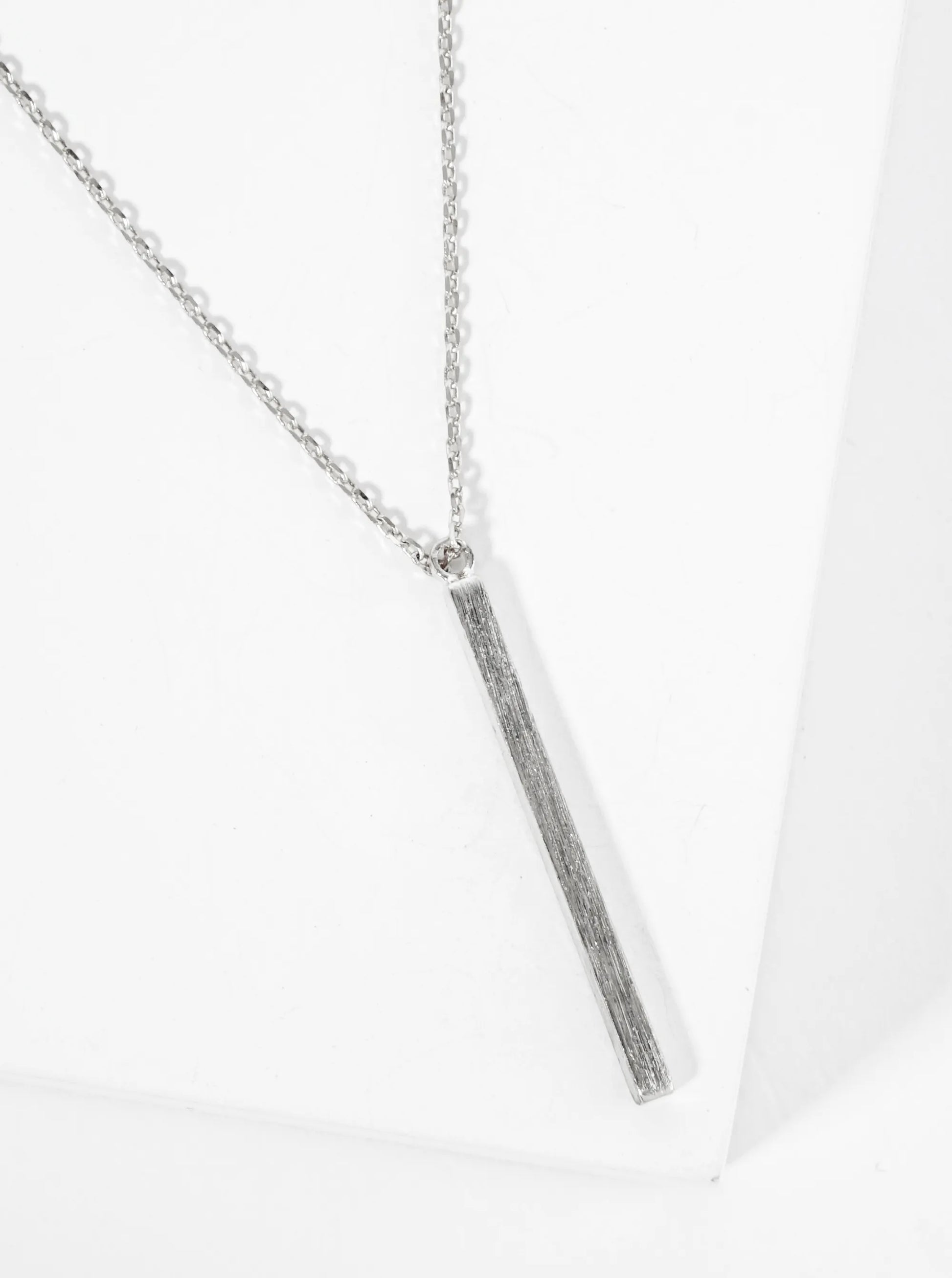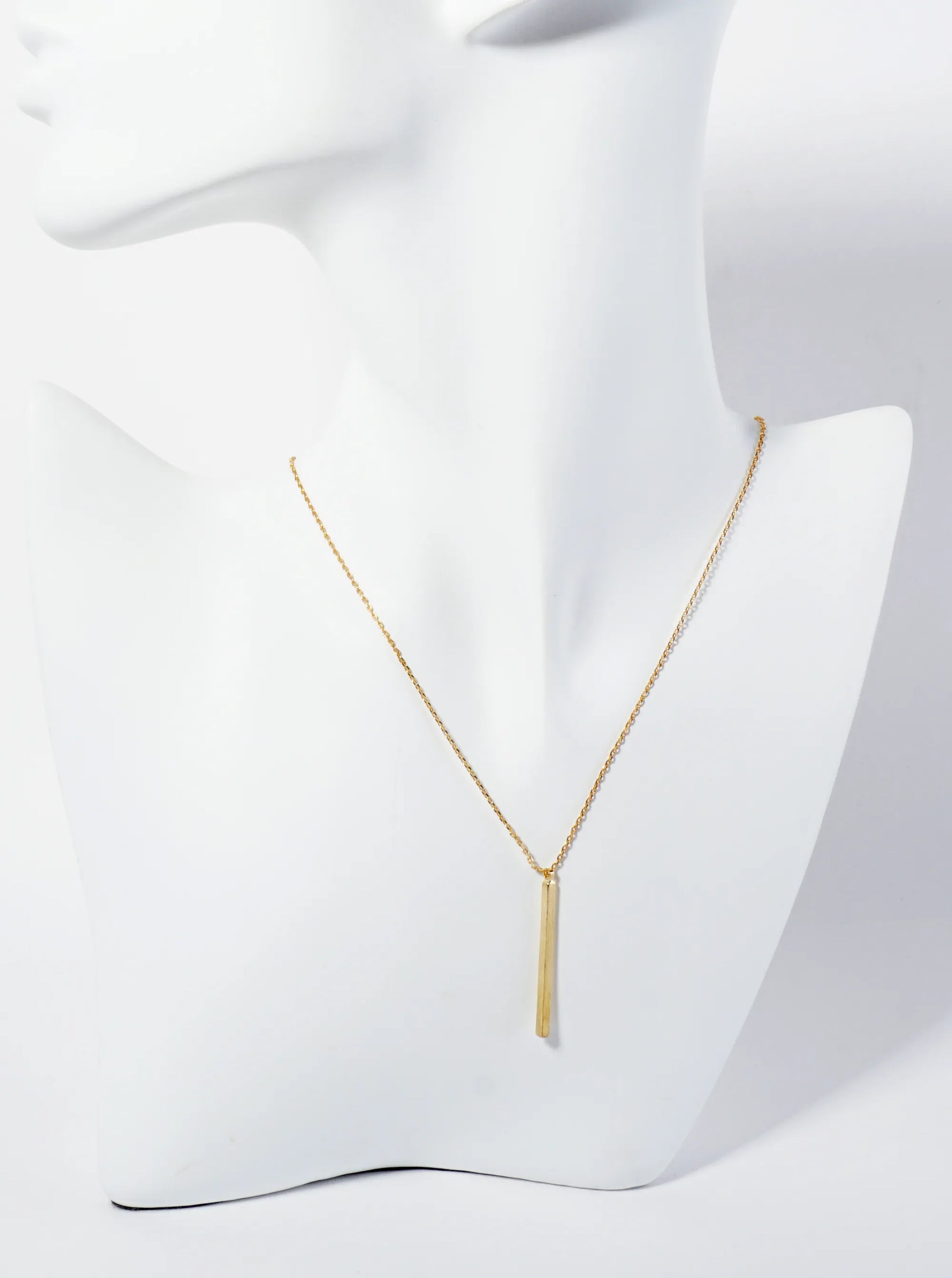 18K Gold Dipped Brushed Brass Vertical Bar Pendant Necklace