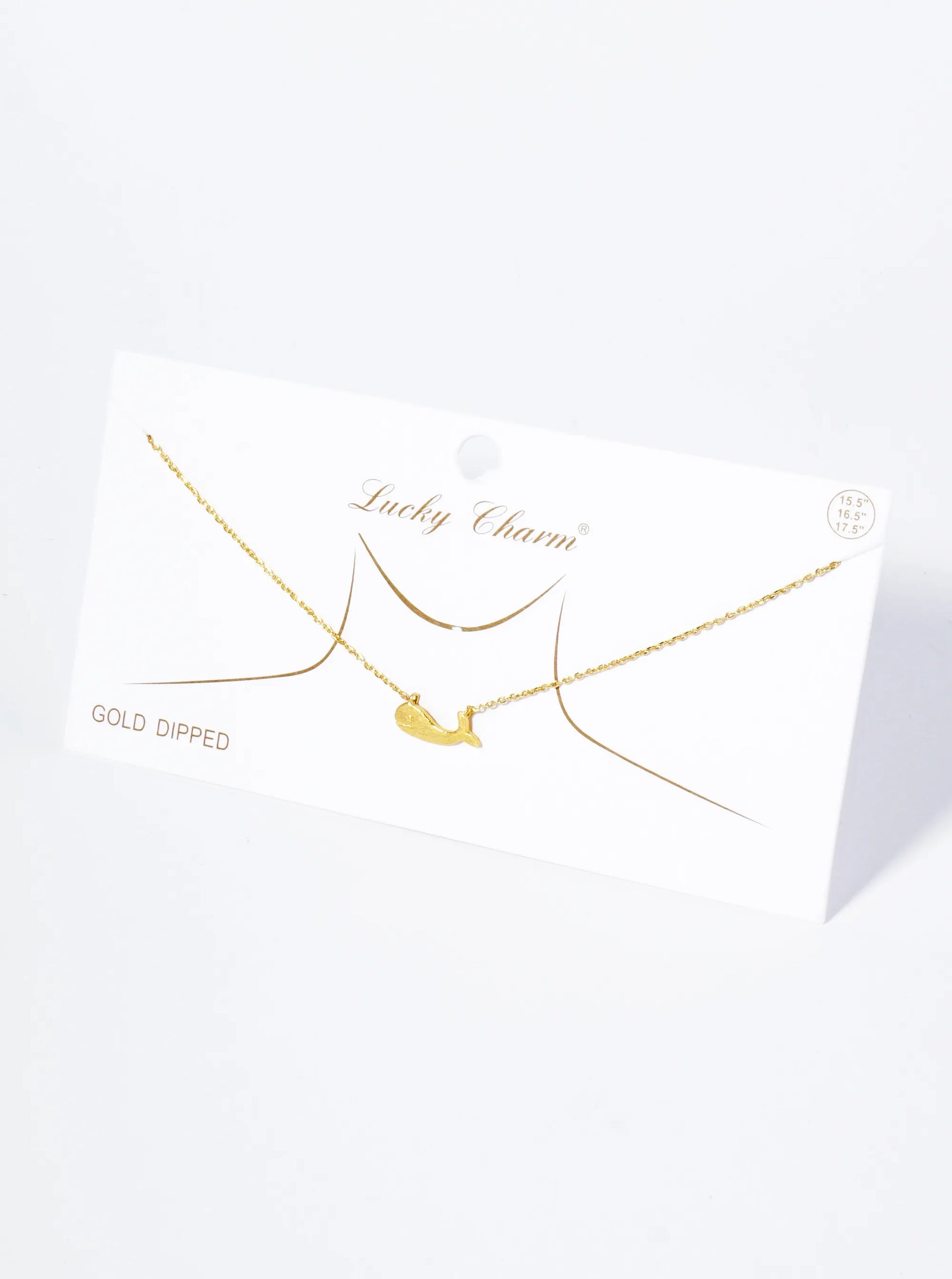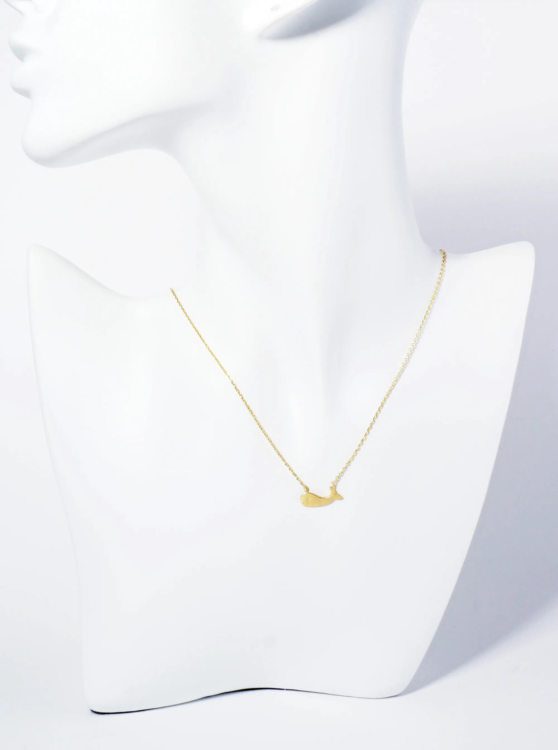 18K Gold Dipped Brushed Brass Whale Pendant Necklace