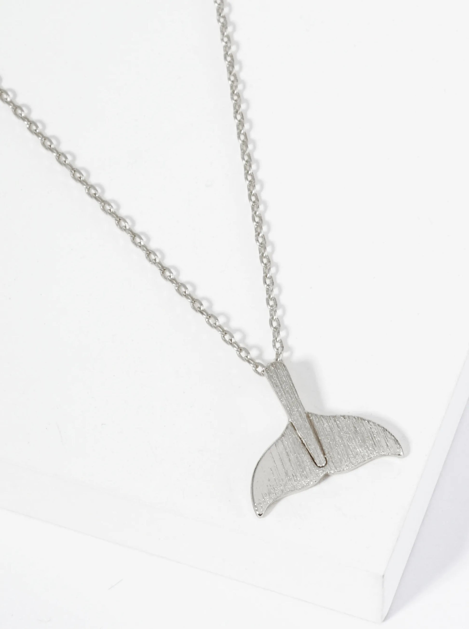 18K Gold Dipped Brushed Brass Whale Tail Pendant Necklace
