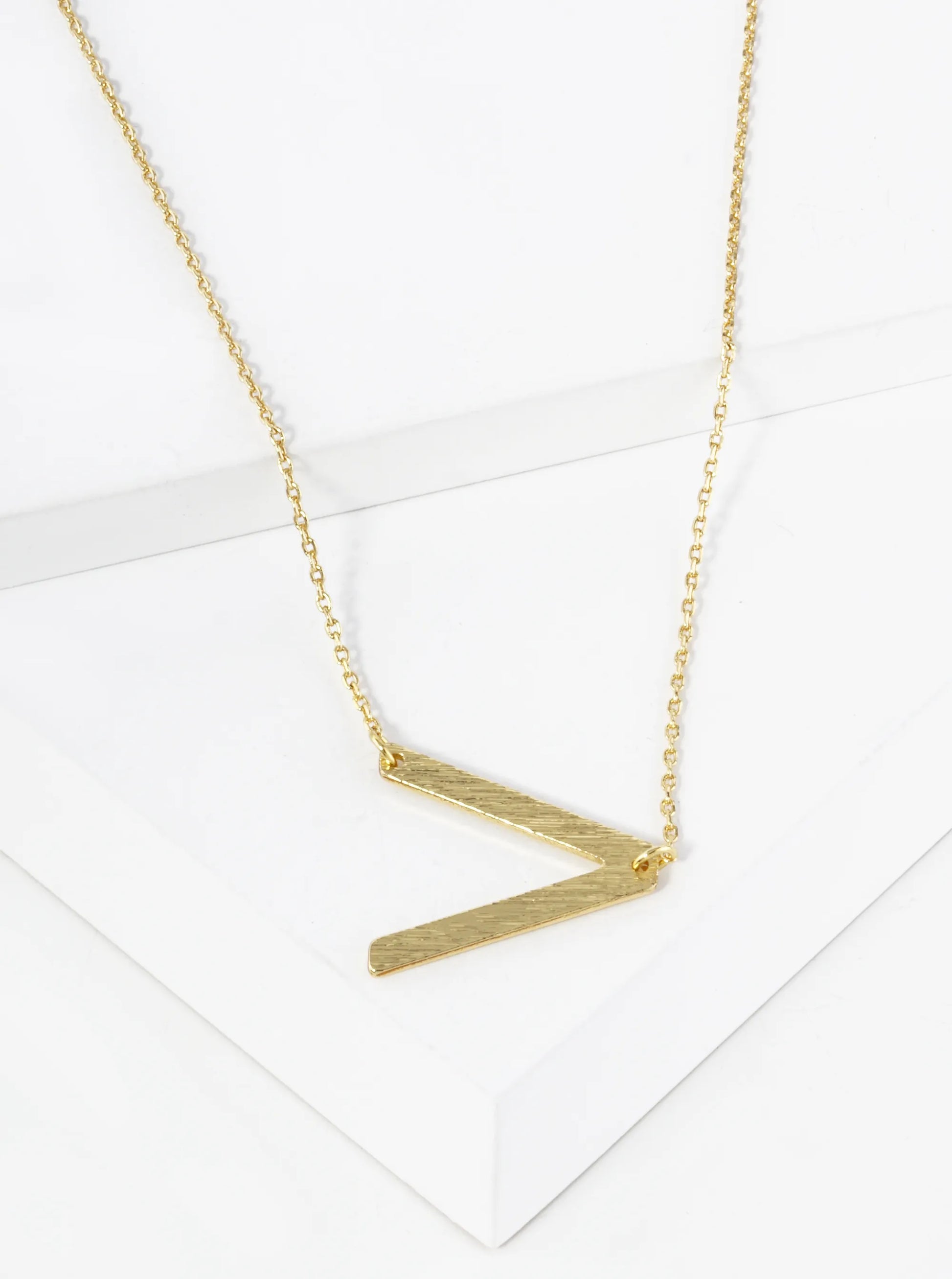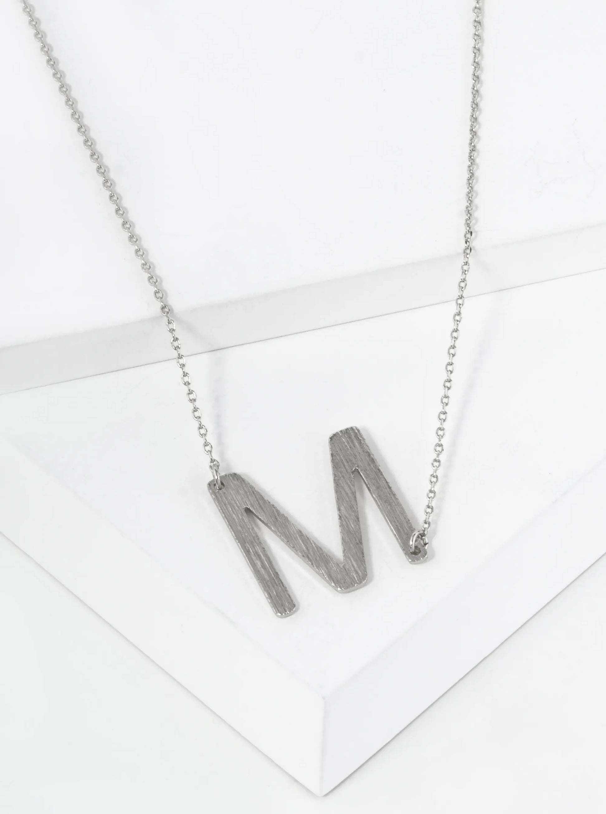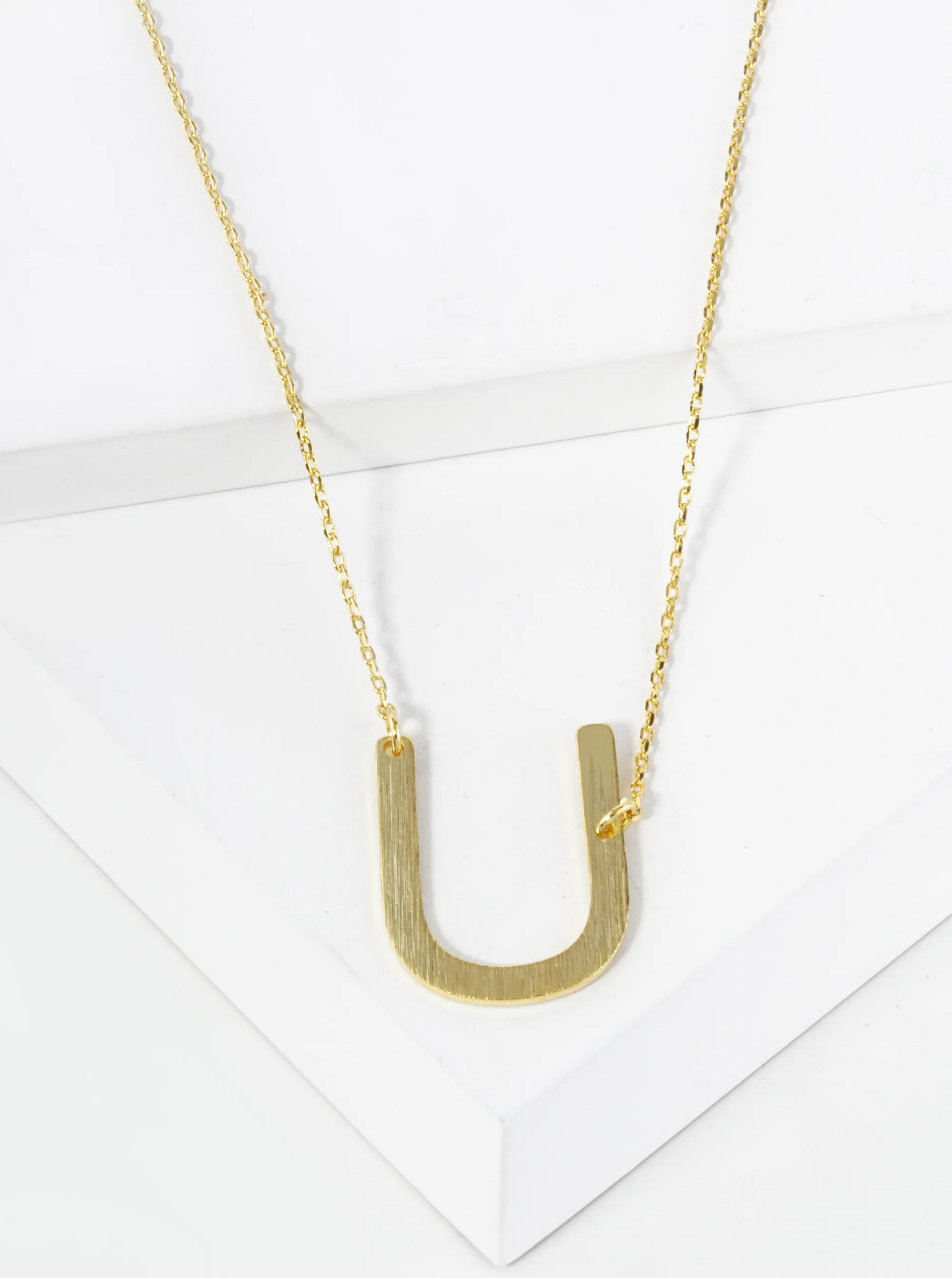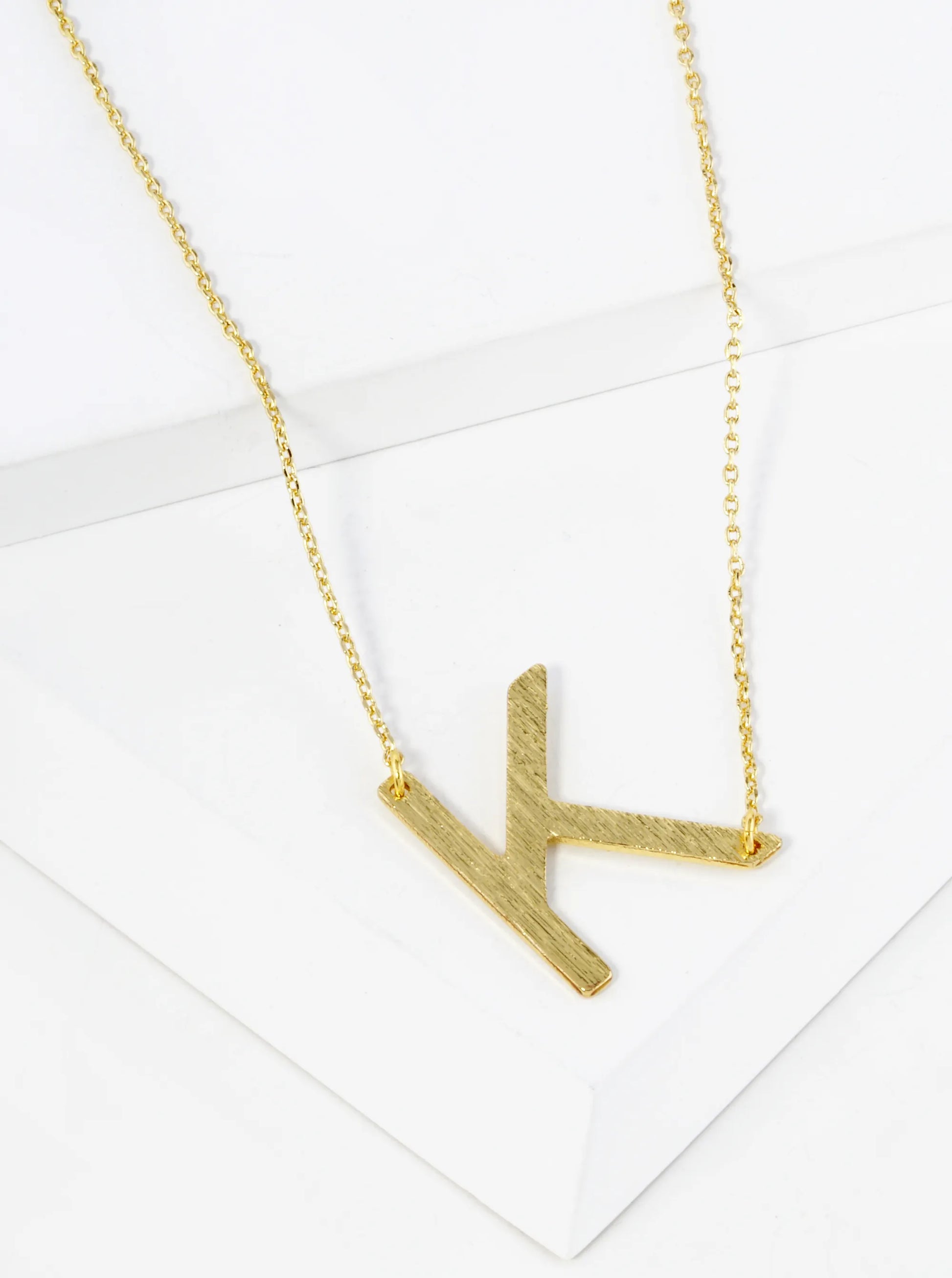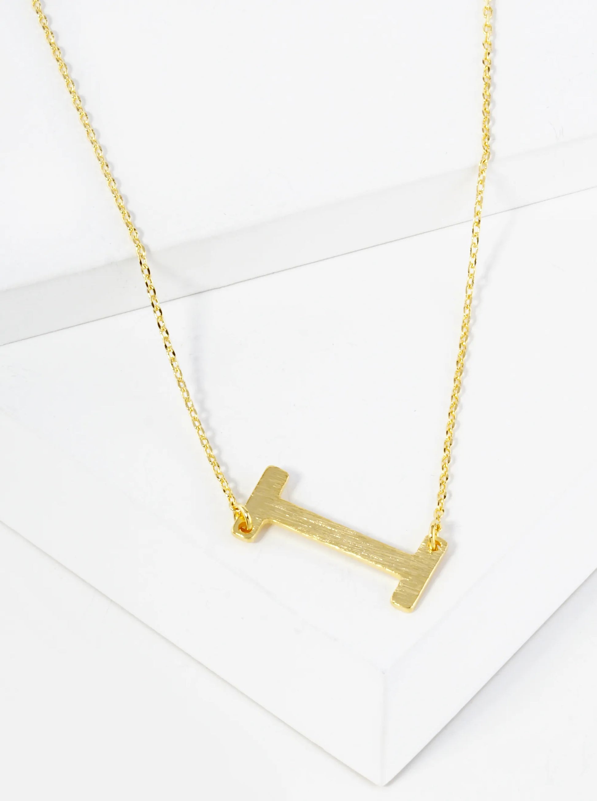 18K Gold Dipped Brushed Metal Initial Alphabet Letter Pendant Necklace