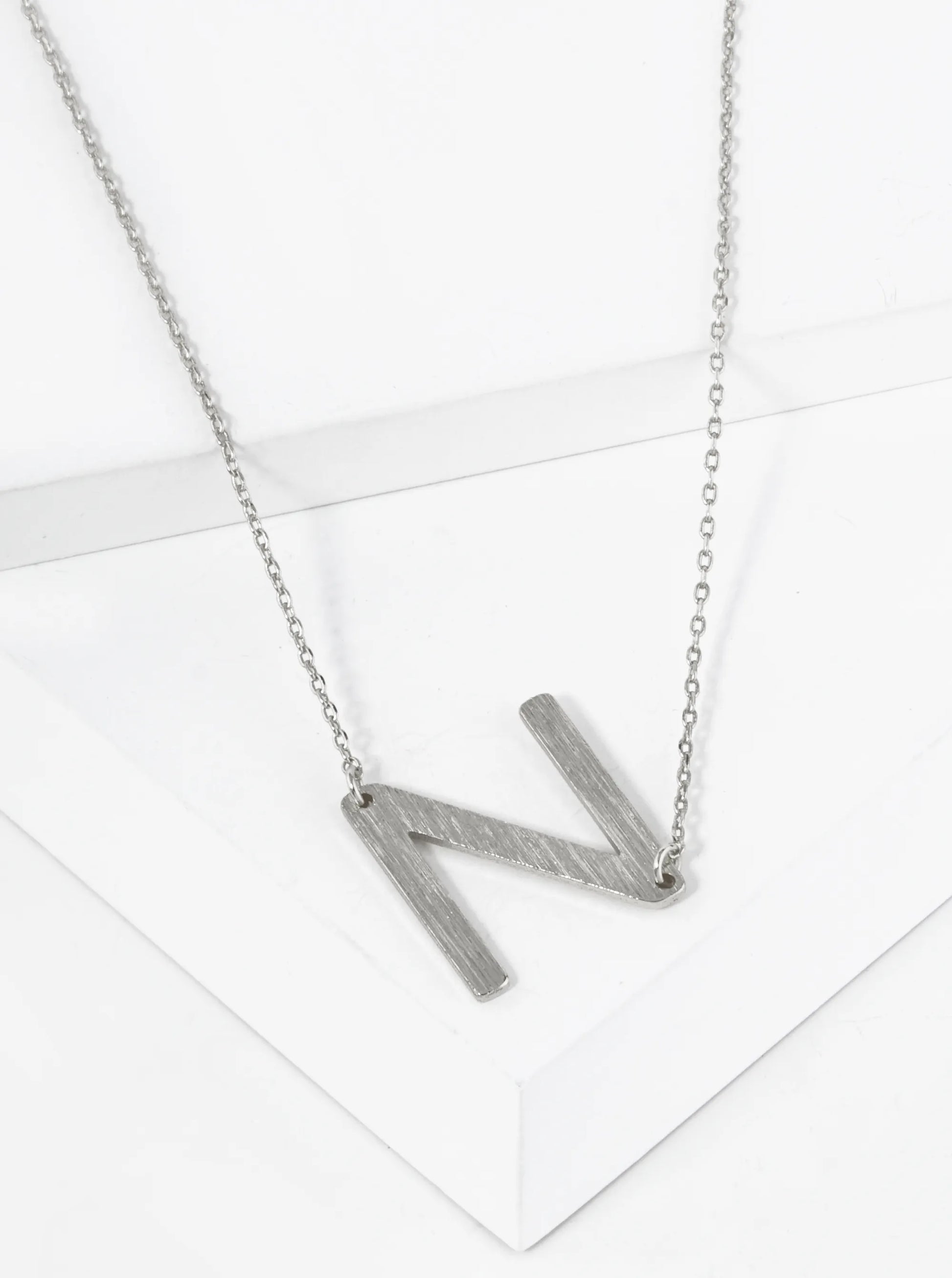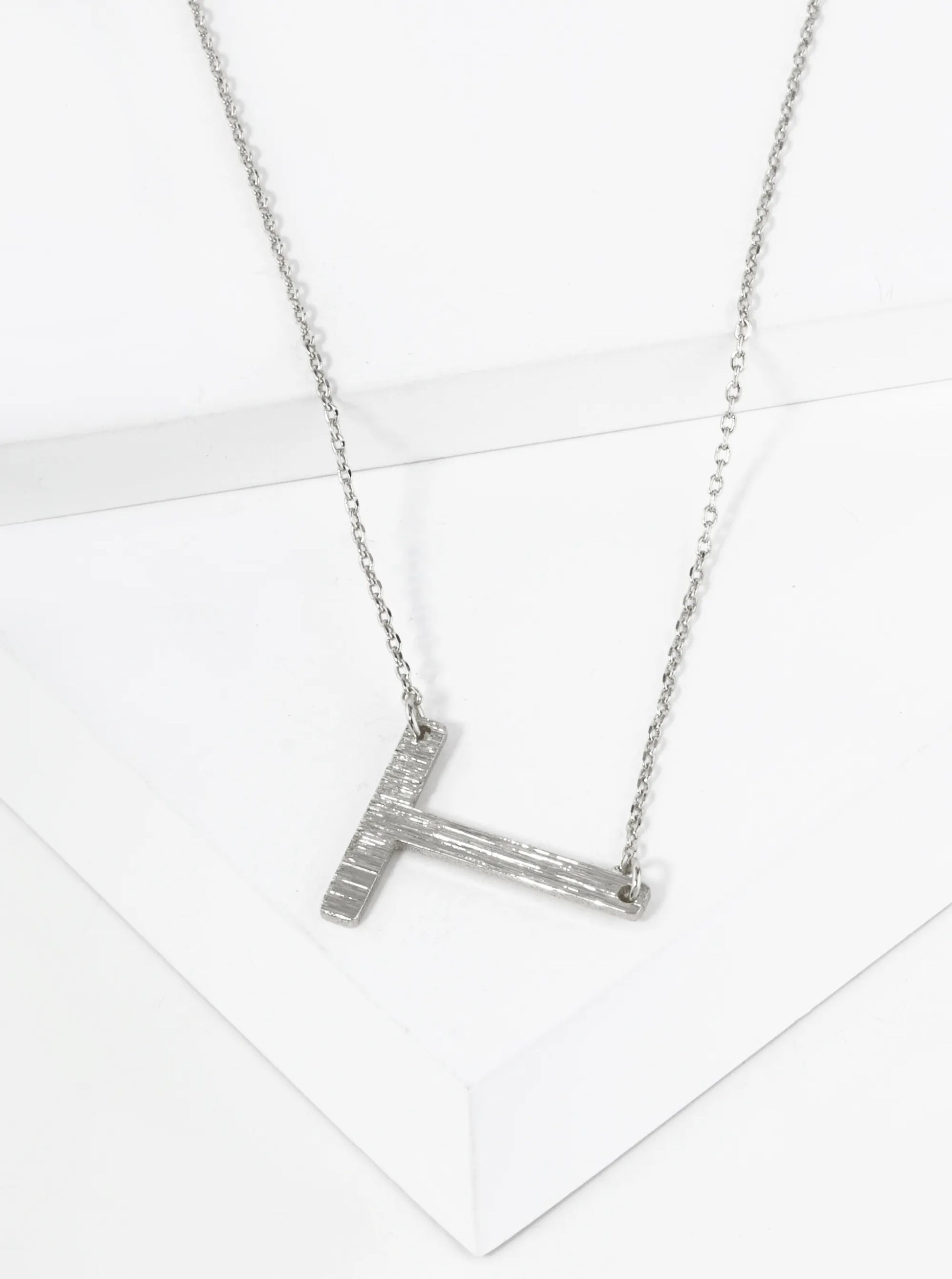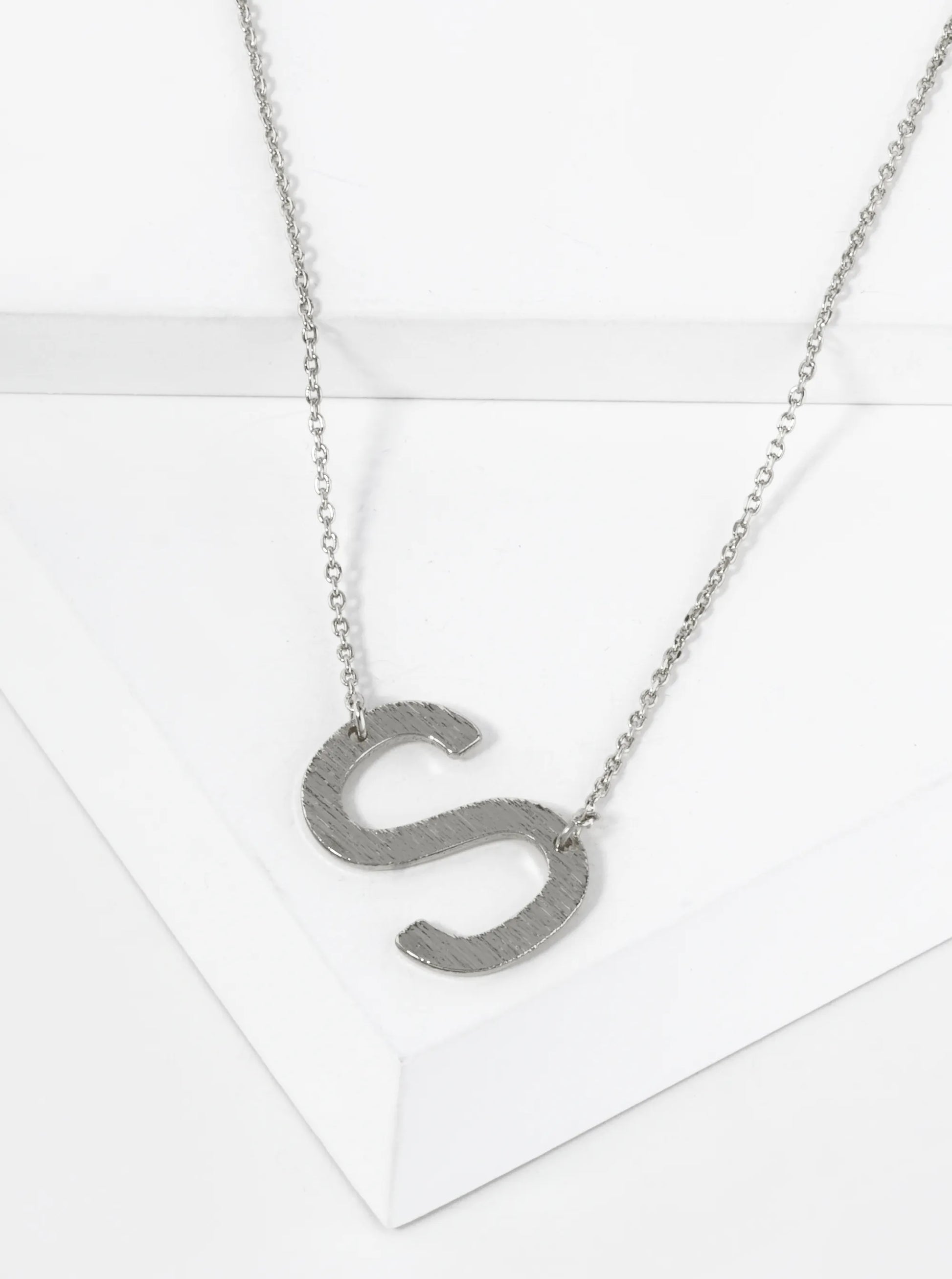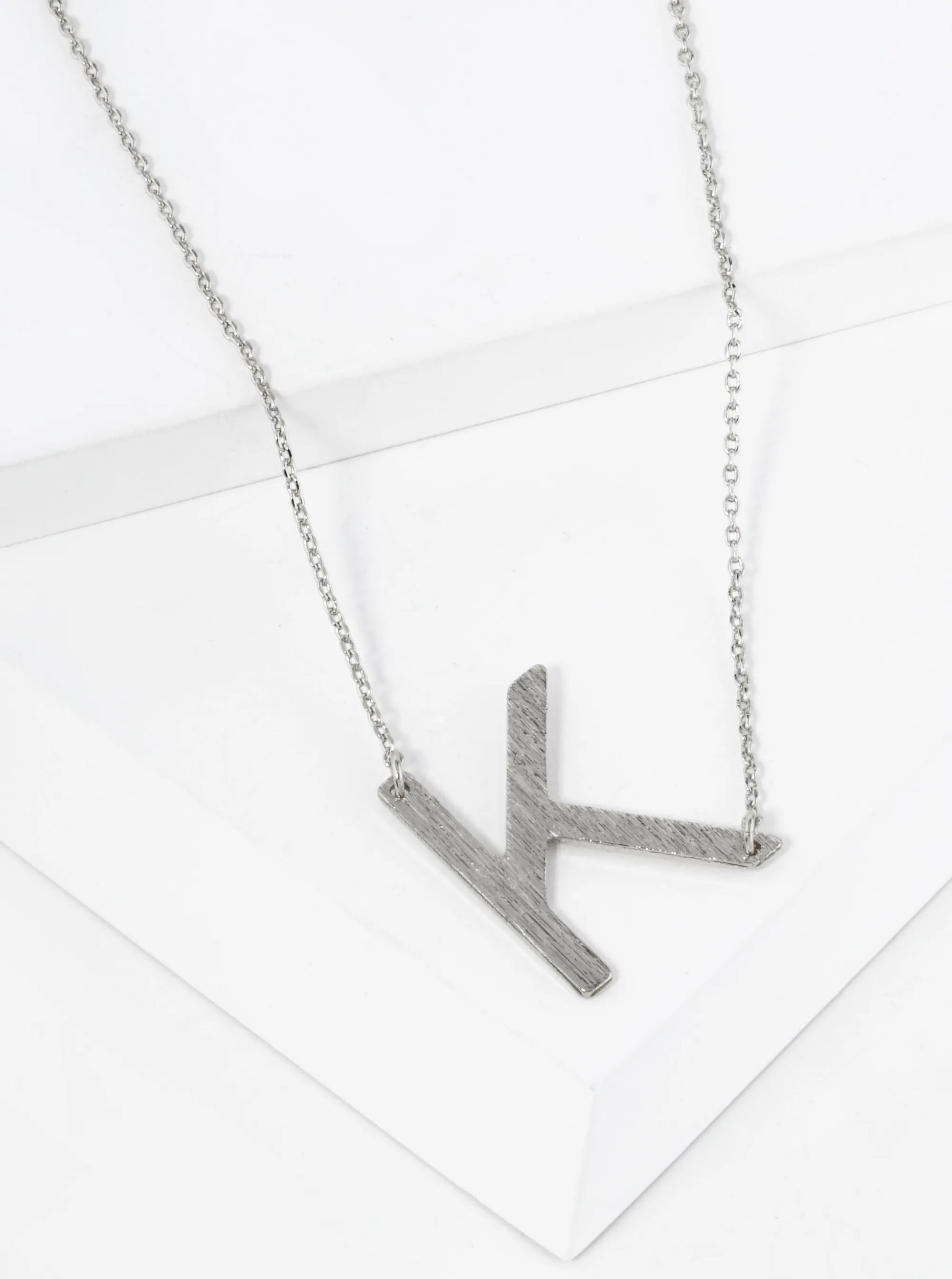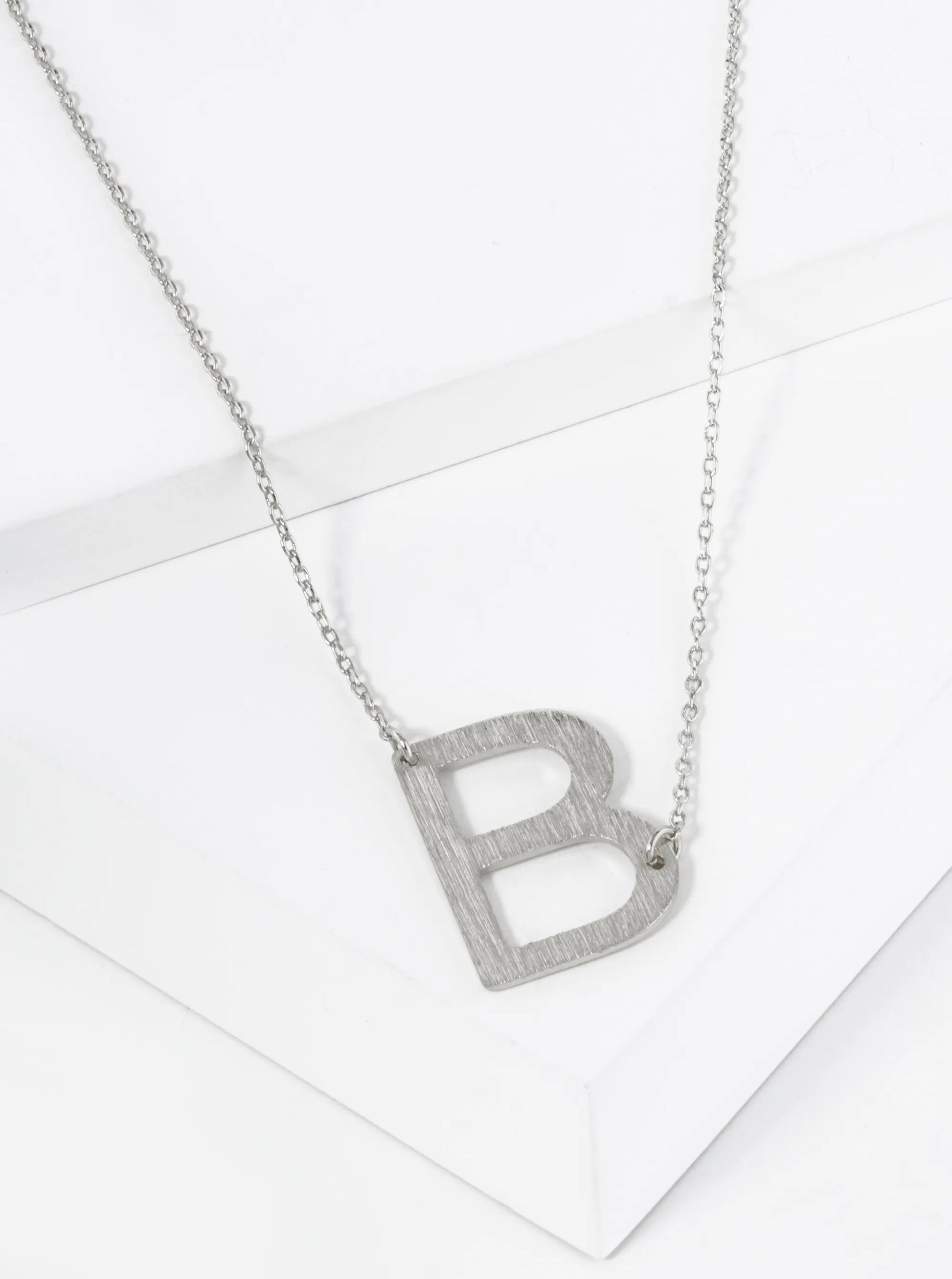 18K Gold Dipped Brushed Metal Initial Alphabet Letter Pendant Necklace