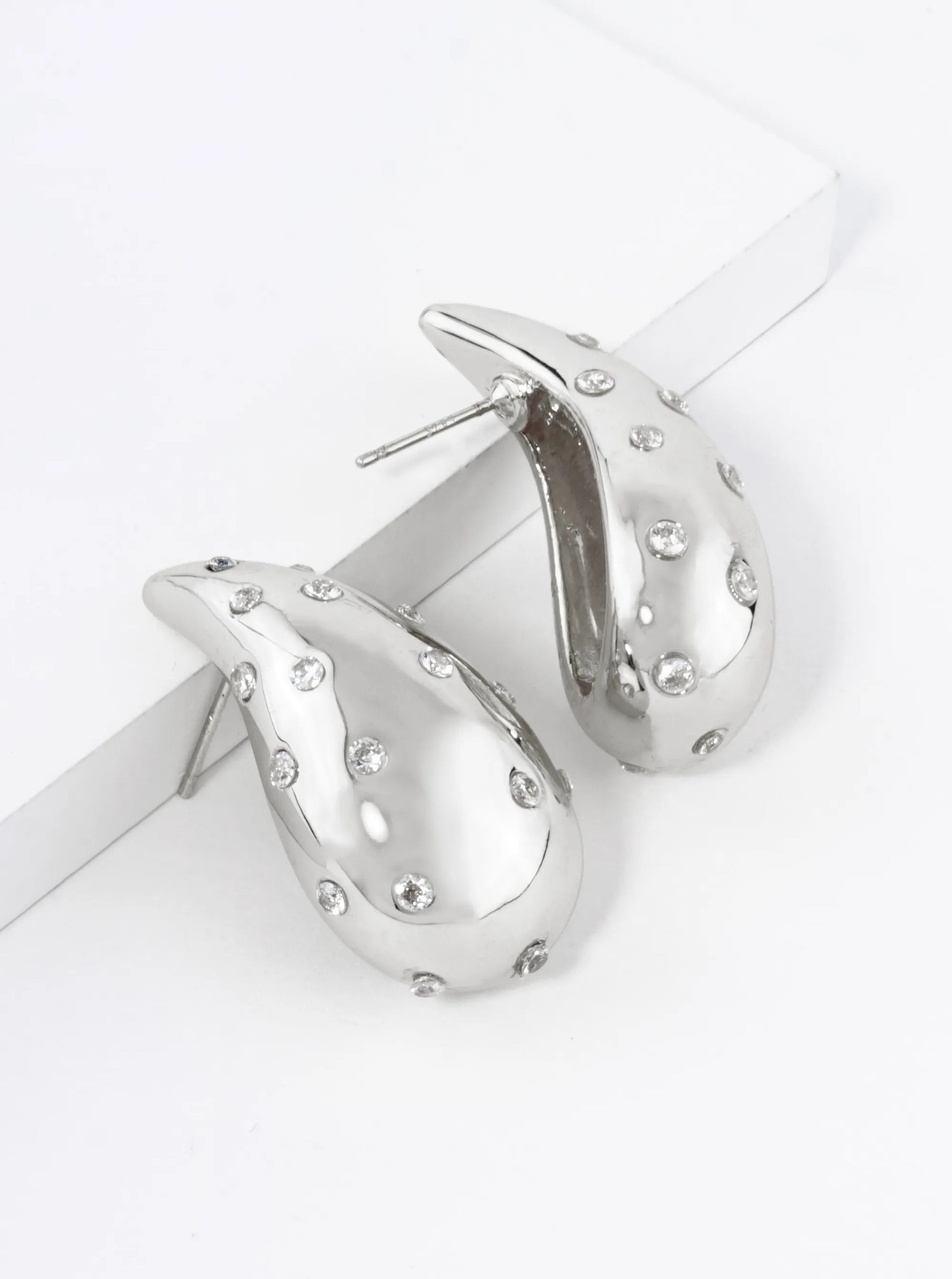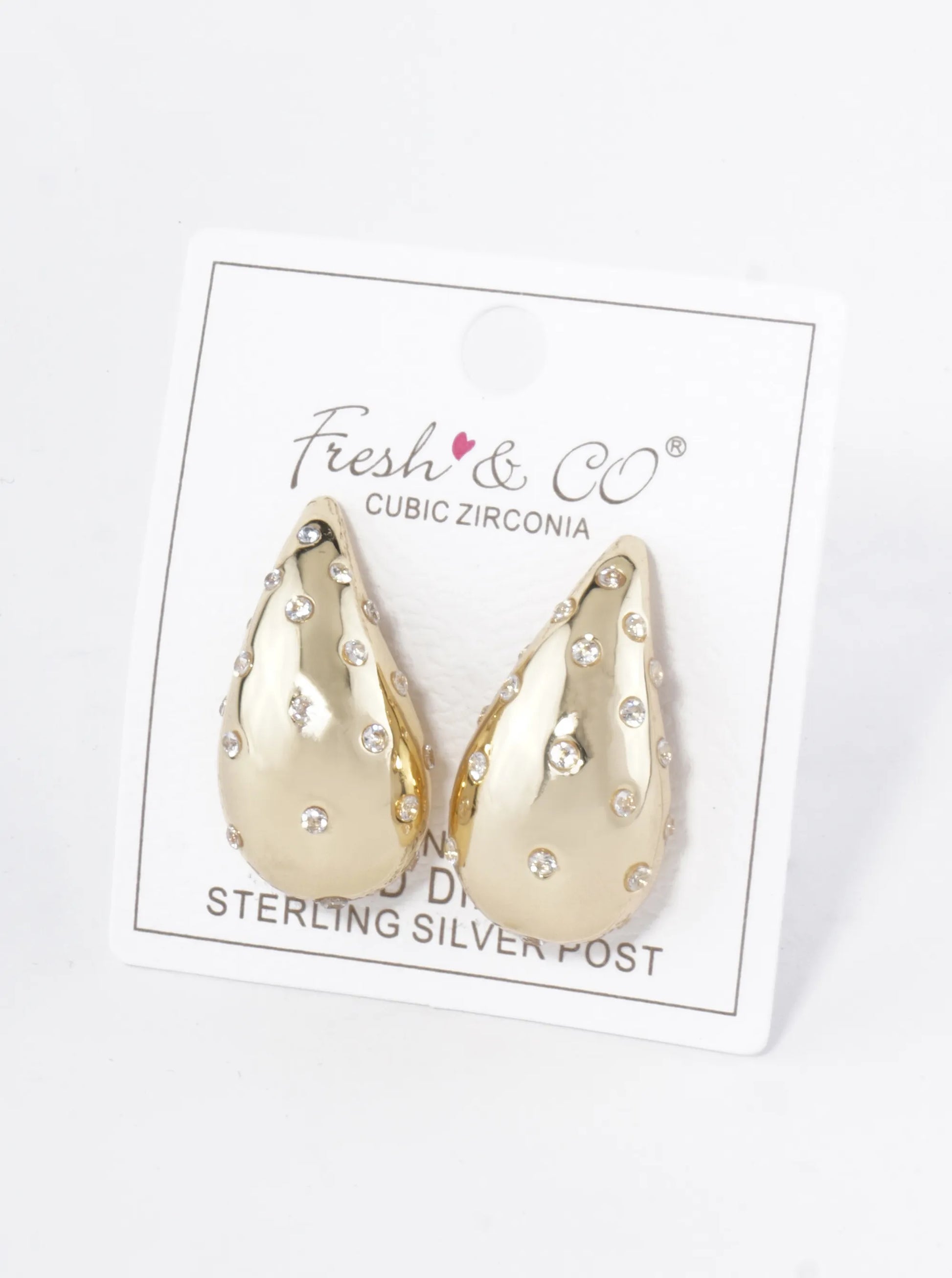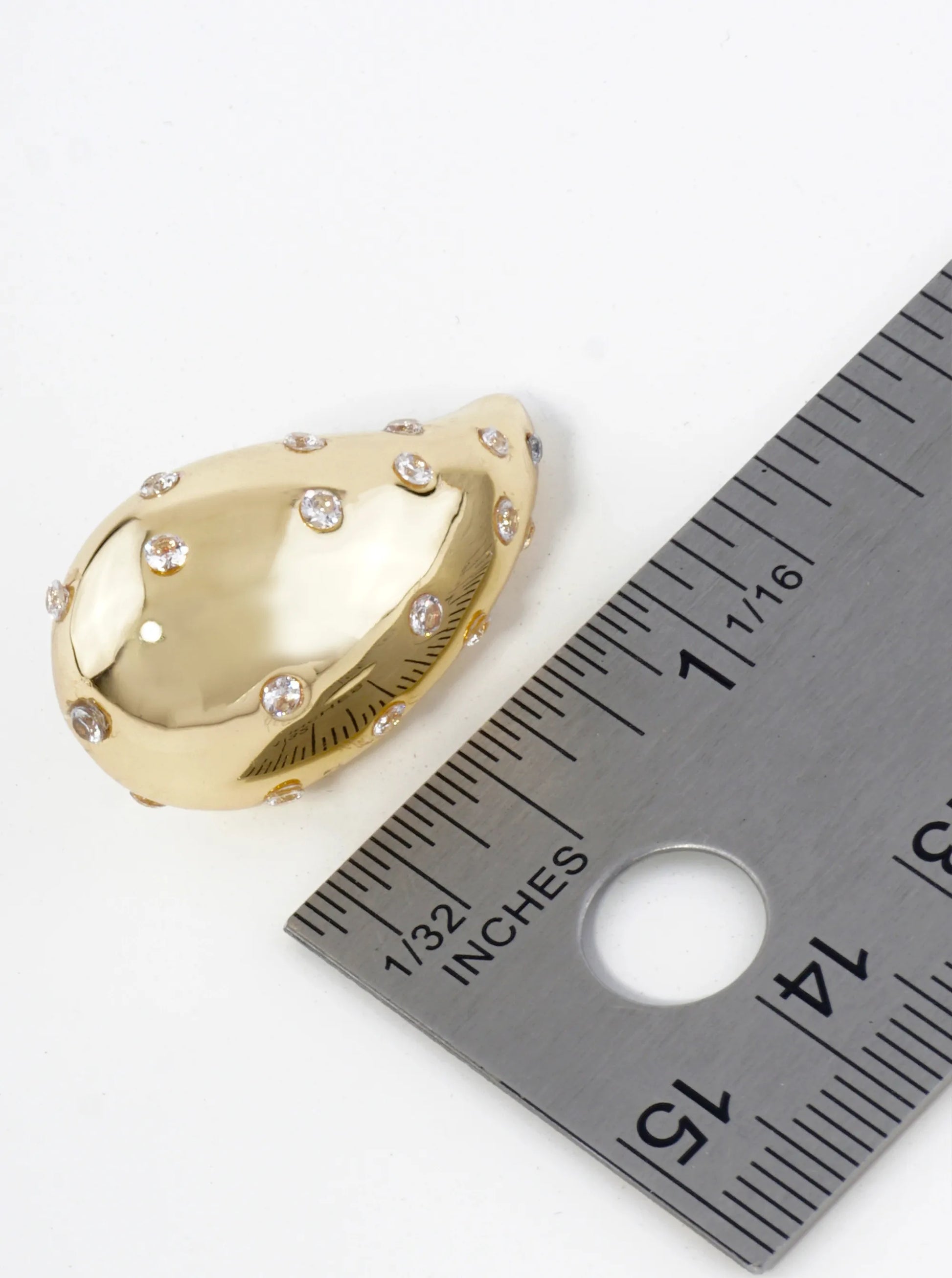 18K Gold Dipped Cubic Zirconia Embedded Puffy Teardrop Stud Earrings