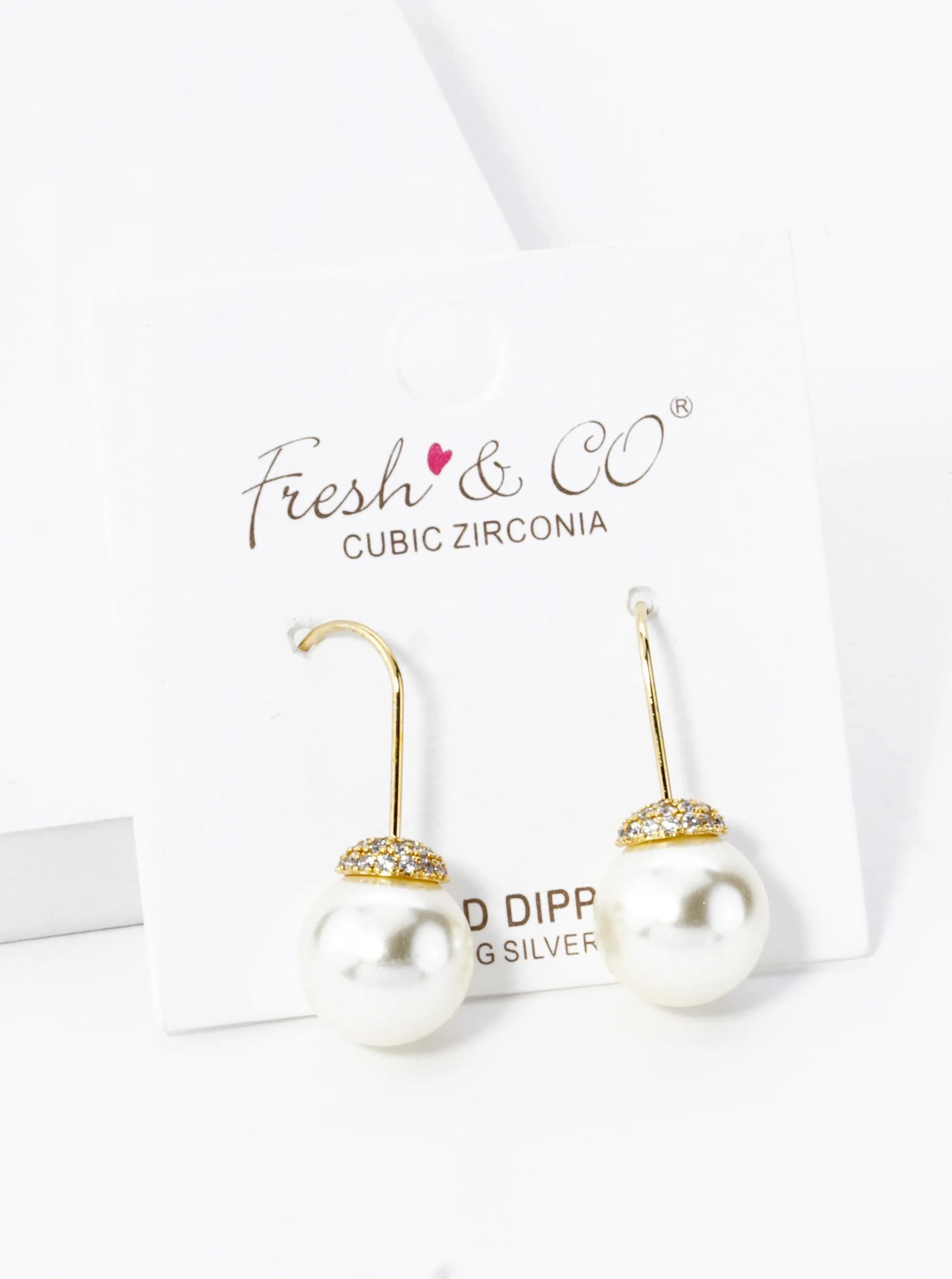 18K Gold Dipped Cubic Zirconia Pave 10mm Pearl Drop Earrings