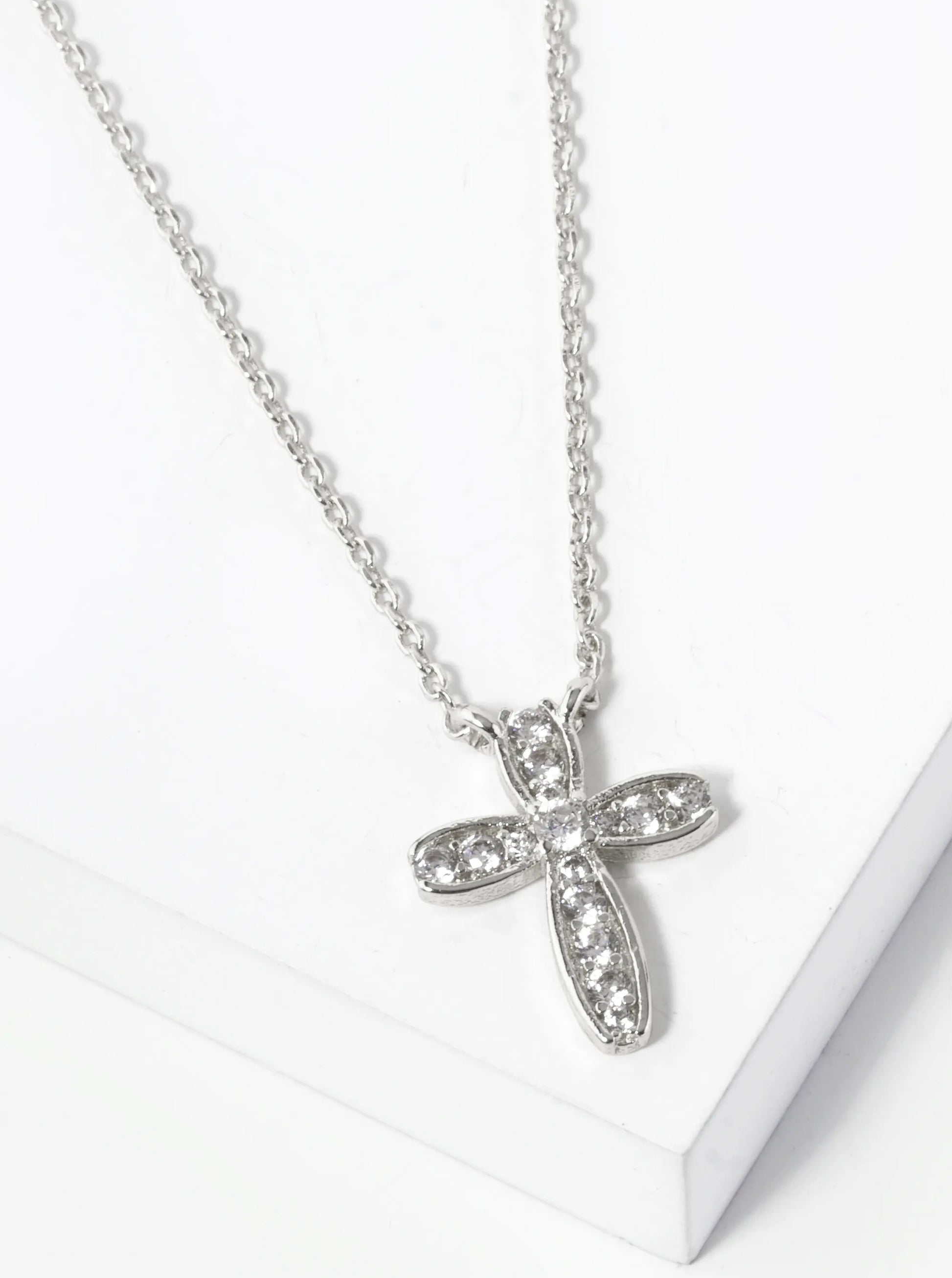 18K Gold Dipped Cubic Zirconia Pave Cross Pendant Necklace