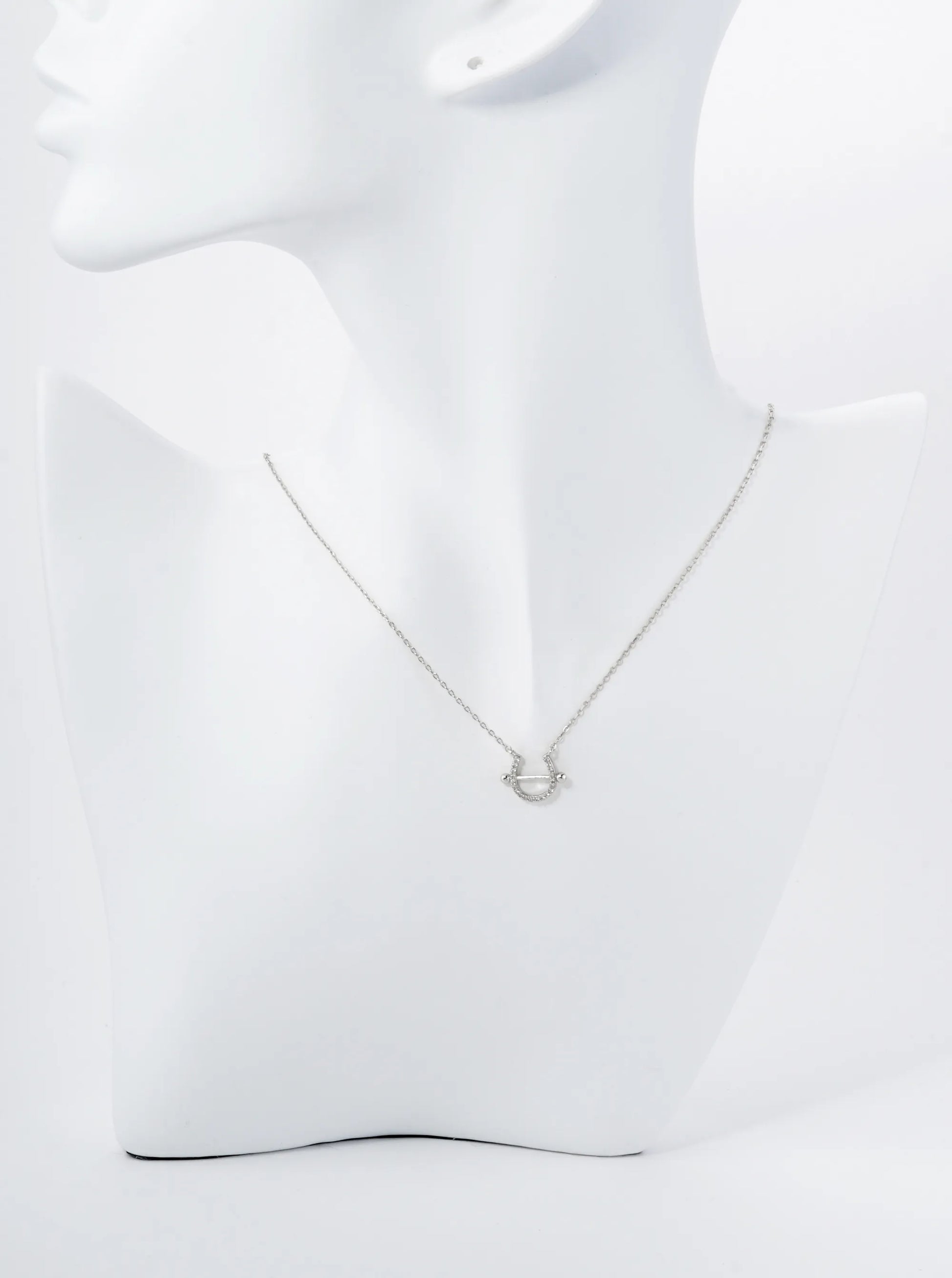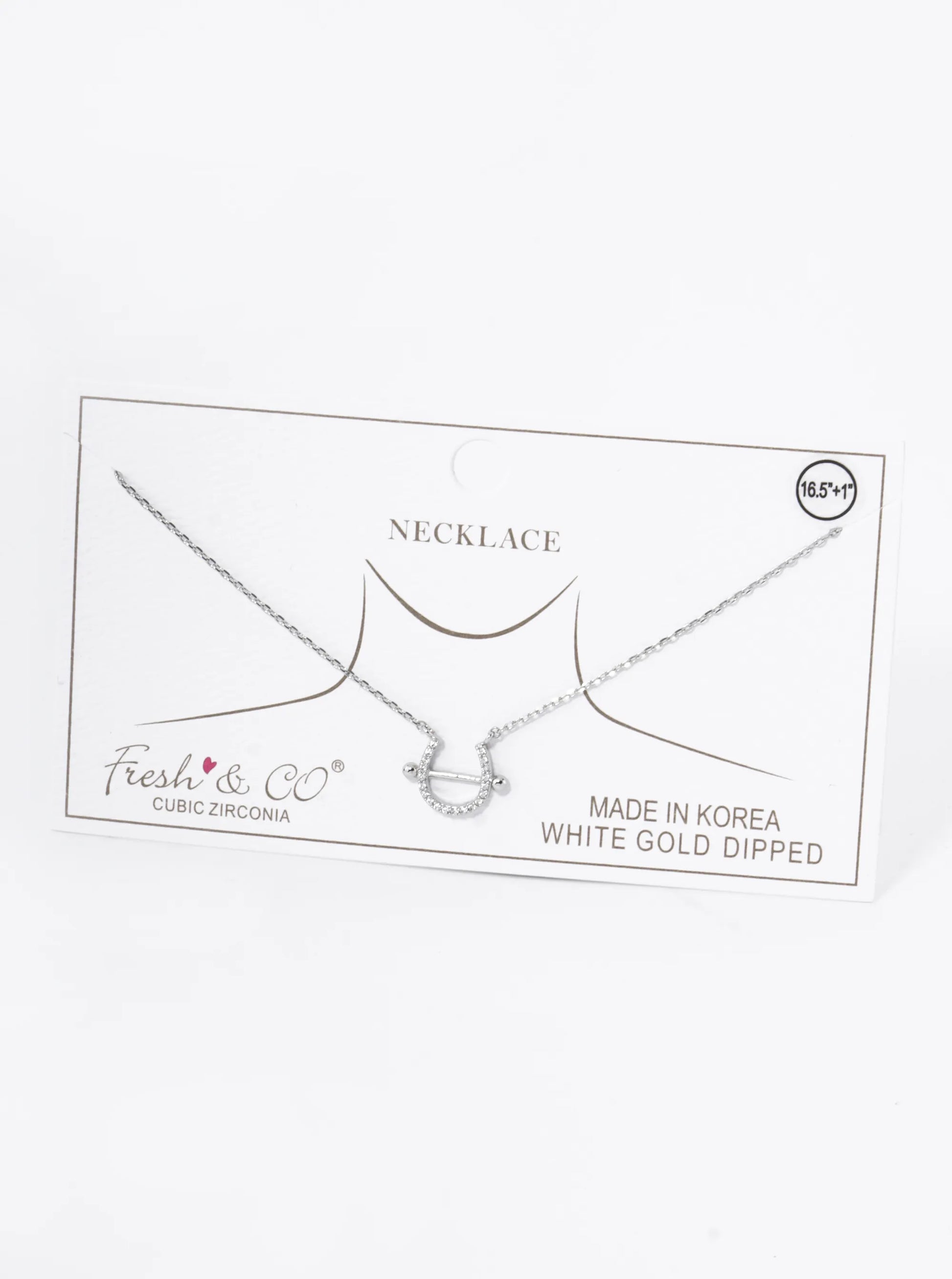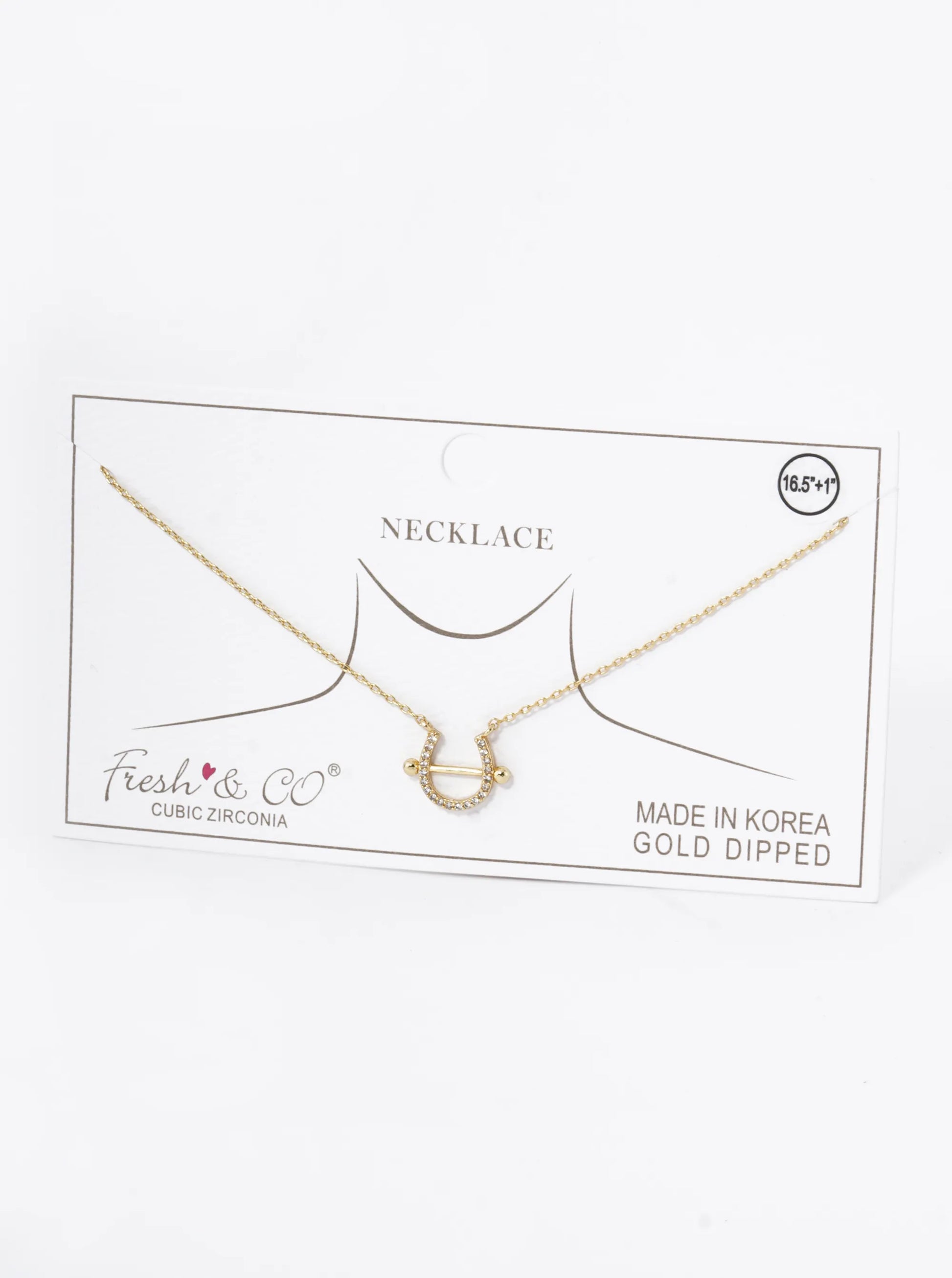 18K Gold Dipped Cubic Zirconia Pave Horseshoe Pendant Necklace