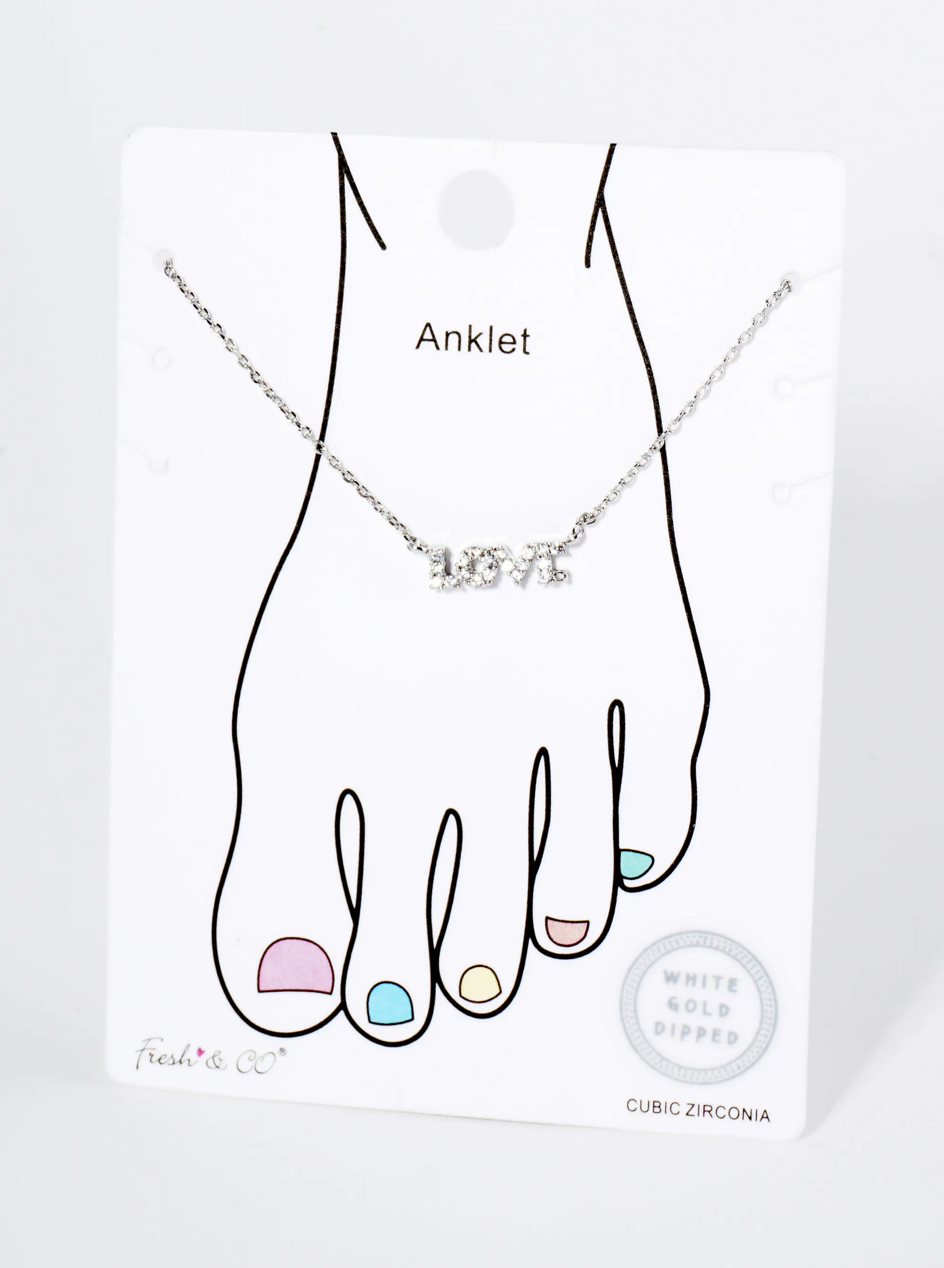 18K Gold Dipped Cubic Zirconia Pave LOVE Brass Chain Anklet