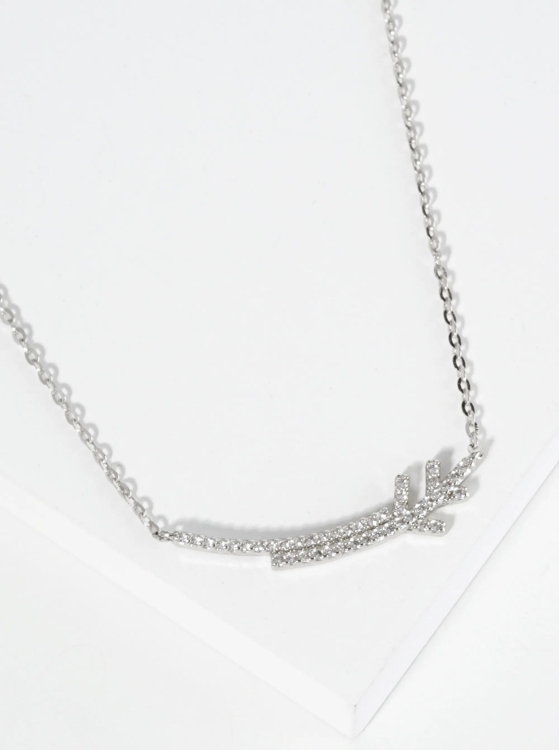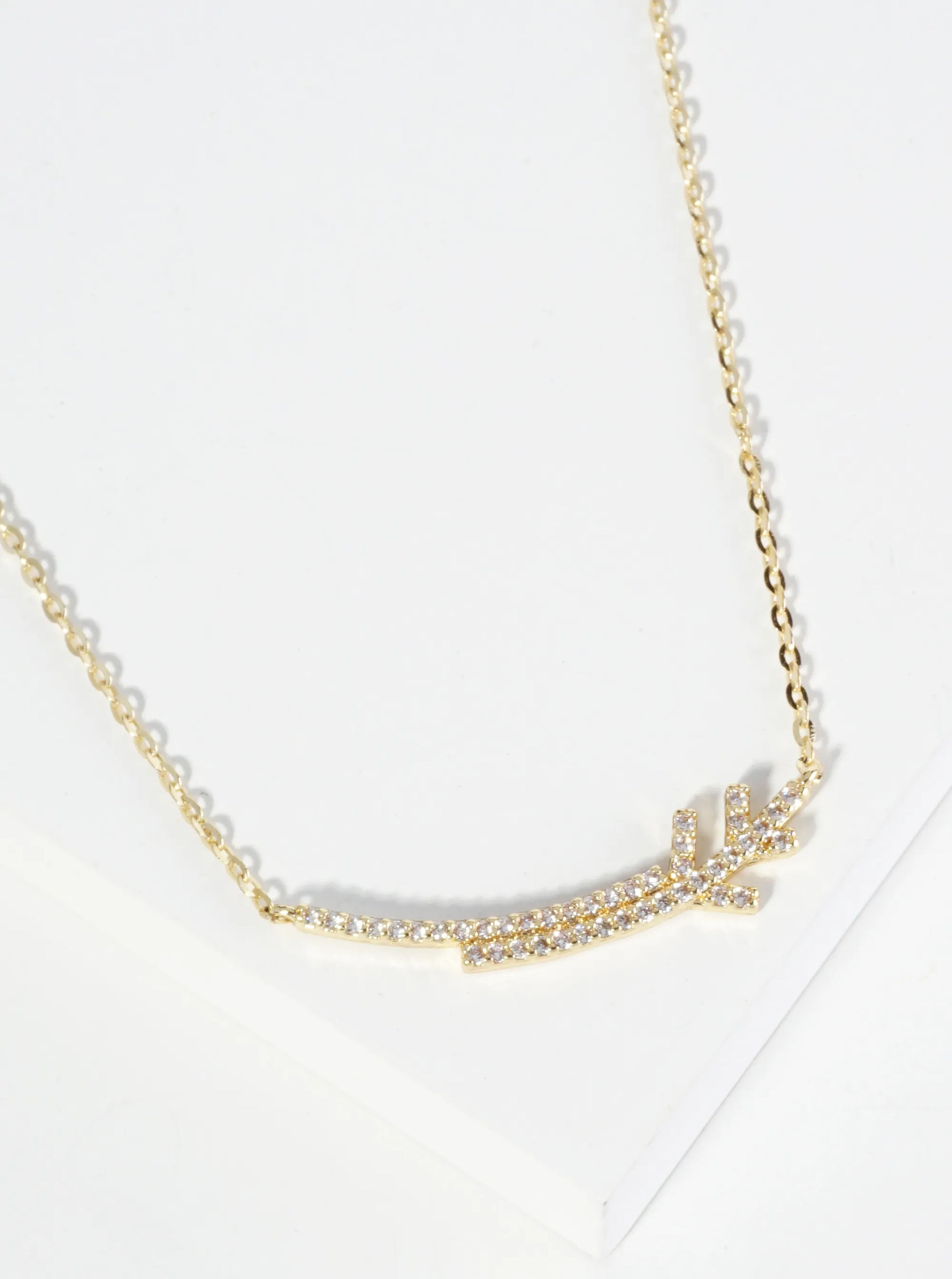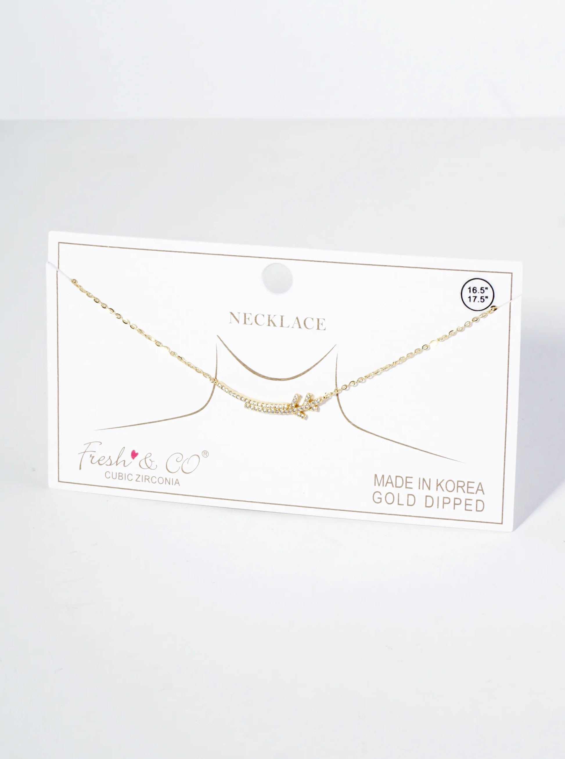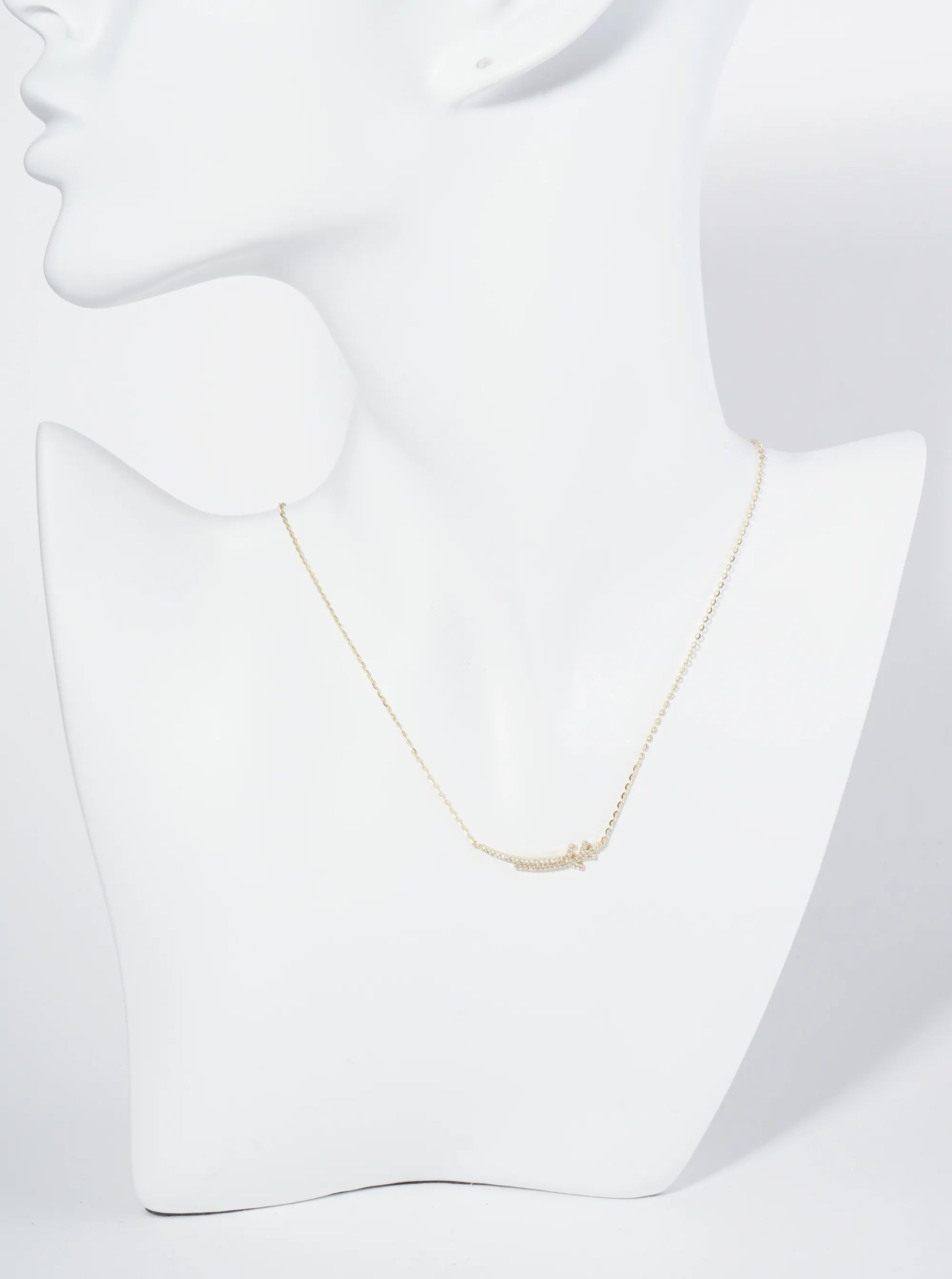 18K Gold Dipped Curved Layered Two Bars Pendant Cubic Zirconia Necklace