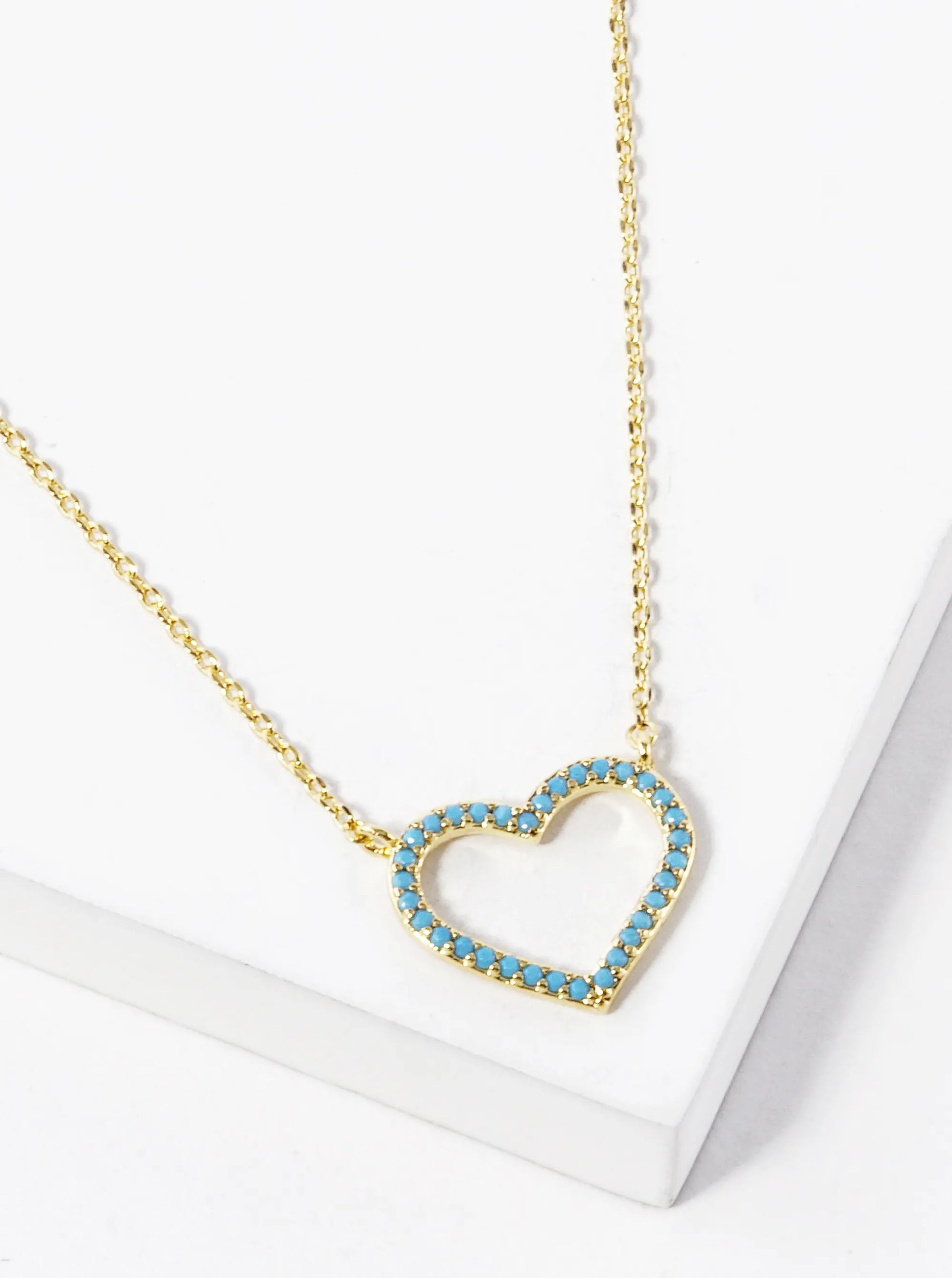 18K Gold Dipped CZ Pave 12mm Heart Pendant Necklace