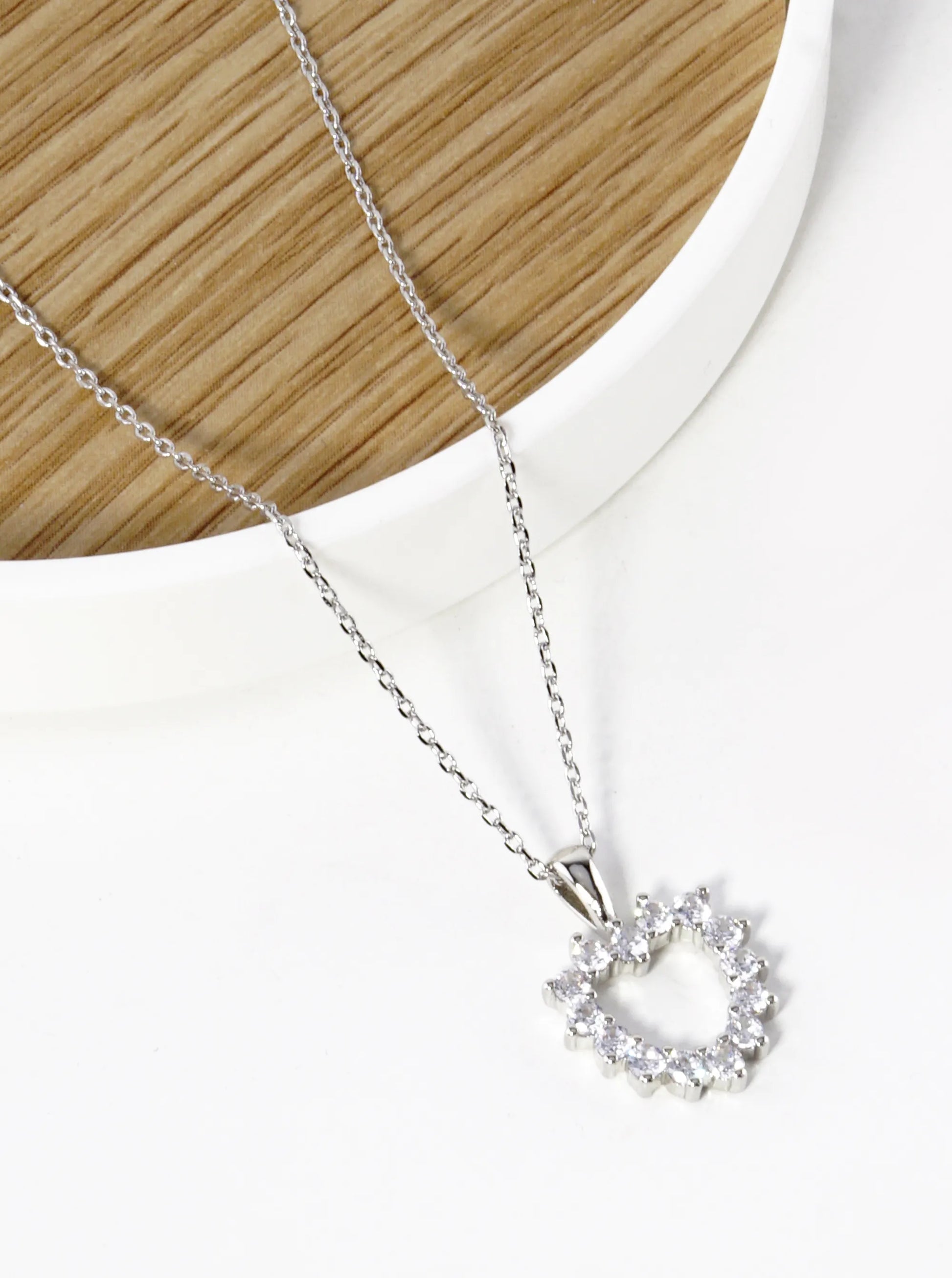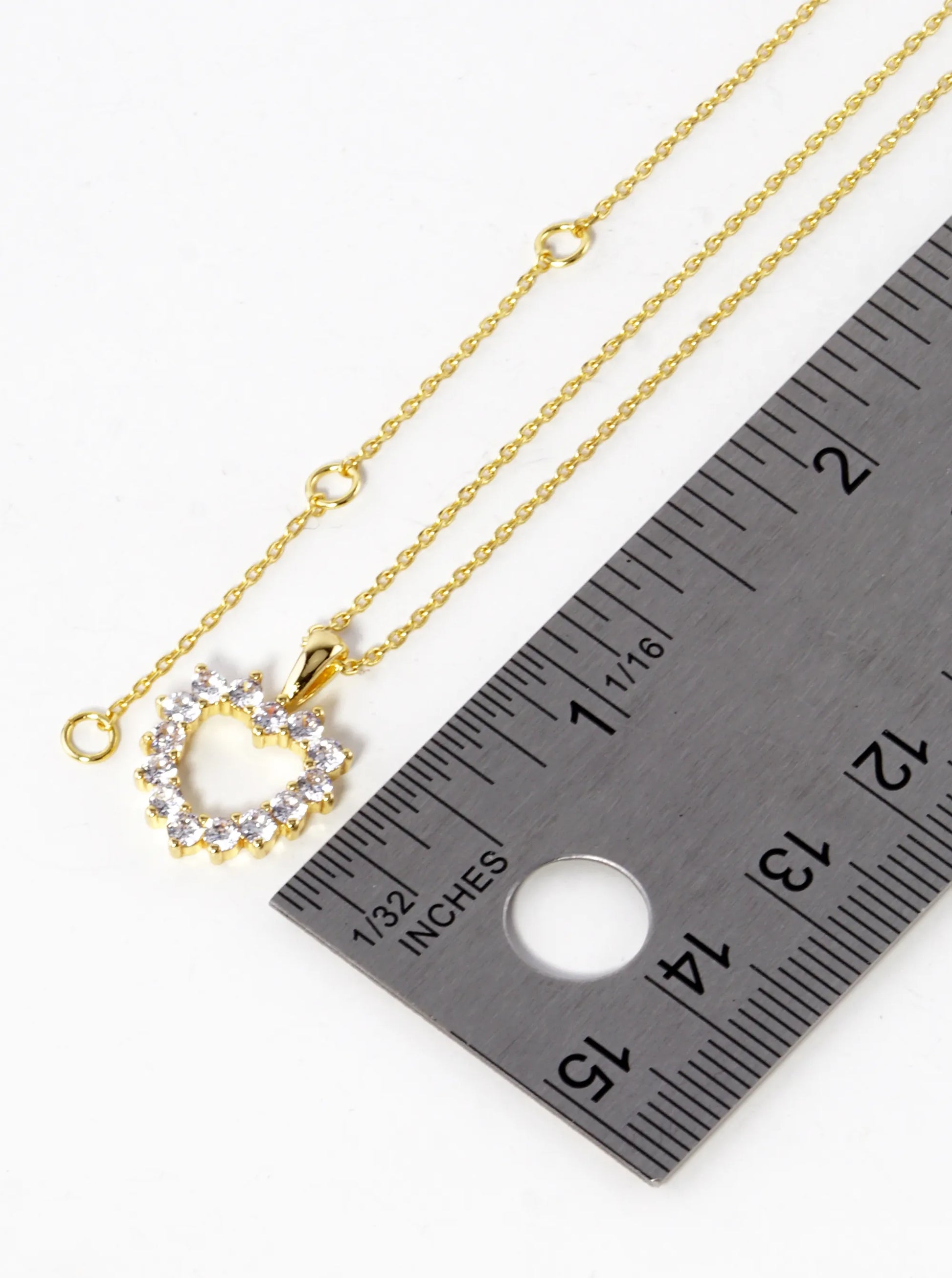 18K Gold Dipped CZ Pave 13mm Heart Pendant Necklace