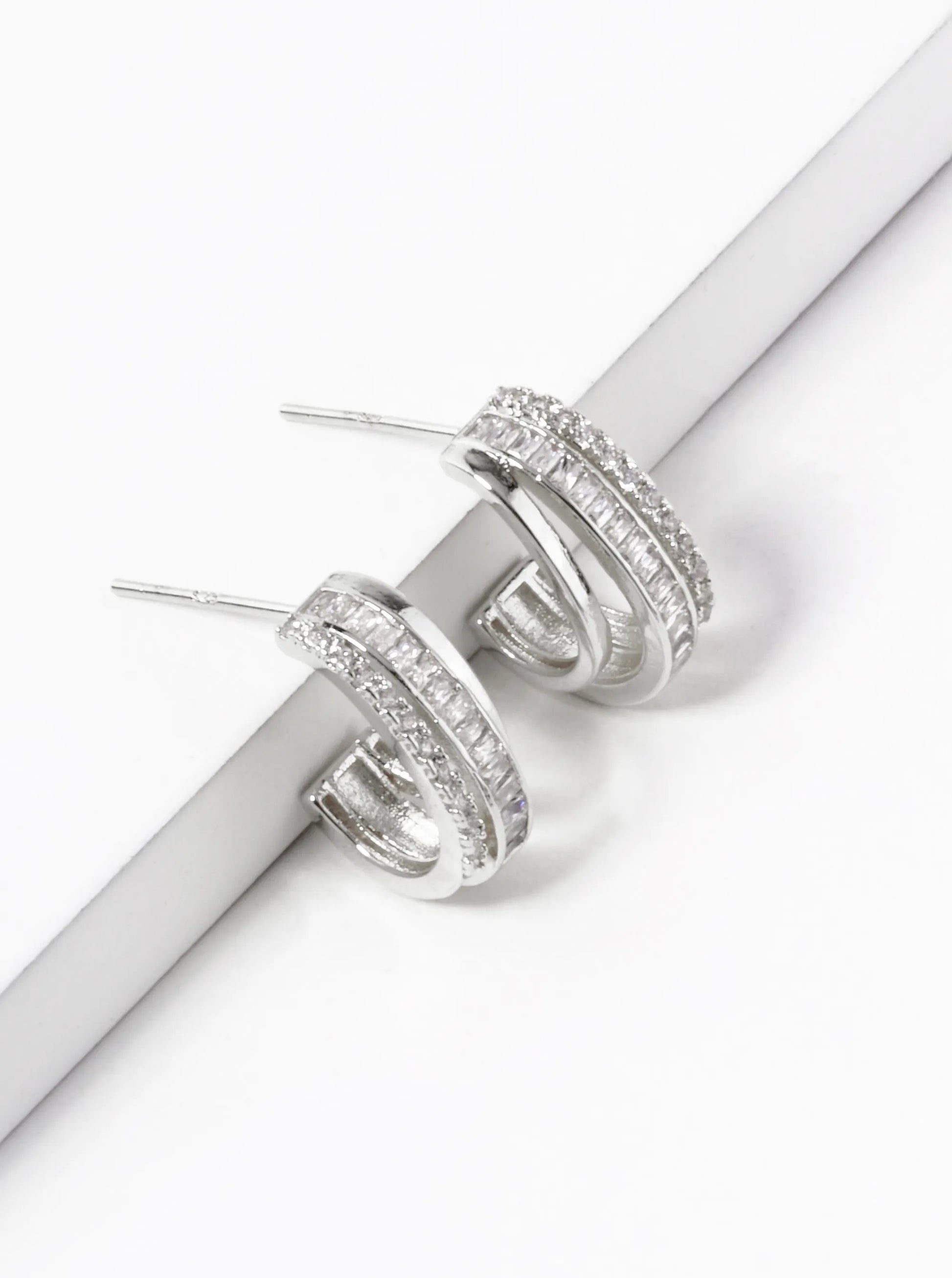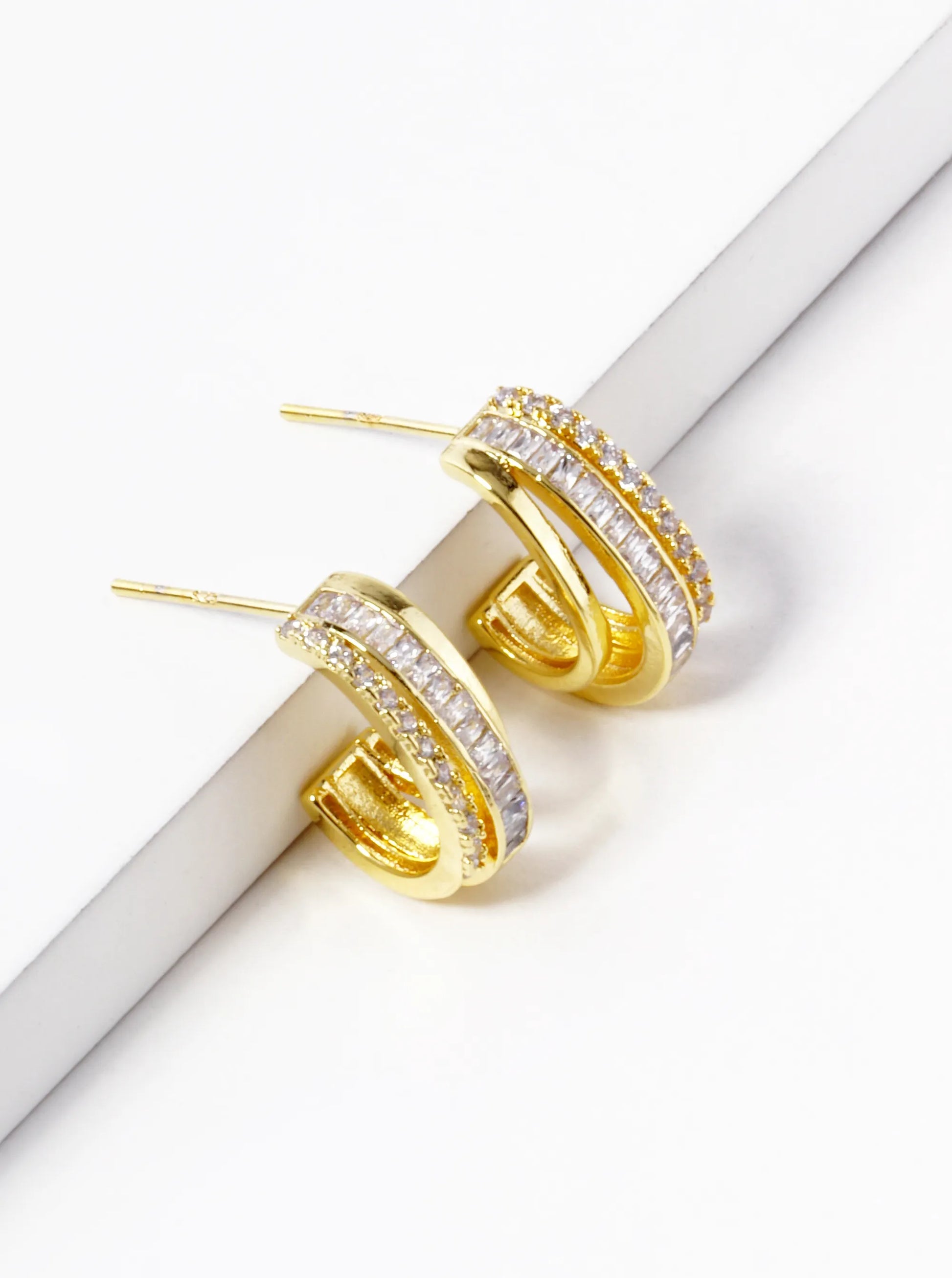 18k Gold Dipped CZ Pave 15mm Layered Hoop Earrings