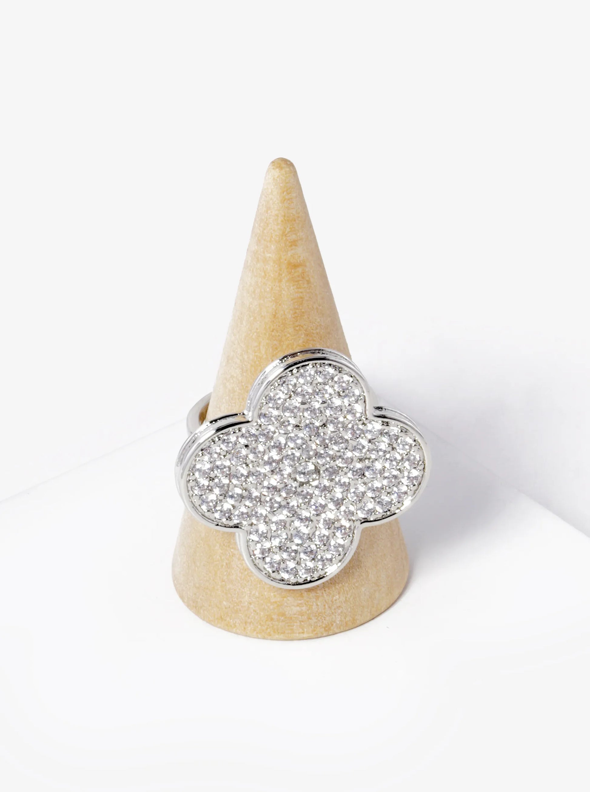 18k Gold Dipped CZ Pave 25mm Quatrefoil Adjustable Ring