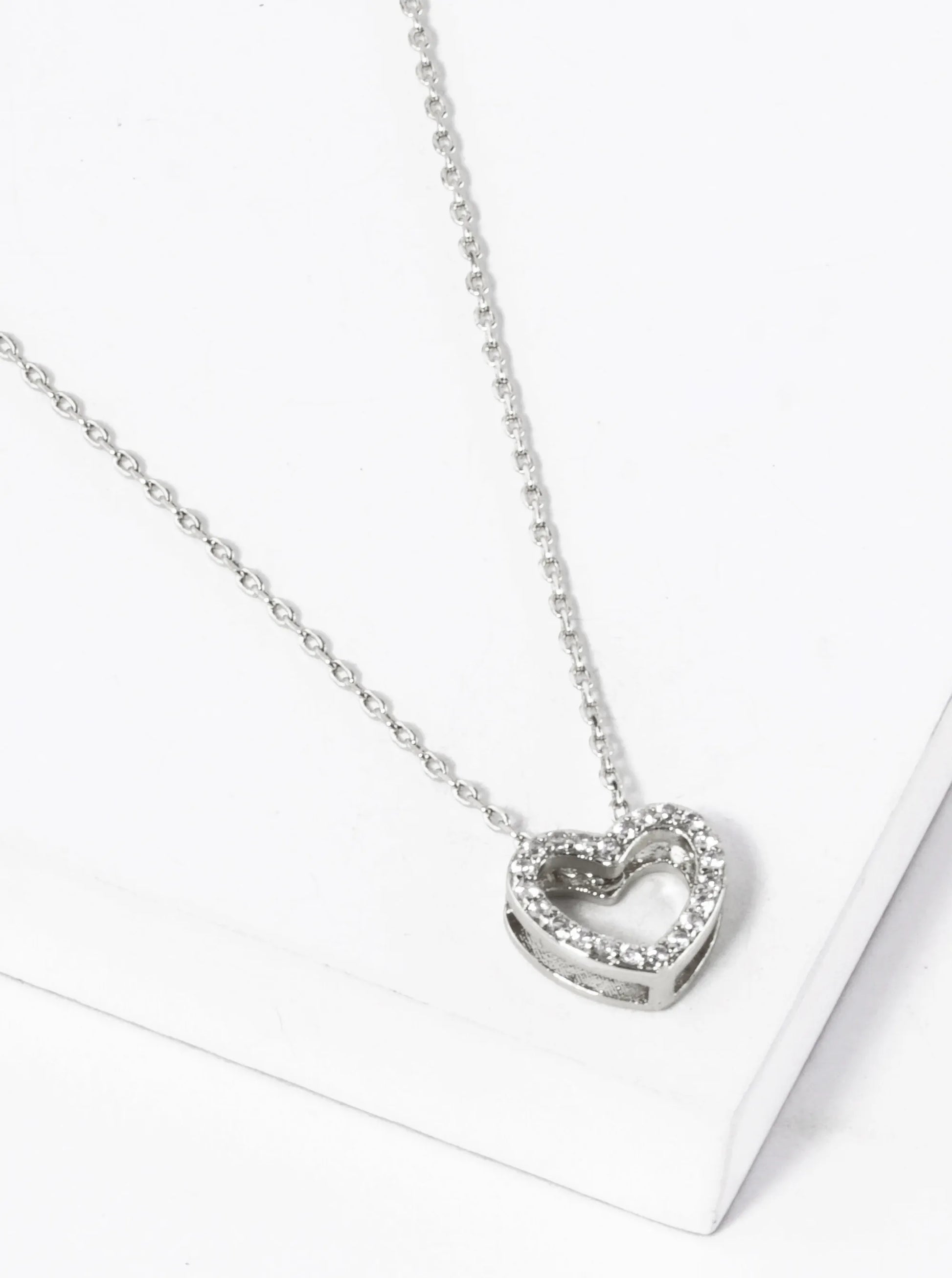 18K Gold Dipped CZ Pave 9mm Heart Pendant Necklace
