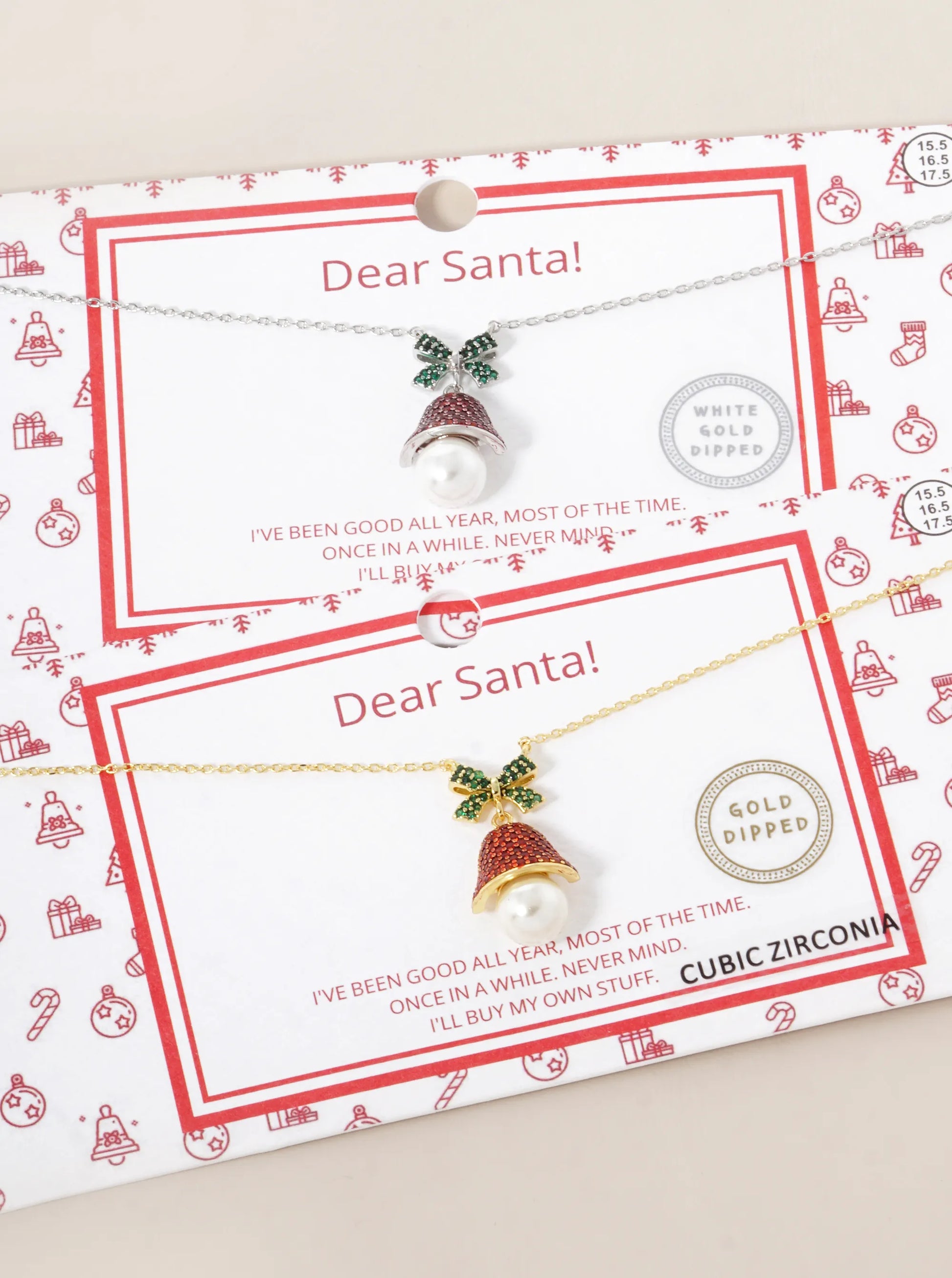 18K Gold Dipped CZ Pave Christmas Bell Pendant Necklace