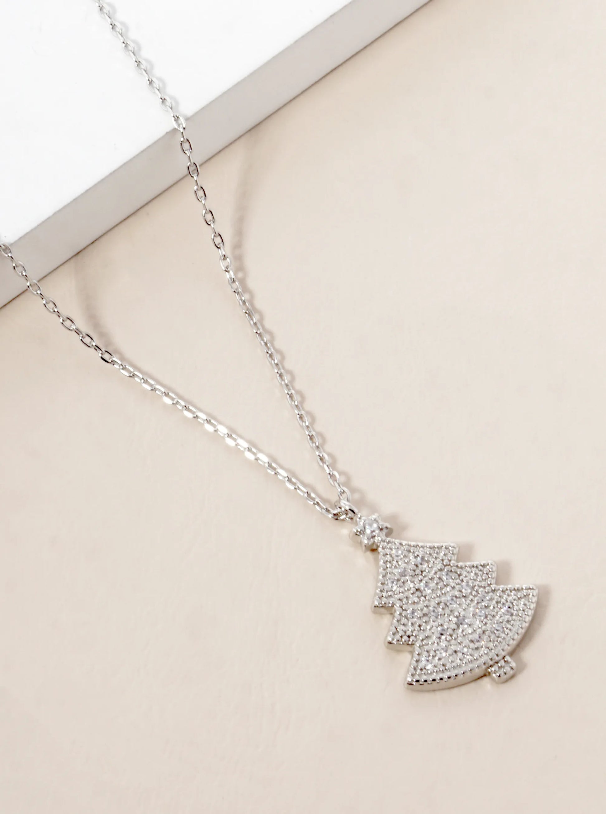 18K Gold Dipped CZ Pave Christmas Tree Pendant Necklace
