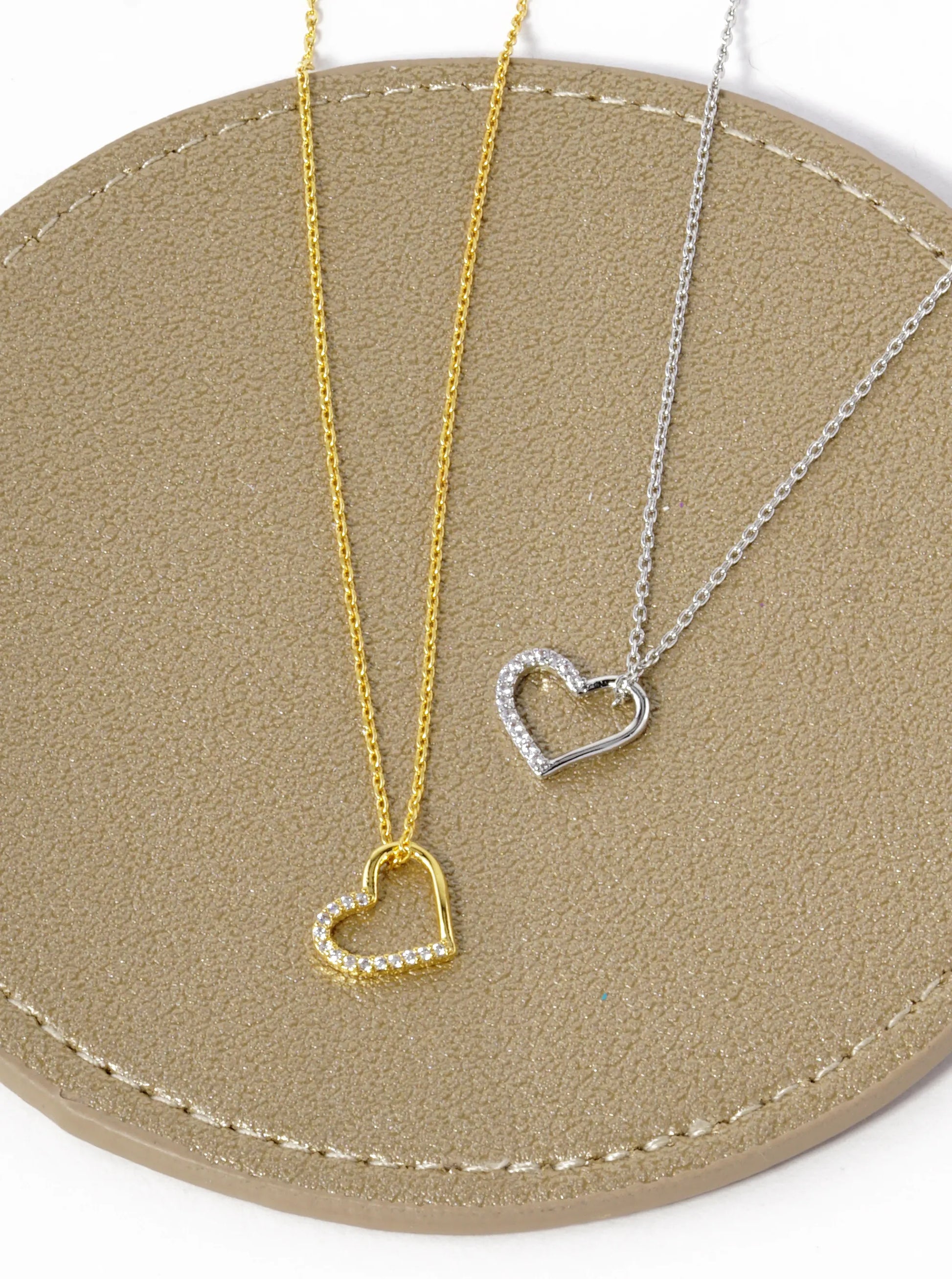 18K Gold Dipped CZ Pave Delicate Heart Pendant Necklace