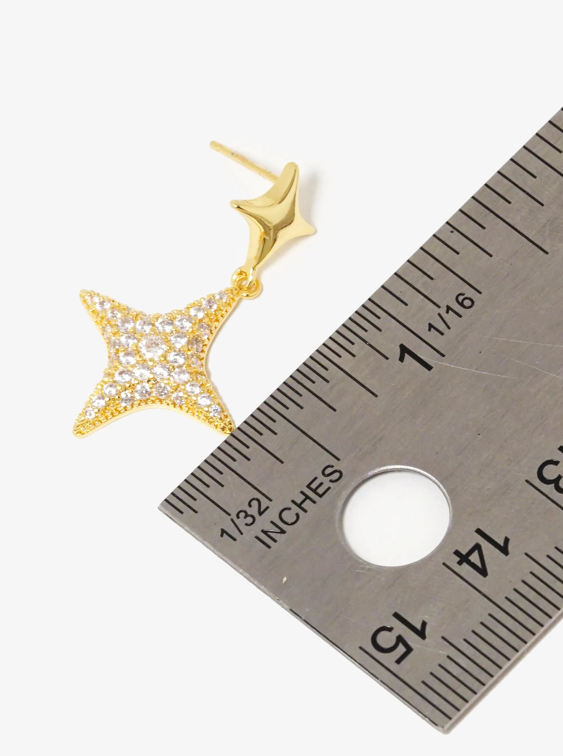 18K Gold Dipped CZ Pave Double Puffy Sparkle Stars Drop Earrings