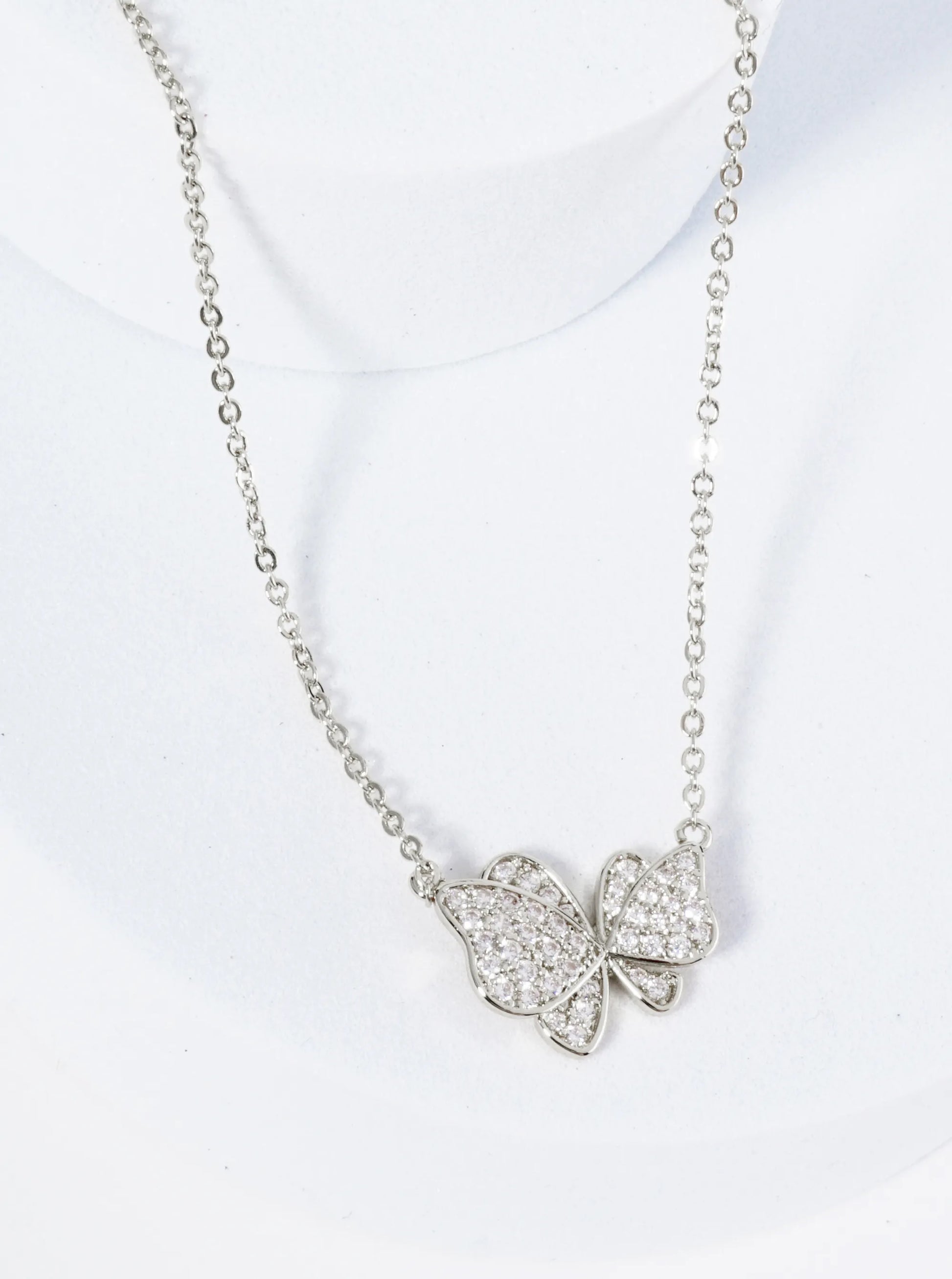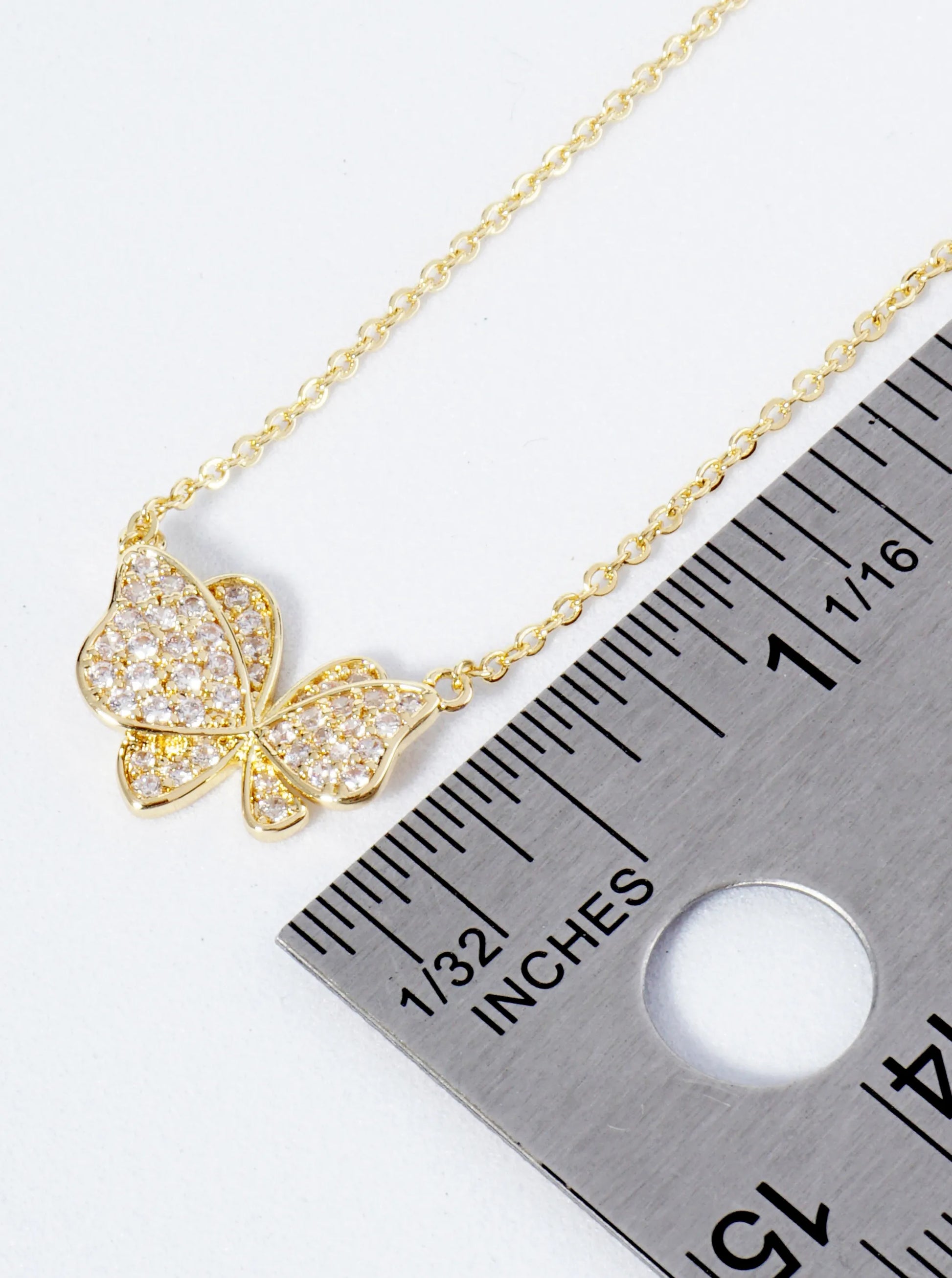 18K Gold Dipped CZ Pave Dynamic Butterfly Pendant Necklace