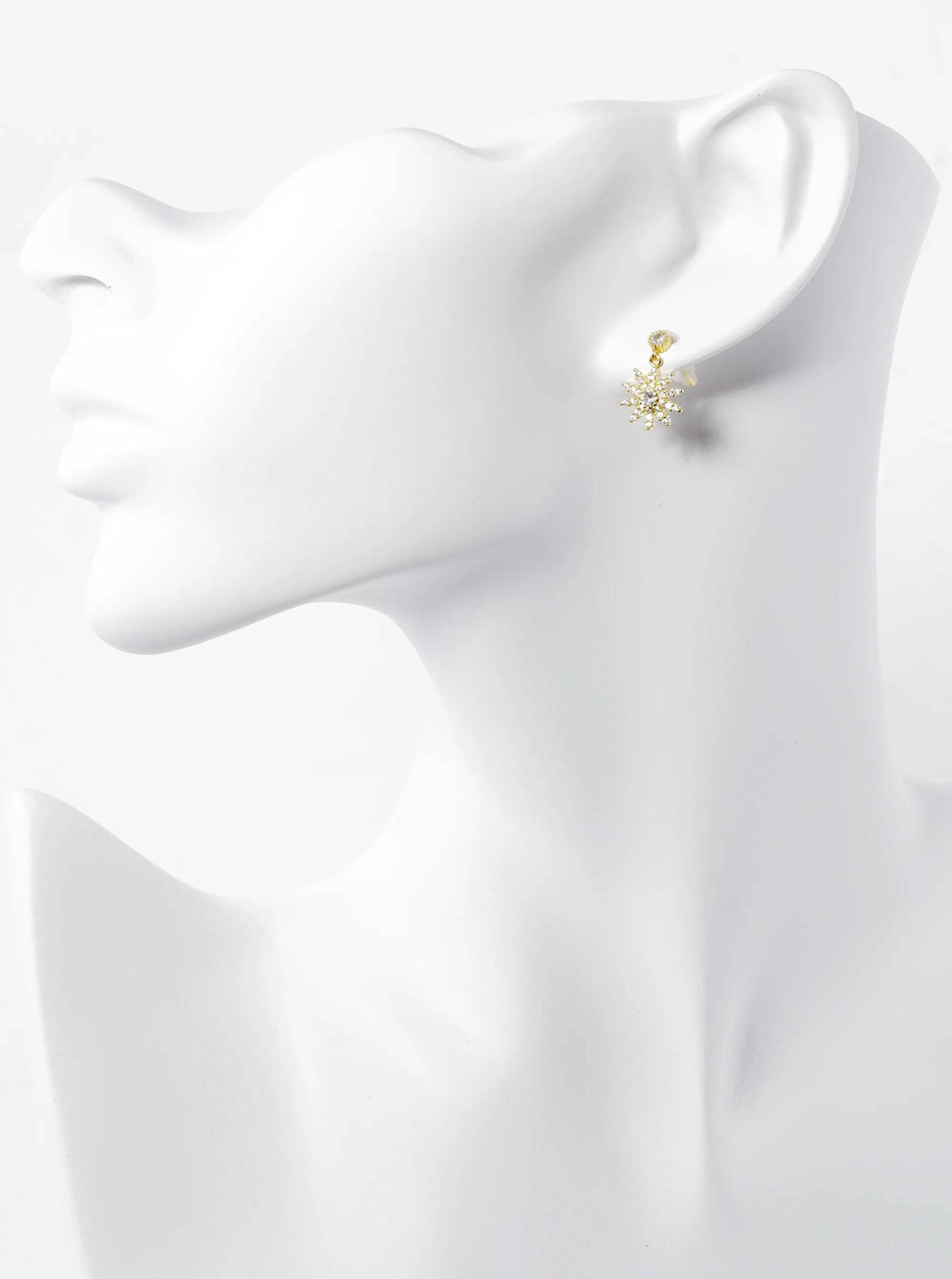 18K Gold Dipped CZ Pave Flower Drop Dangle Post Earrings