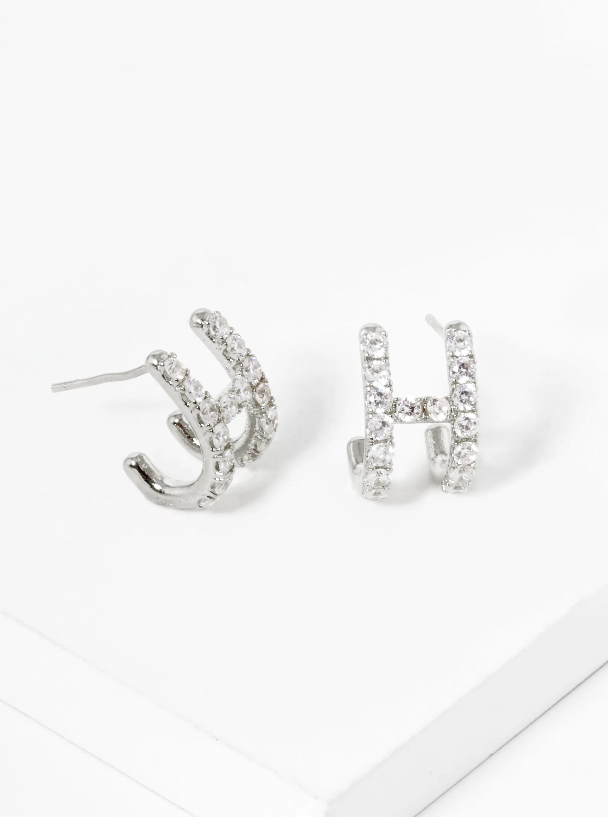 18K Gold Dipped CZ Pave H Shape 13mm Hoop Earrings