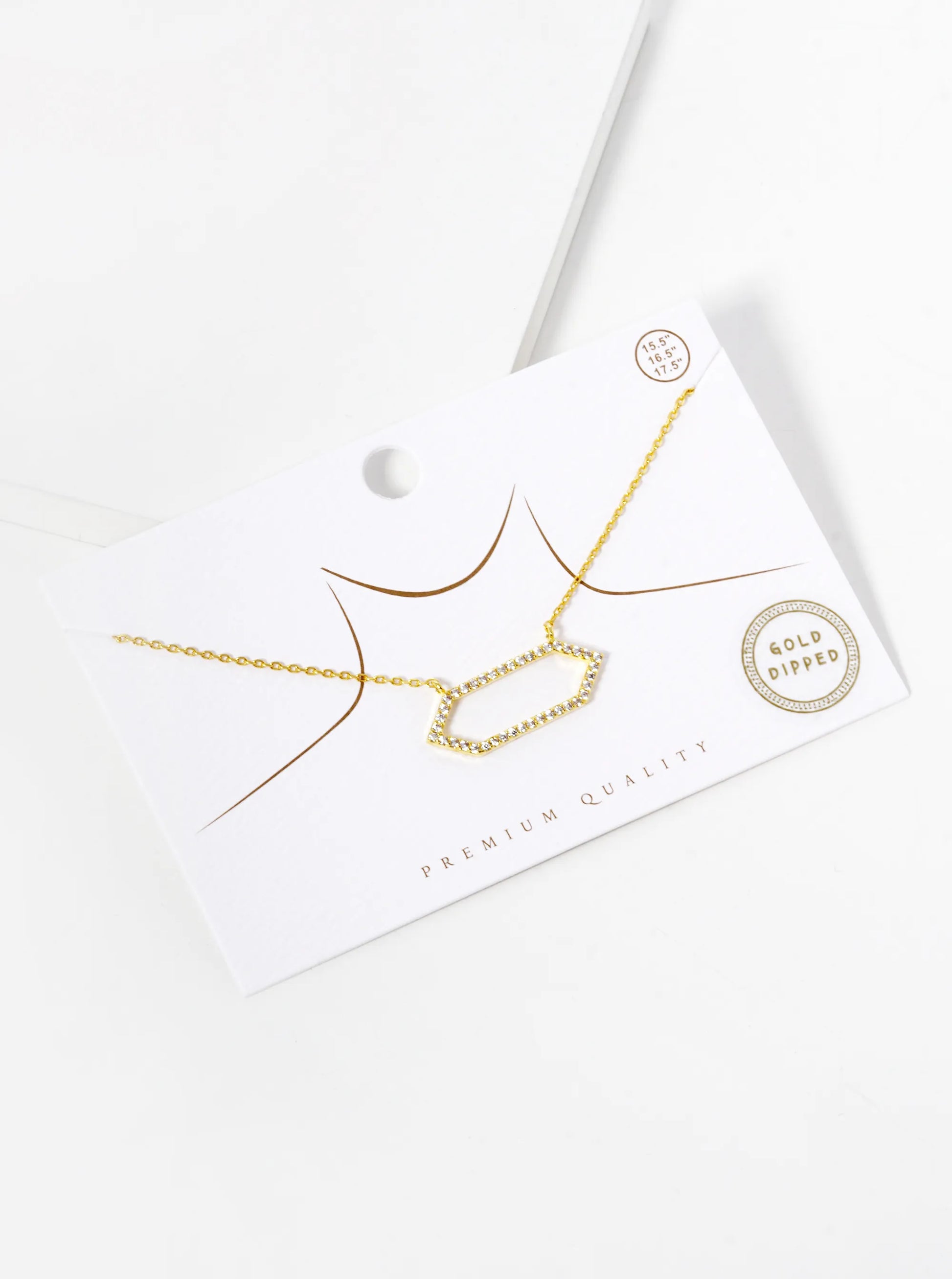 18K Gold Dipped CZ Pave Hexagon Pendant Necklace