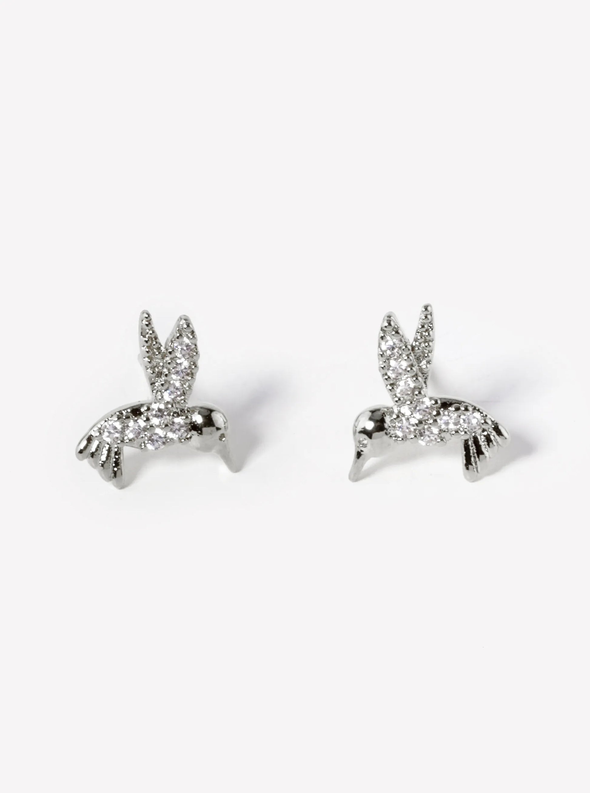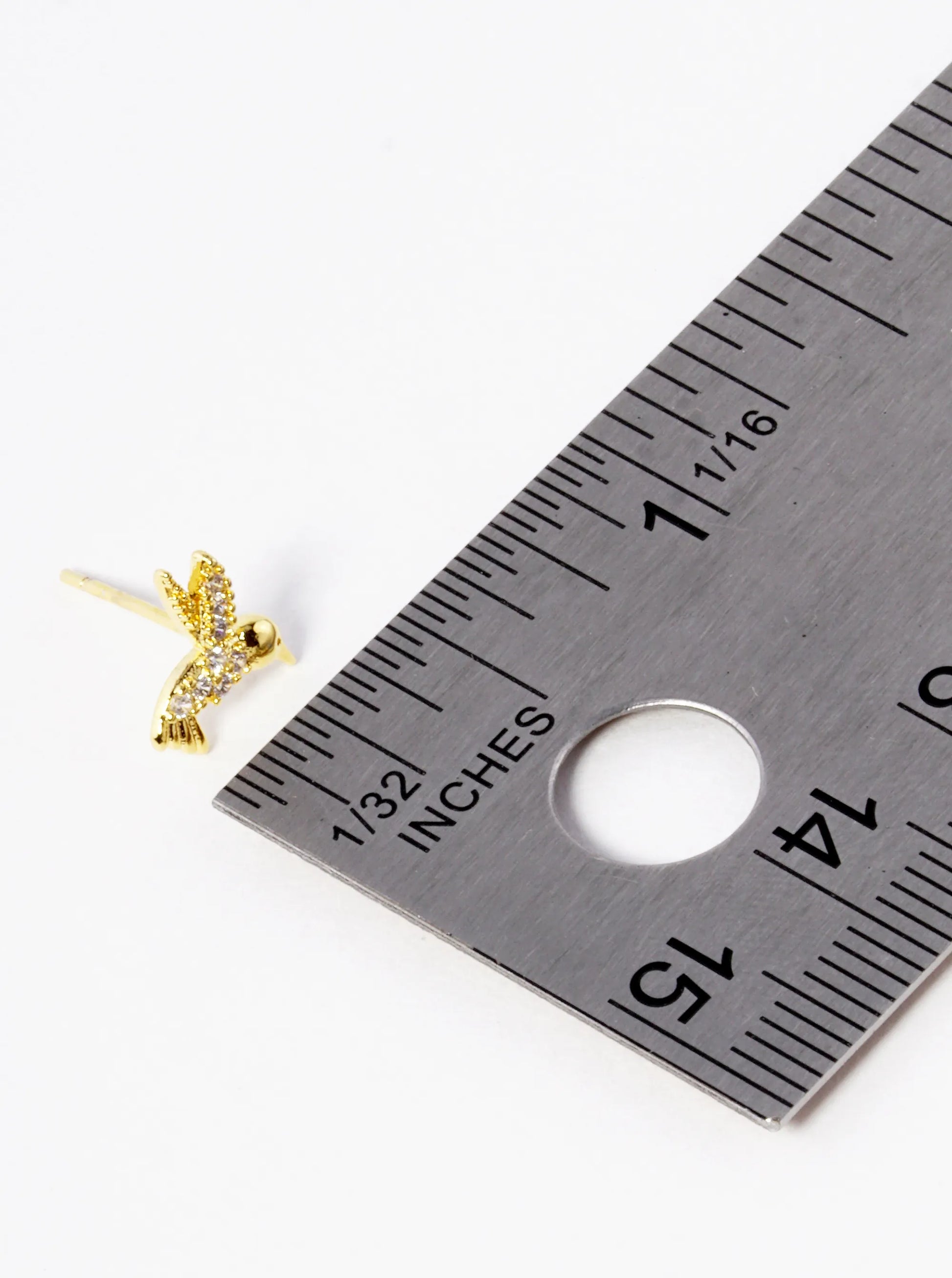 18k Gold Dipped CZ Pave Kingfisher Bird Stud Earrings