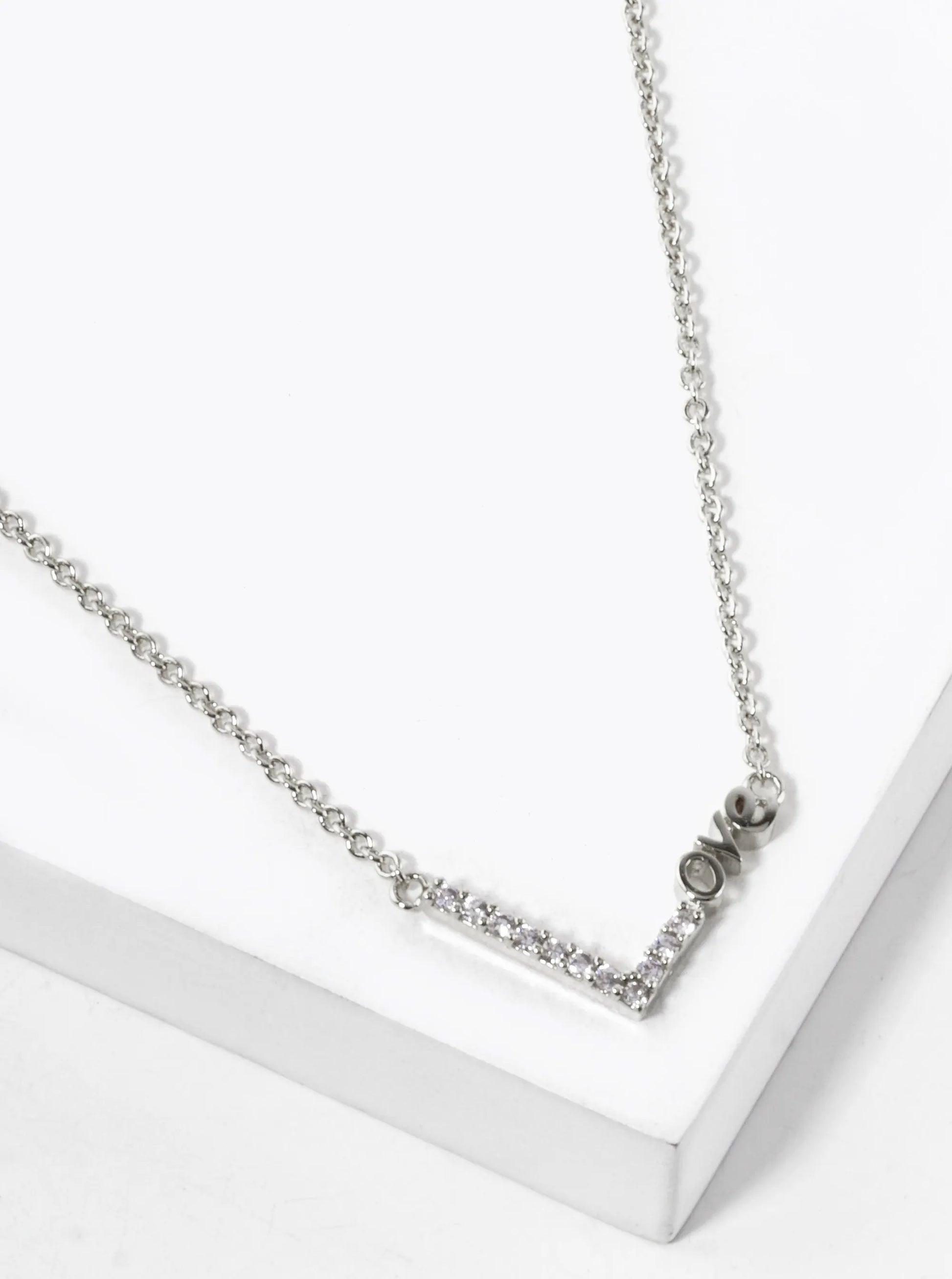 18K Gold Dipped CZ Pave Love Chevron Pendant Necklace