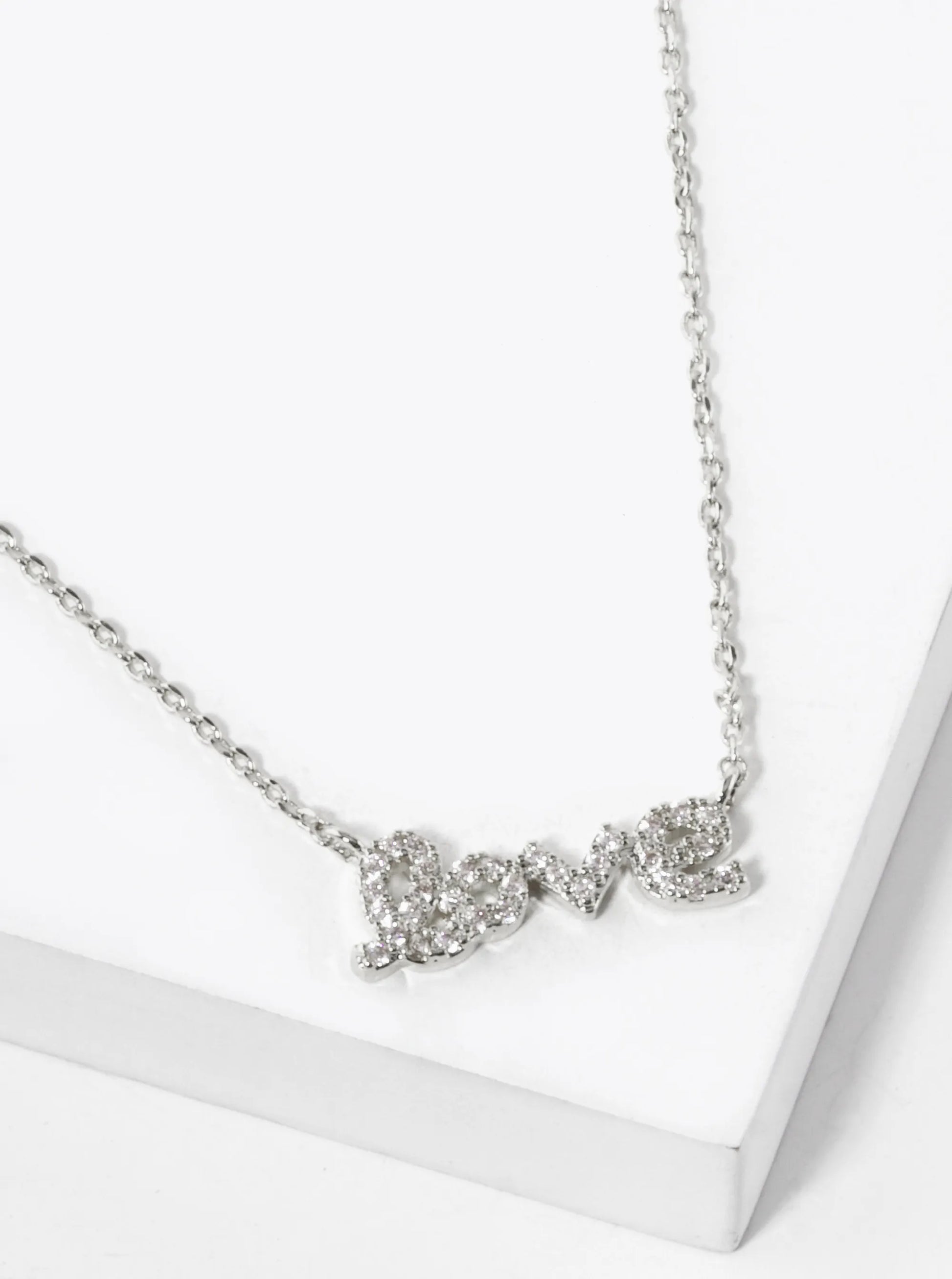 18K Gold Dipped CZ Pave Love Pendant Necklace
