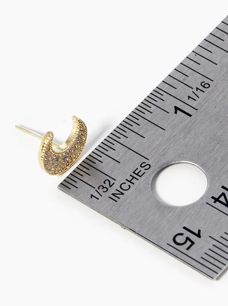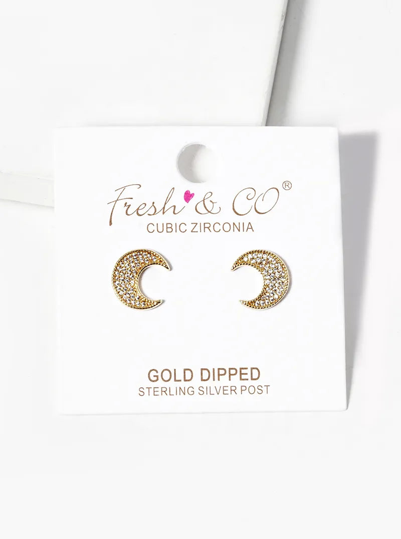 18k Gold Dipped CZ Pave Moon Post Stud Earrings