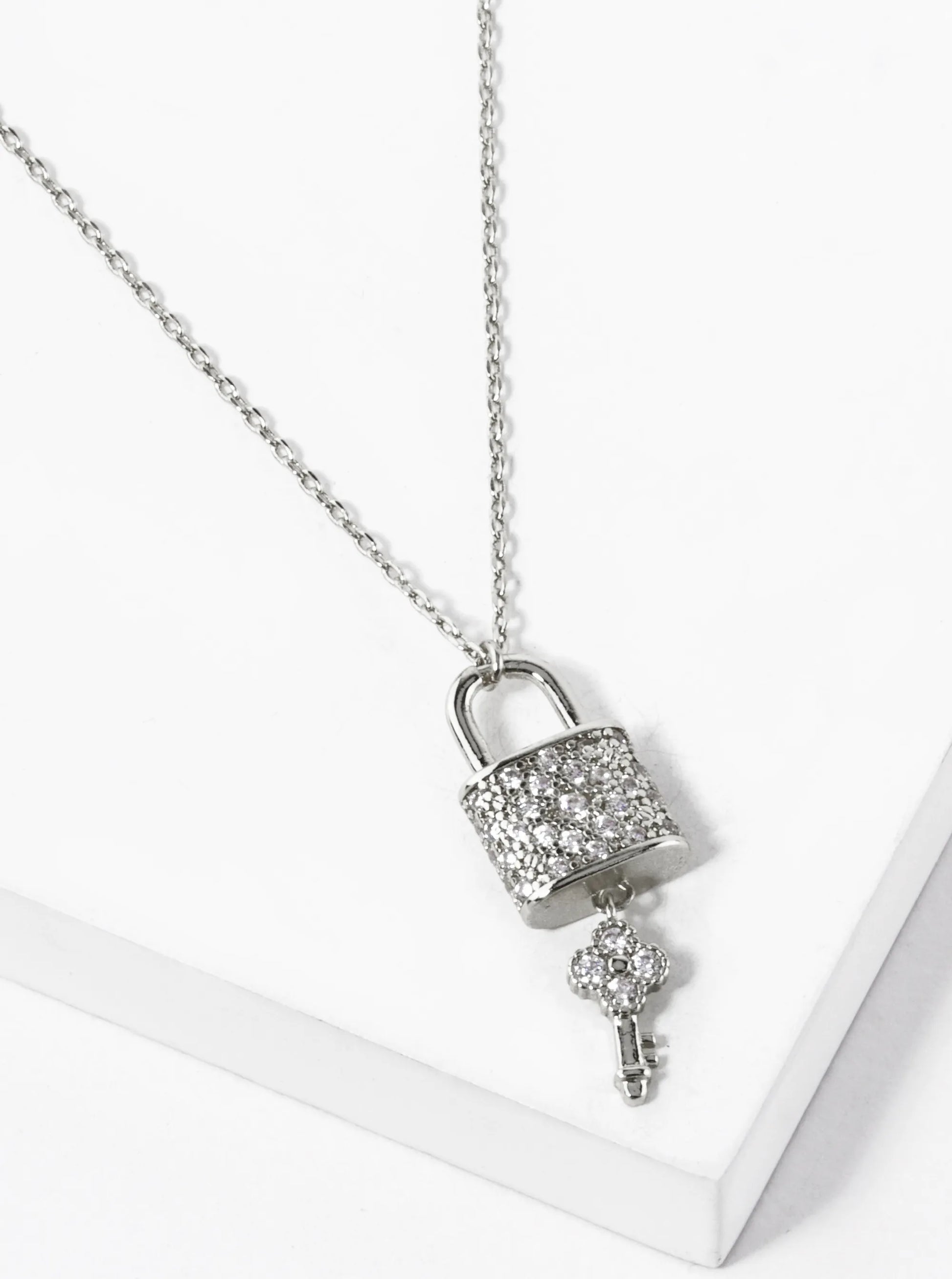 18K Gold Dipped CZ Pave Quatrefoil Key And Lock Pendant Necklace