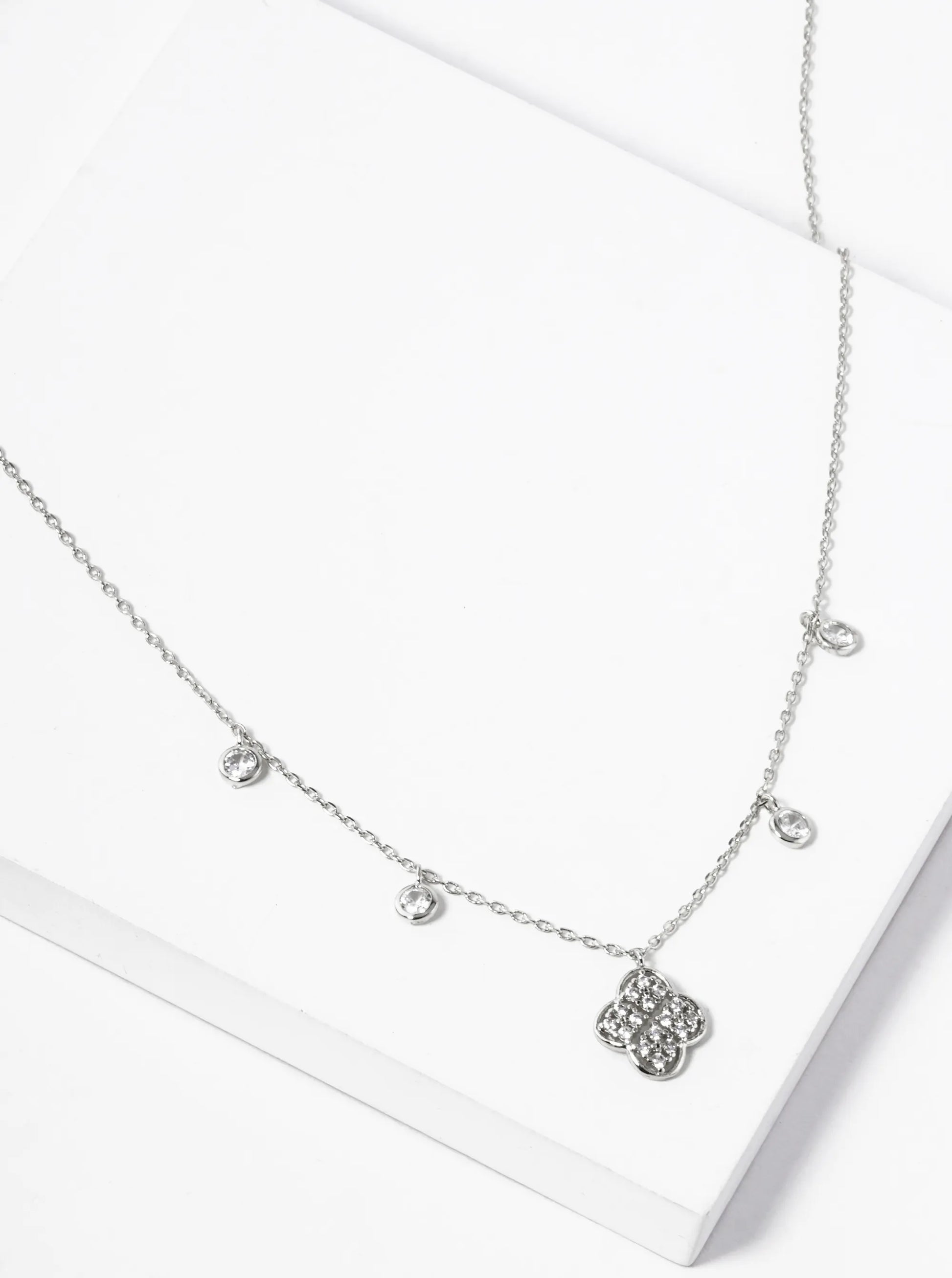 18k Gold Dipped CZ Pave Quatrefoil Pendant Necklace