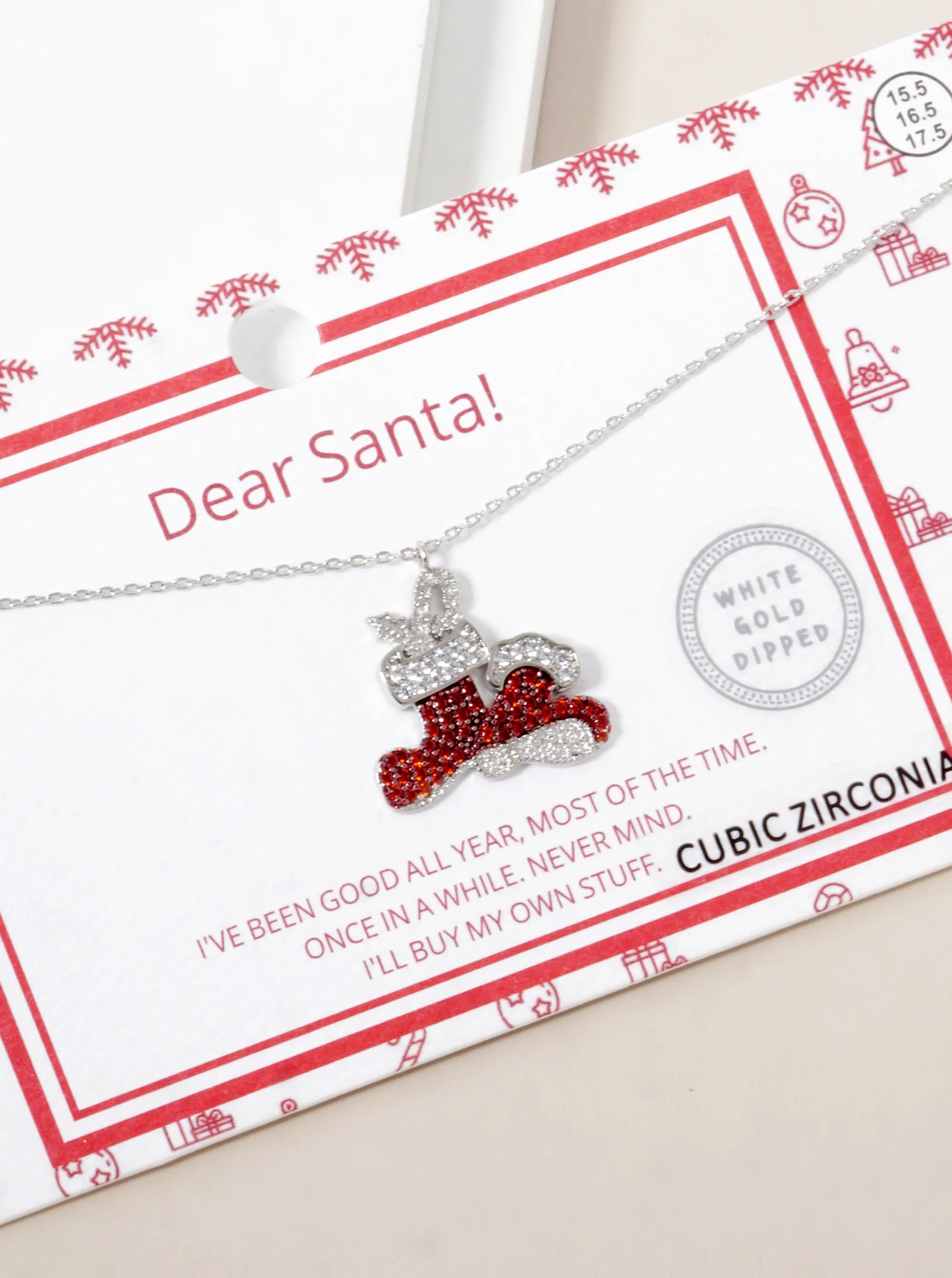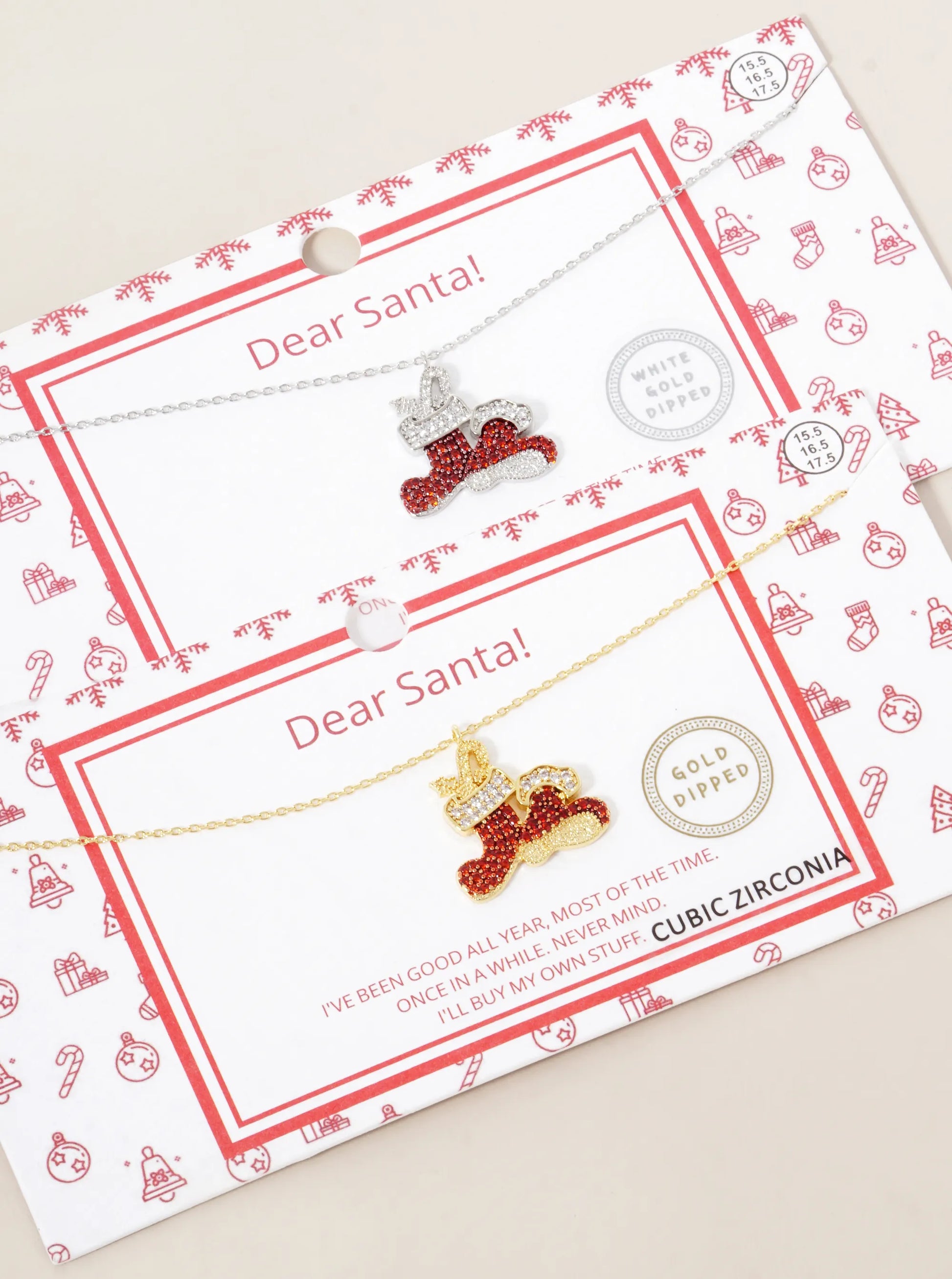 18K Gold Dipped CZ Pave Santa Boots Pendant Christmas Necklace