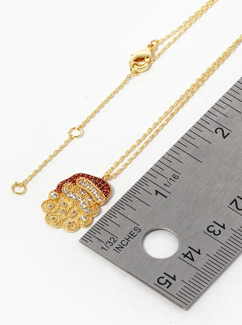 18K Gold Dipped CZ Pave Santa Claus Pendant Christmas Necklace