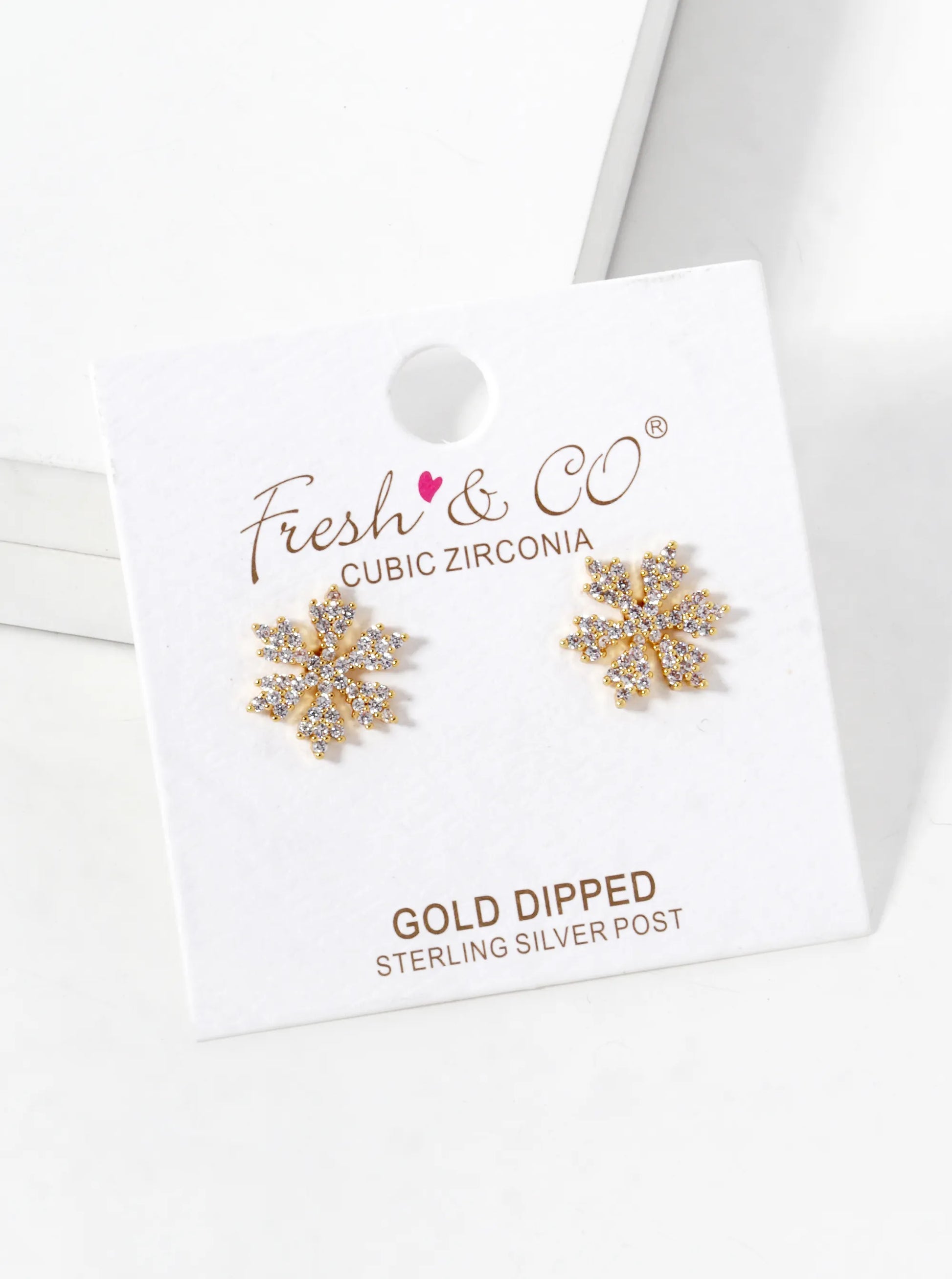 18k Gold Dipped CZ Pave Snowflake Stud Earrings
