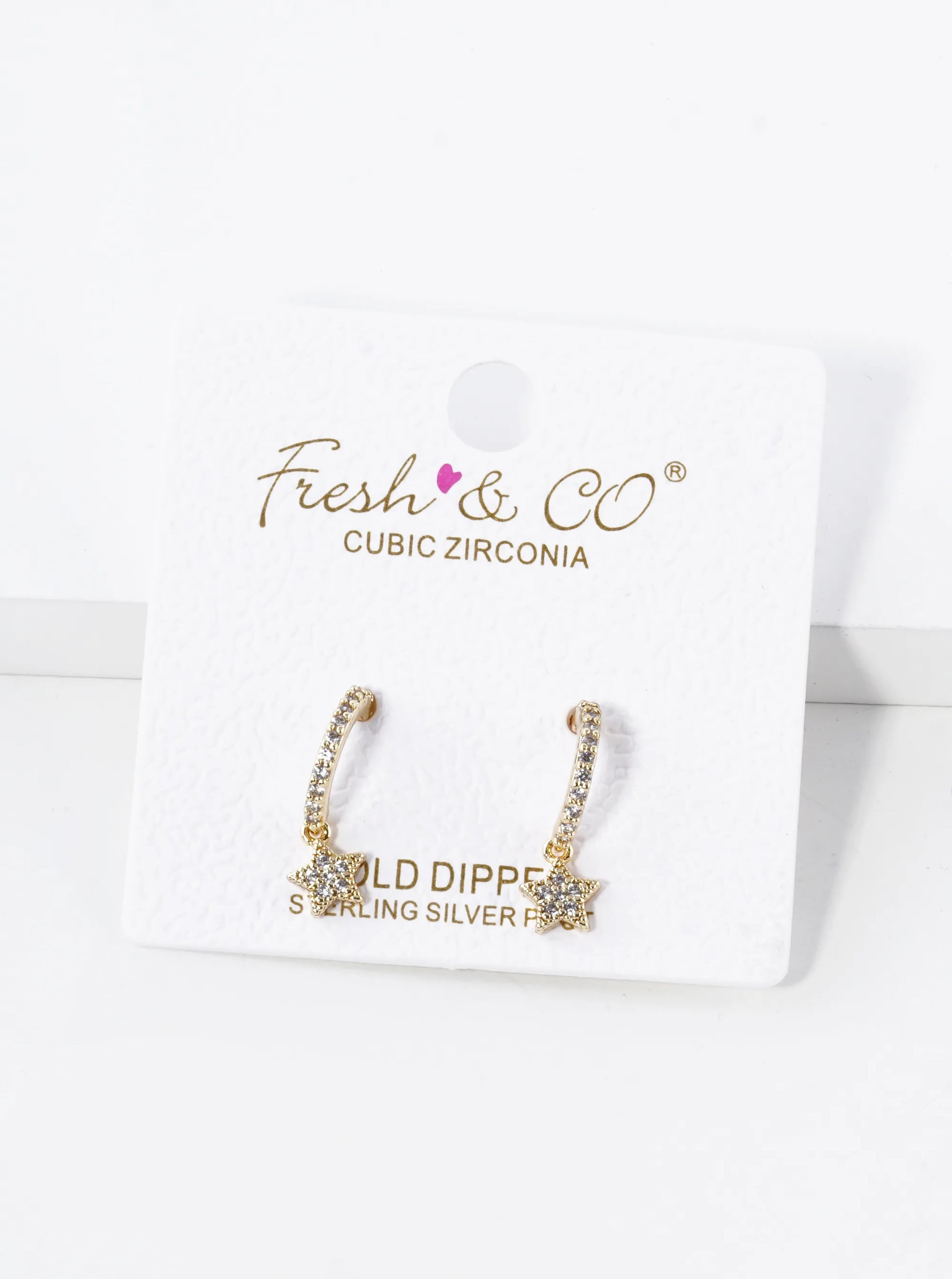 18K Gold Dipped CZ Pave Tiny Star Drop 12mm Open Huggie Hoop Earrings