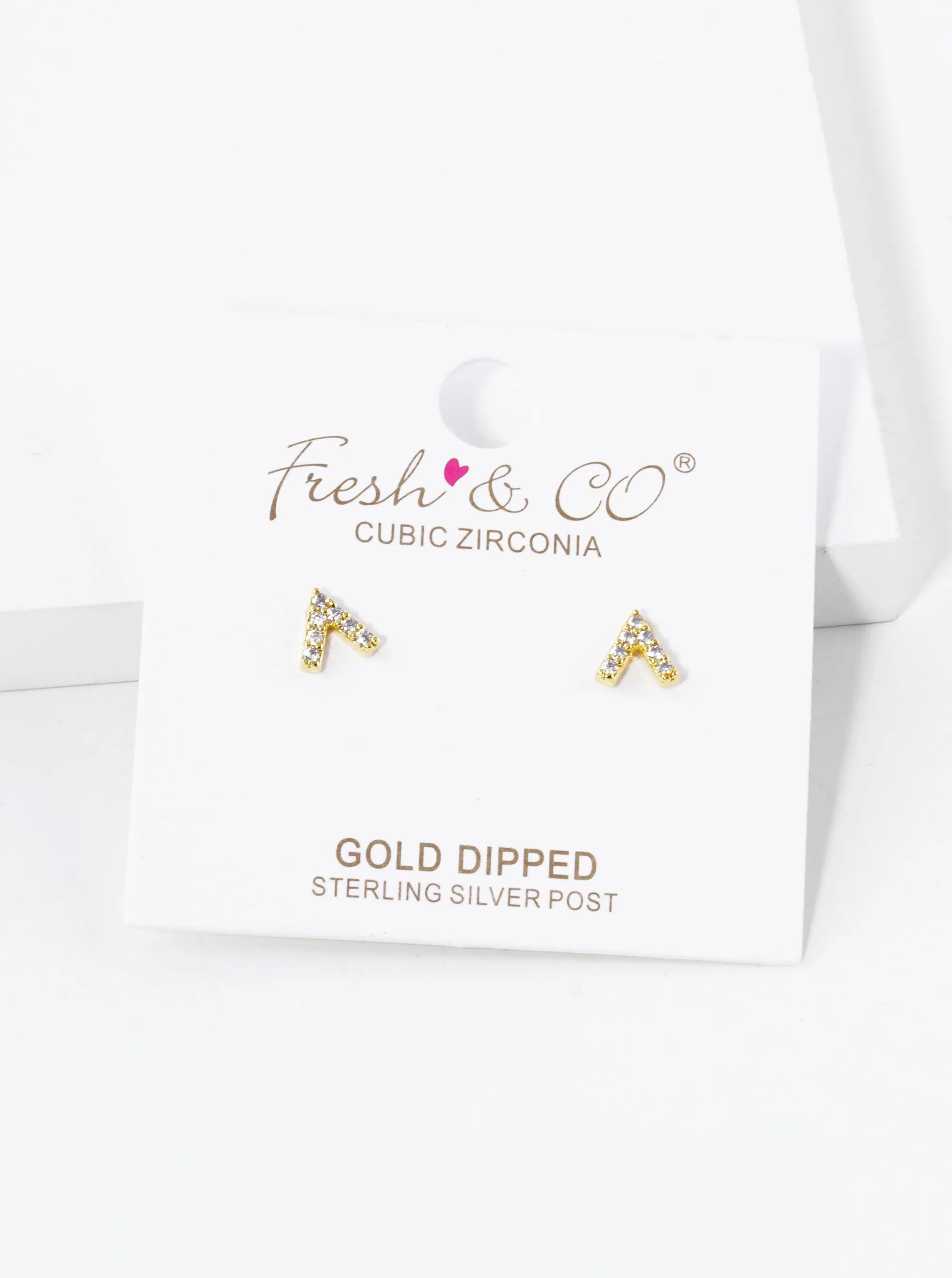 18K Gold Dipped CZ Pave Triangle Shape Stud Earrings