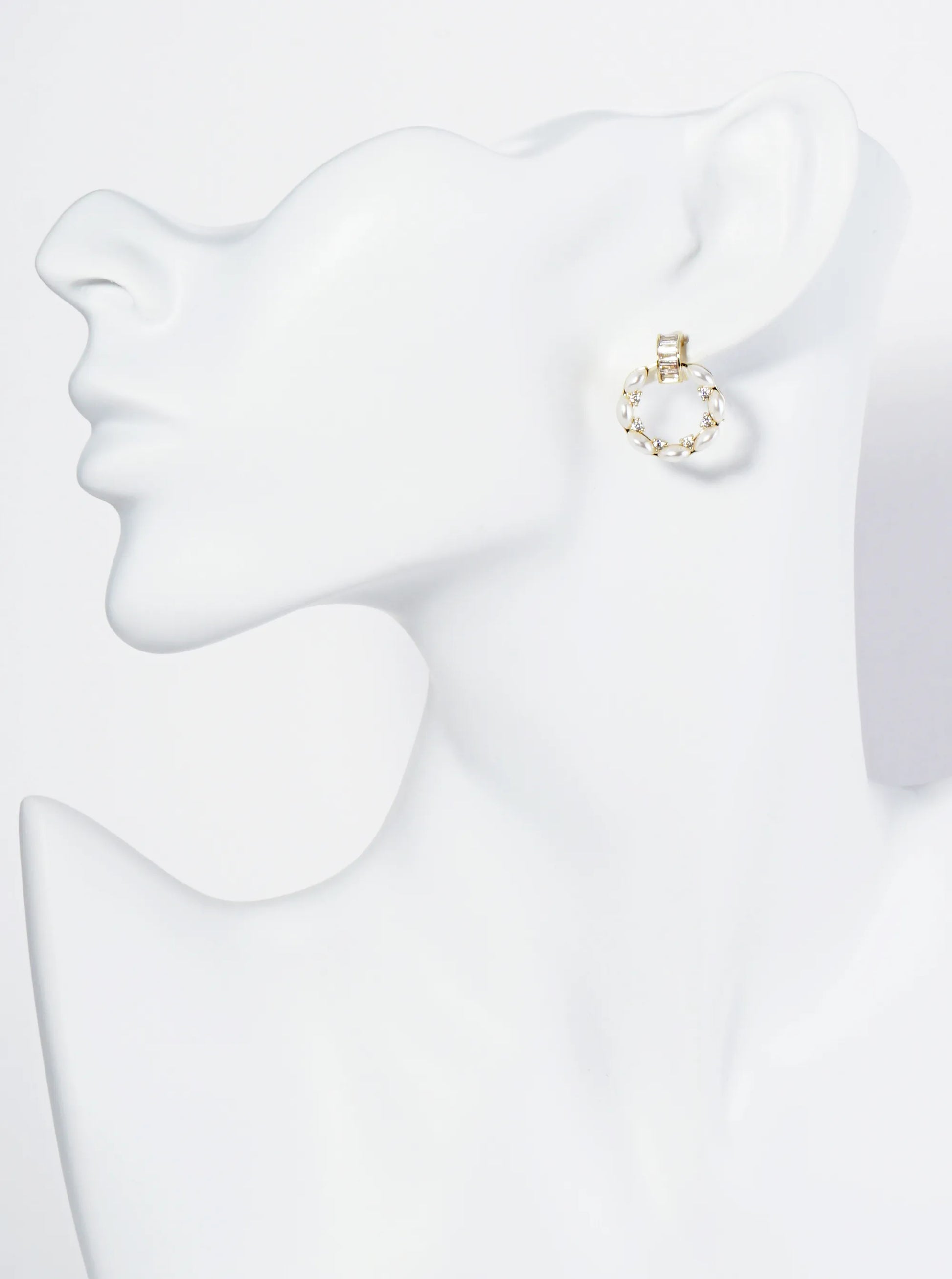 18K Gold Dipped CZ Pearl Beaded Circle Drop Post Earrings