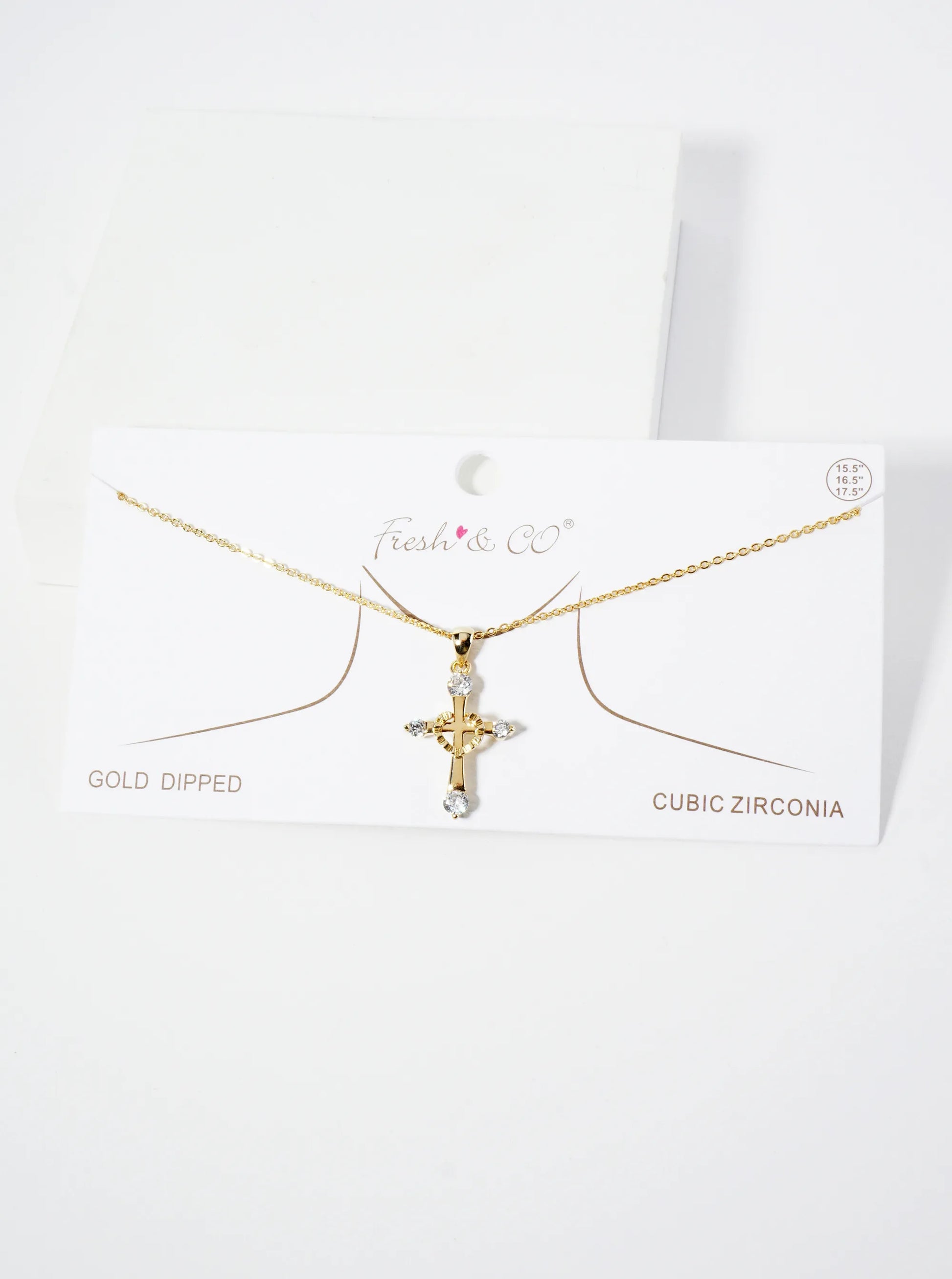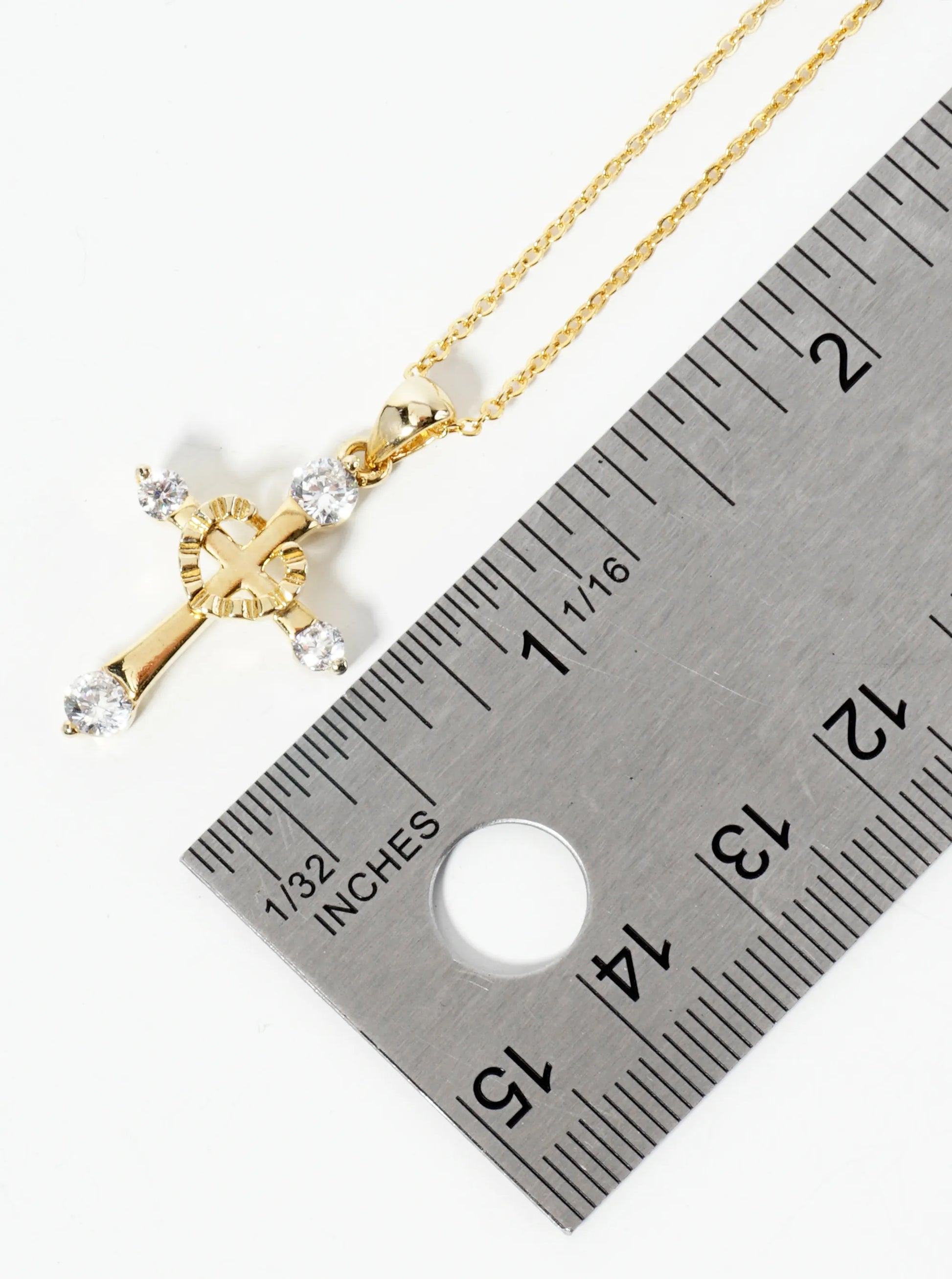 18K Gold Dipped CZ Stone Cross Pendant Necklace