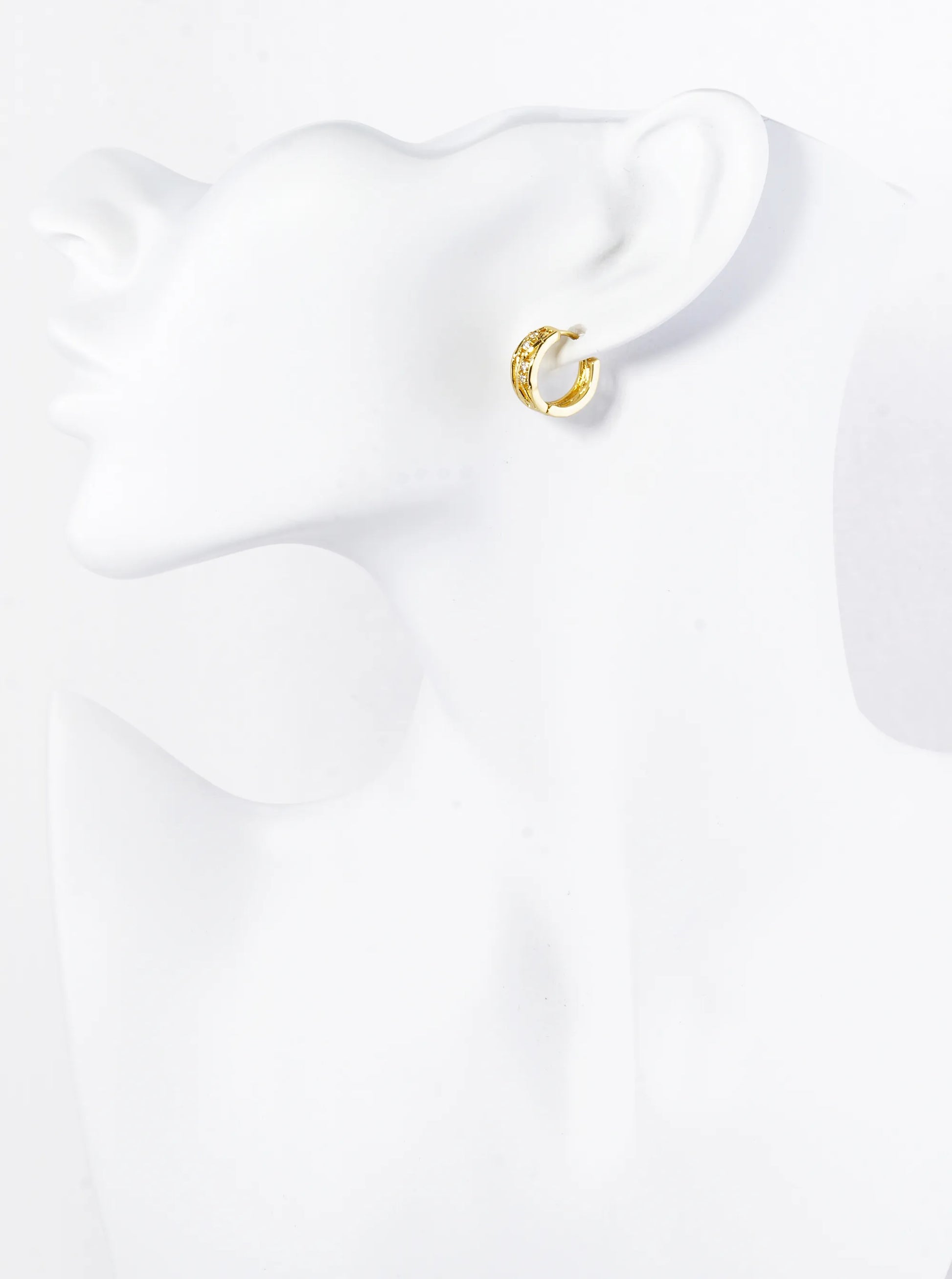 18K Gold Dipped CZ Stone Filigree 15mm Brass Huggie Hoop Earrings