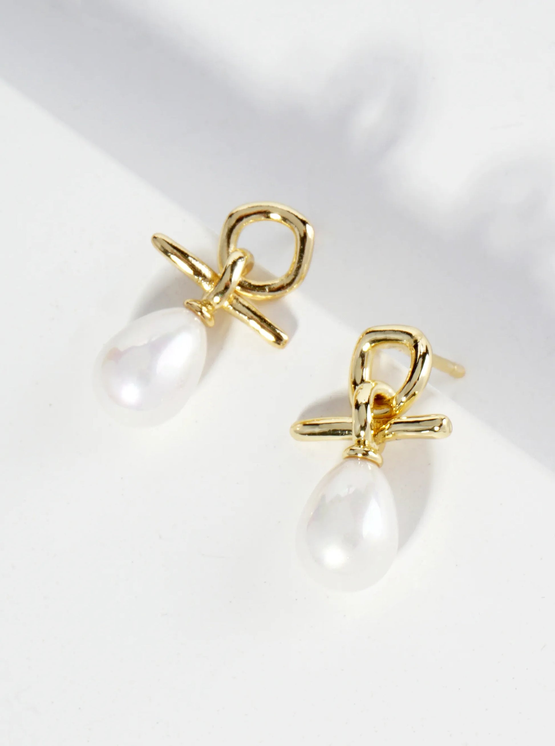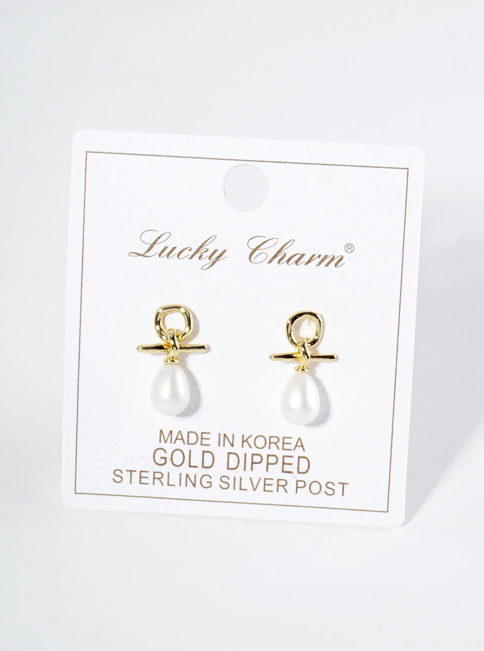 18K Gold Dipped Dainty Teardrop Pearl Drop Post Earrings