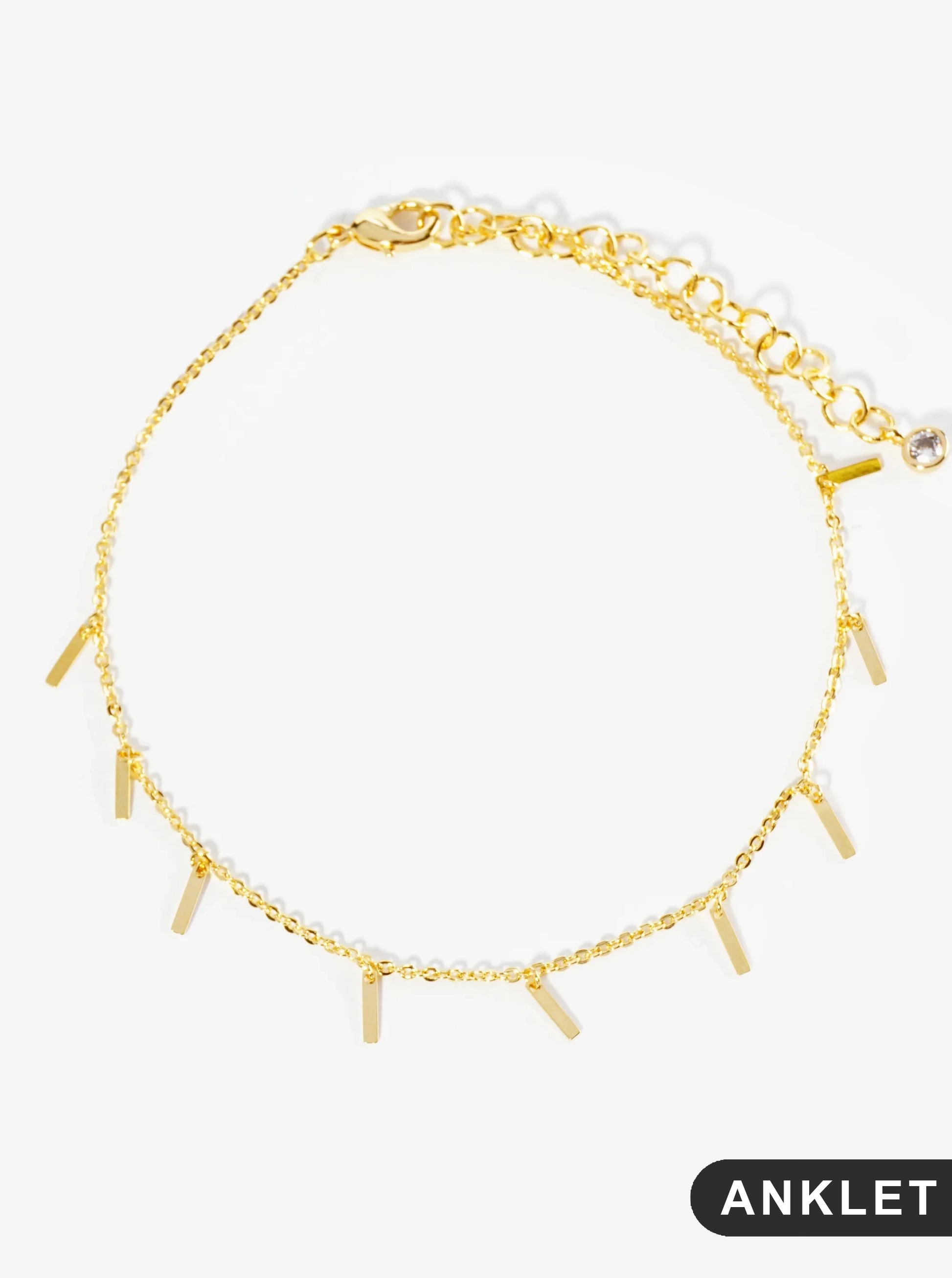 18K Gold Dipped Delicate Bar Charm Brass Chain Anklet
