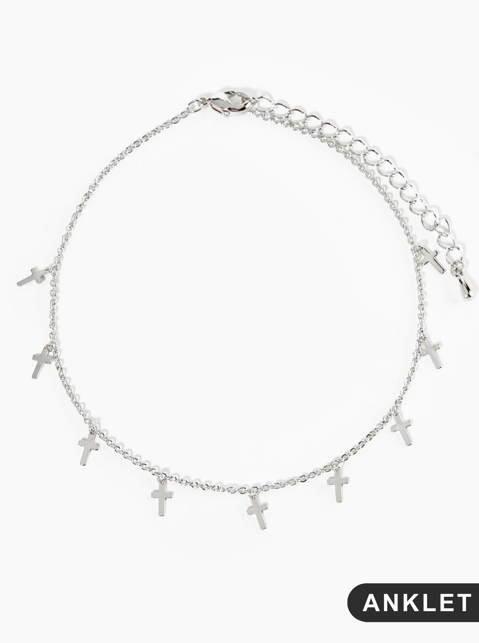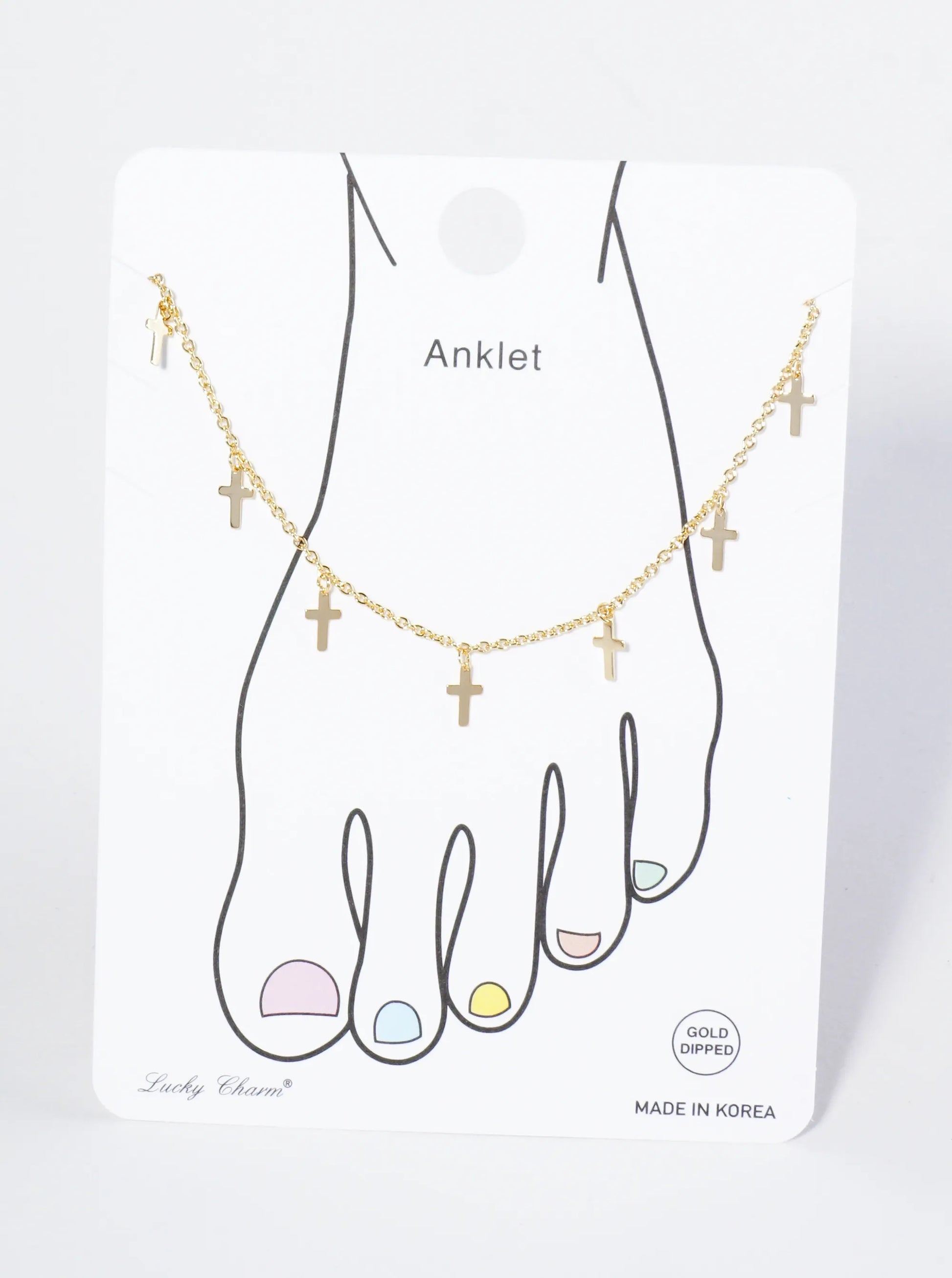 18K Gold Dipped Delicate Cross Charm Brass Chain Anklet