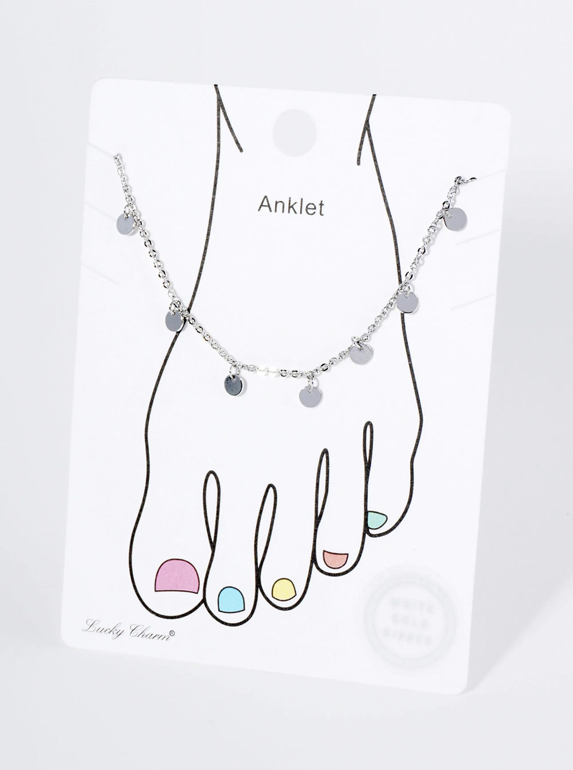18K Gold Dipped Delicate Disc Charm Brass Chain Anklet