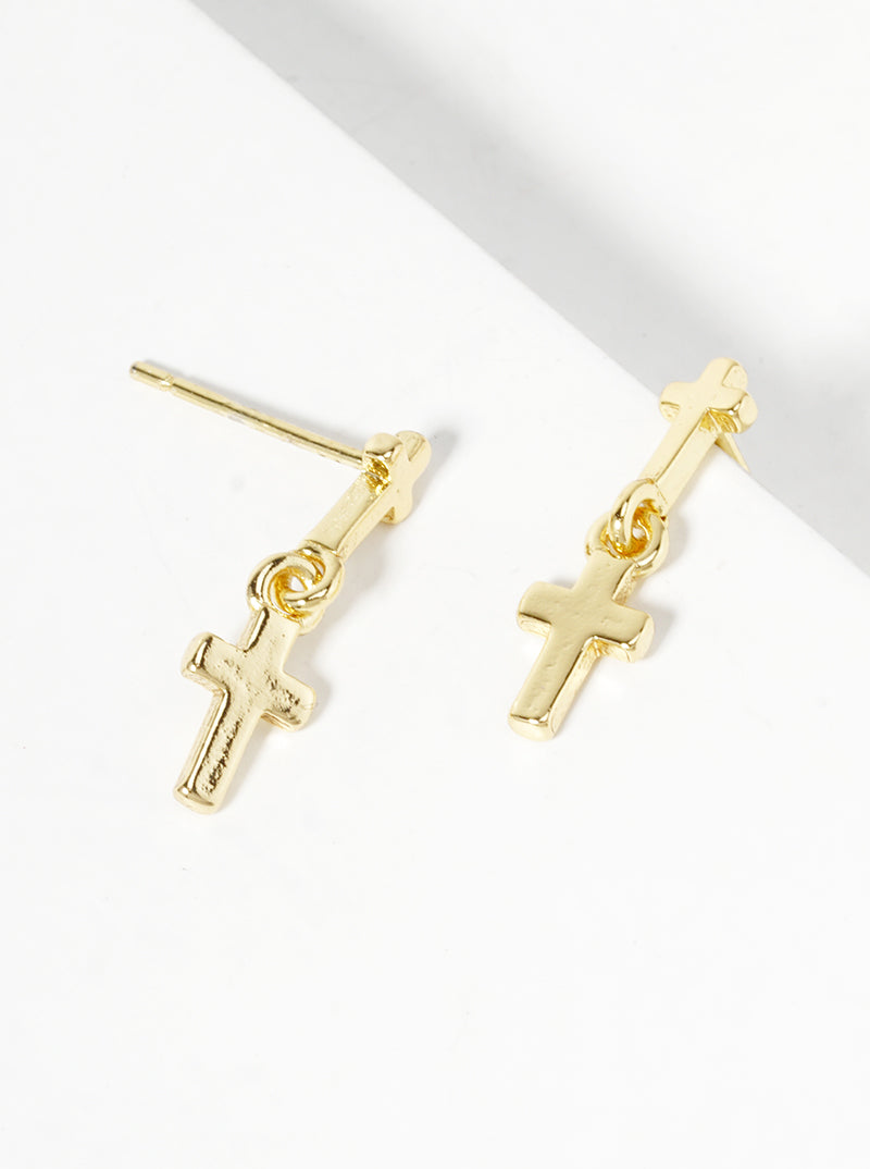 18k Gold Dipped Double Cross Dangle Post Earrings