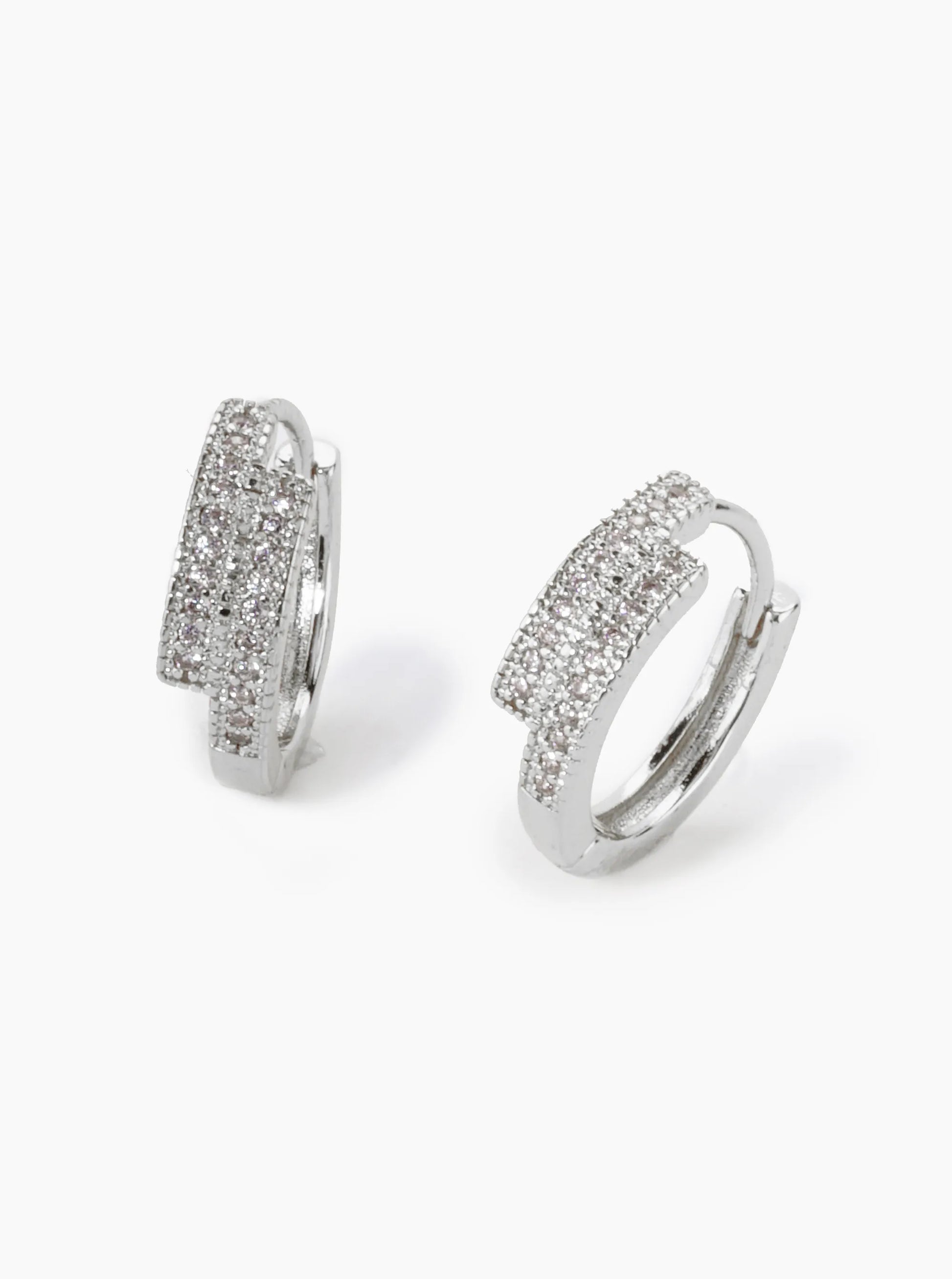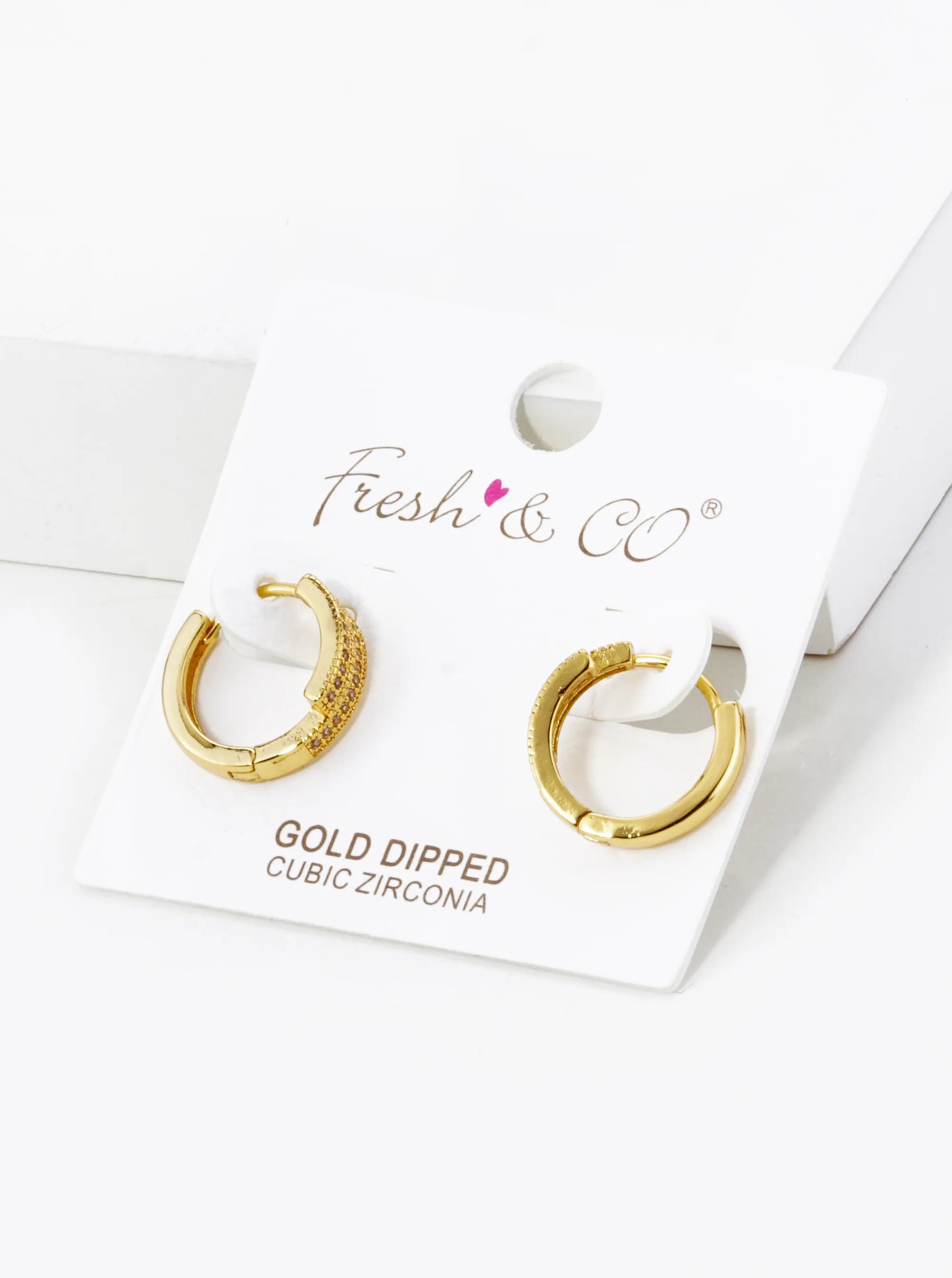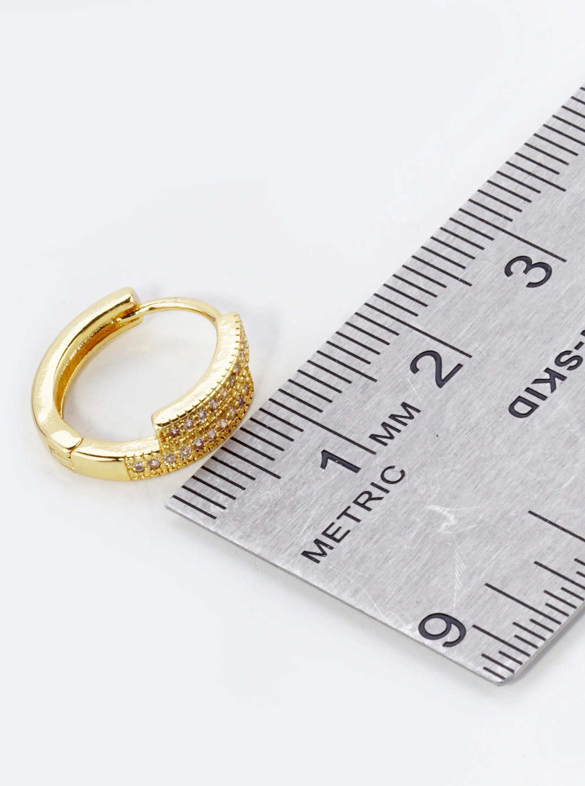 18K Gold Dipped Double Line Micro Pave Set Cubic Zirconia 15mm Huggie Hoop Earrings