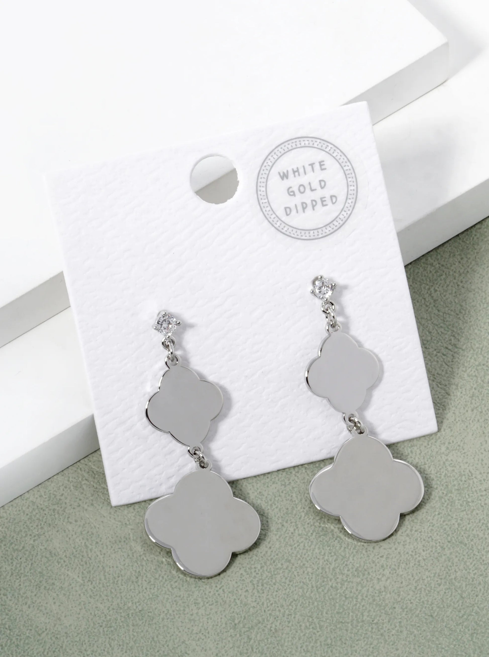 18K Gold Dipped Double Quatrefoil Drop 925 Sterling Silver Post Earrings