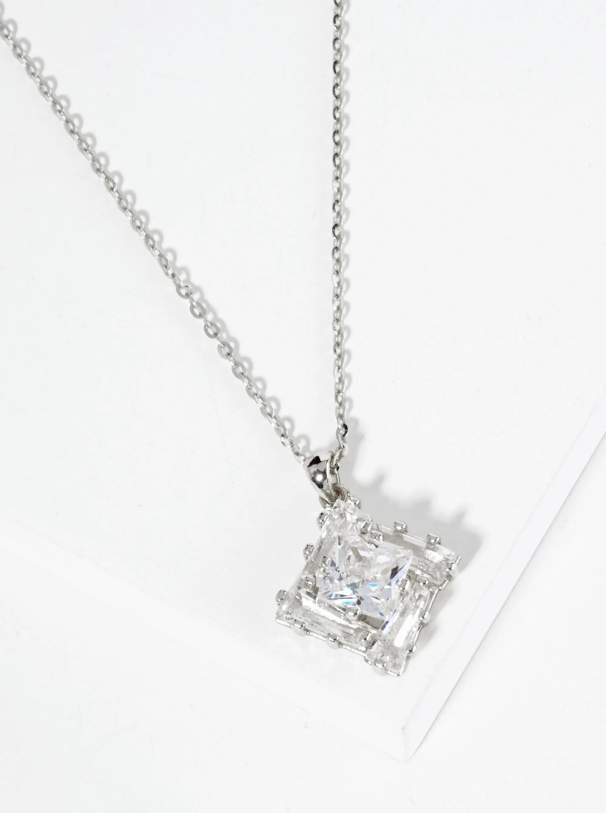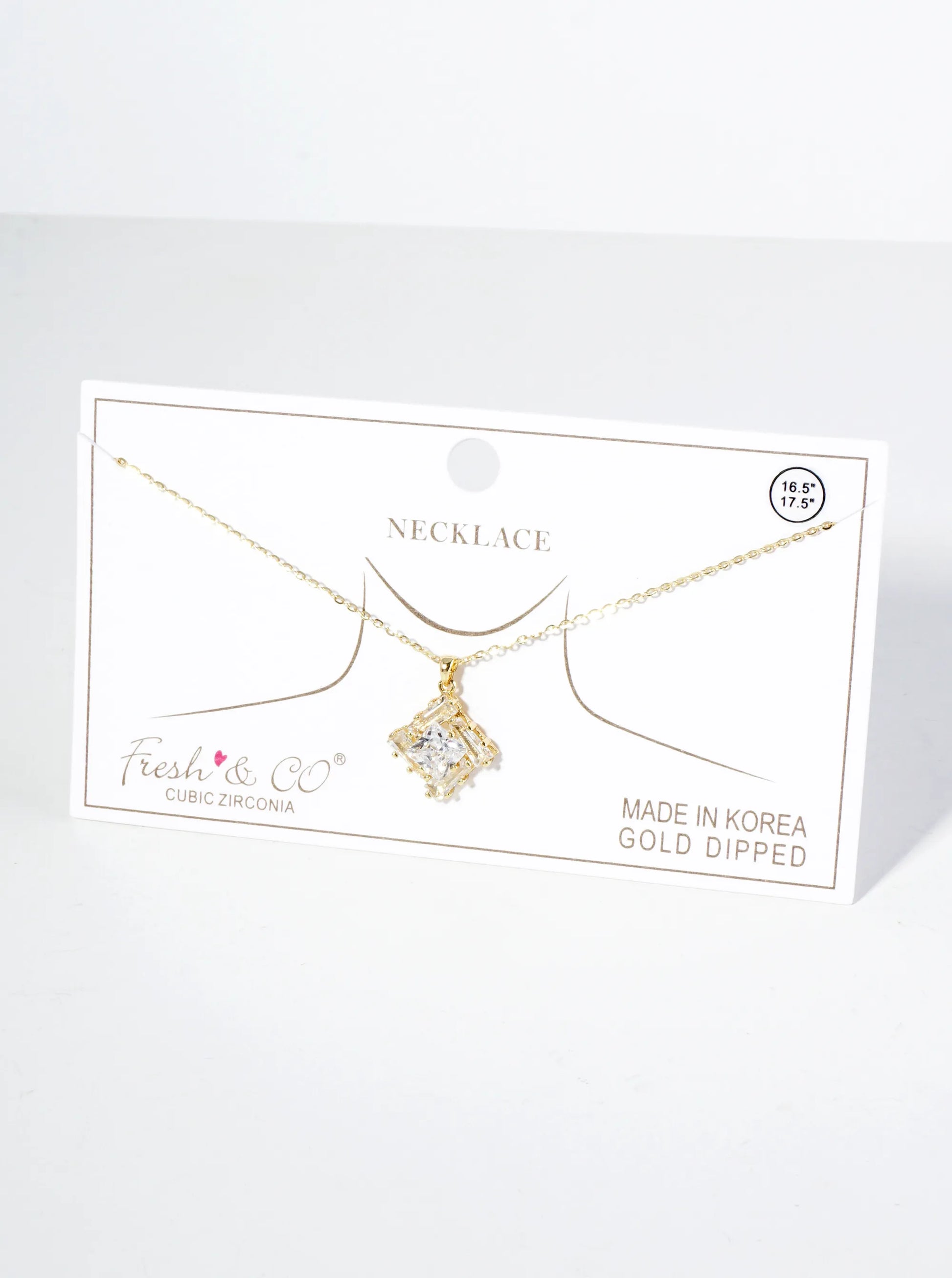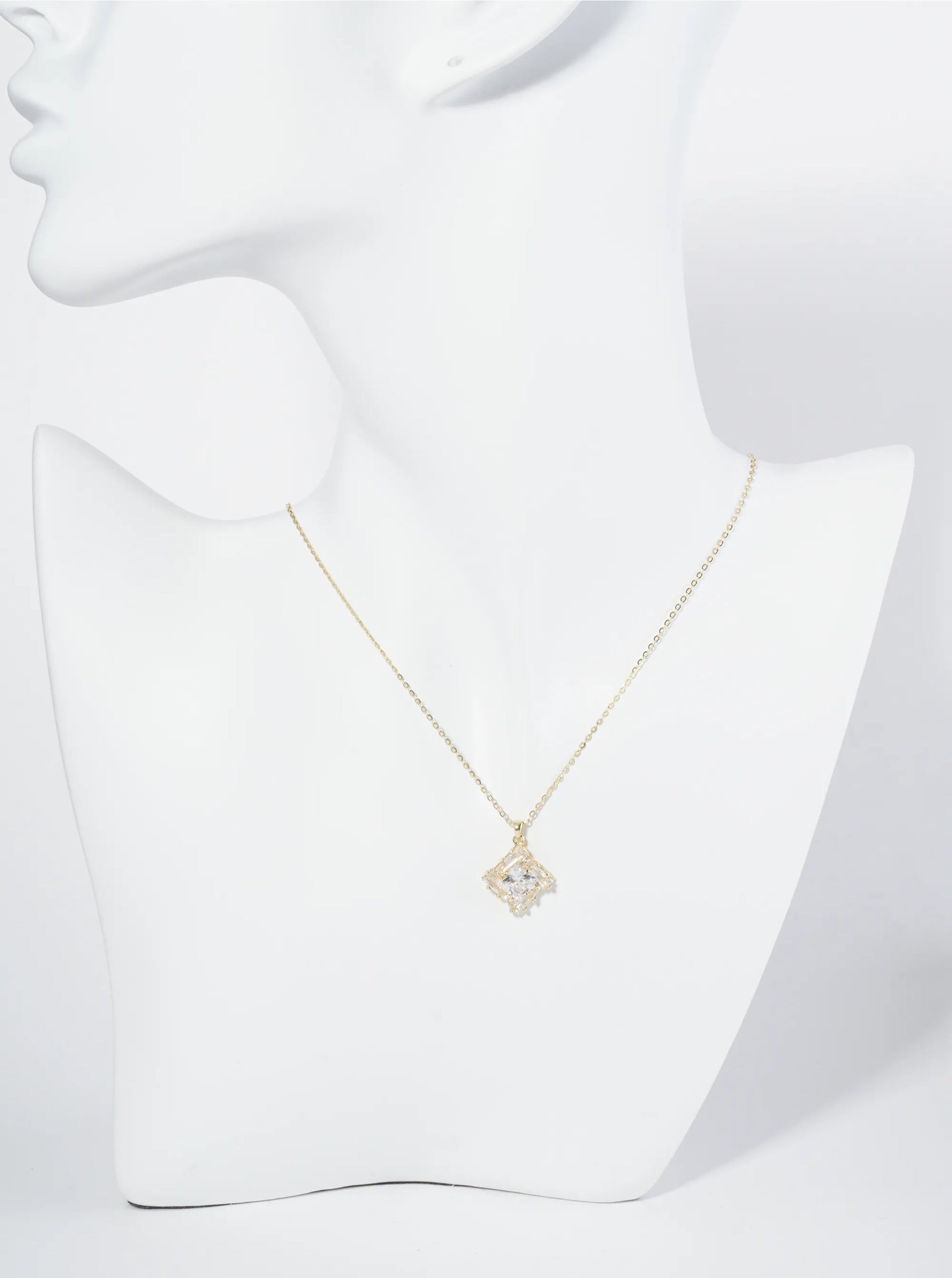 18K Gold Dipped Double Rhombus CZ Pendant Necklace